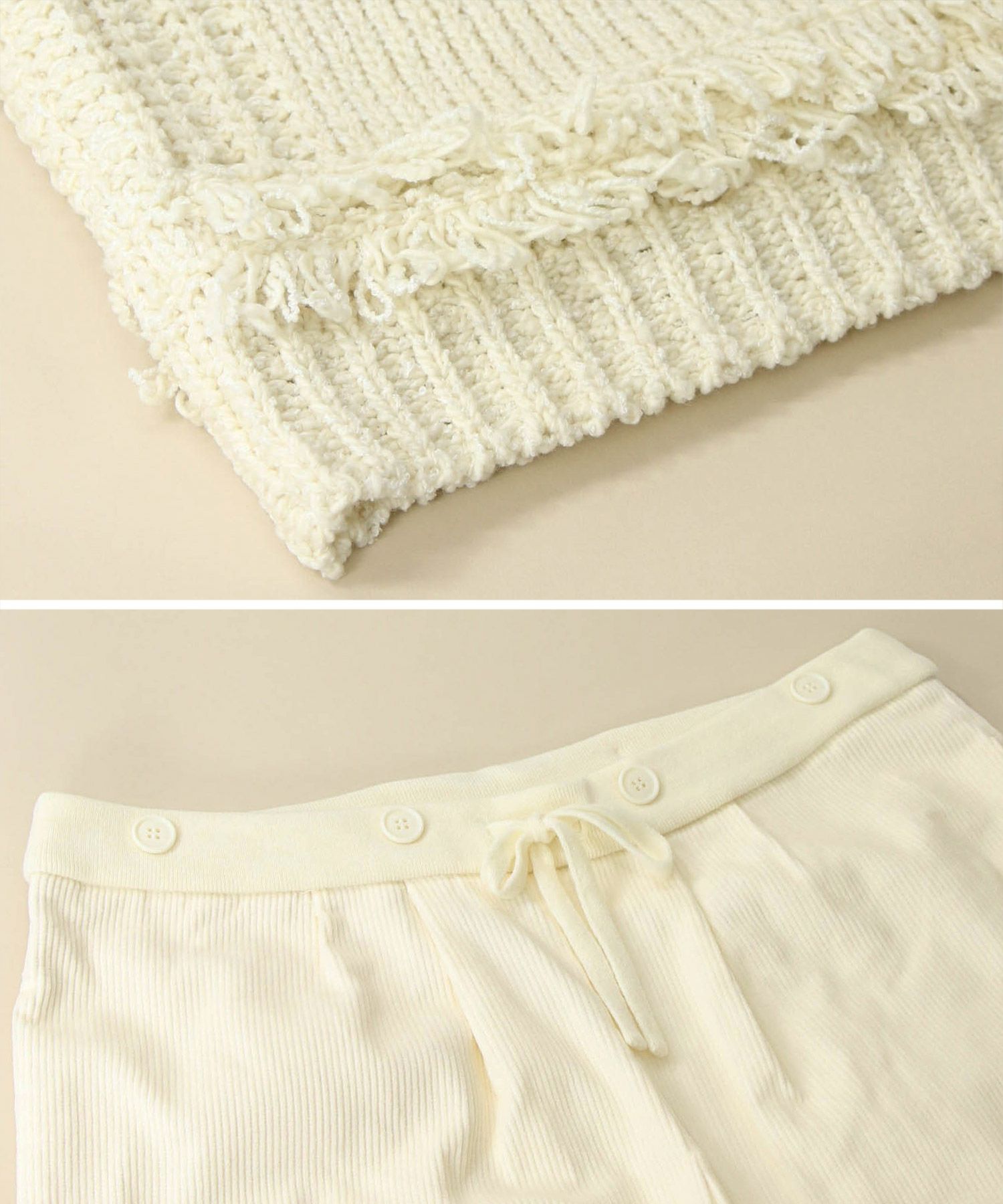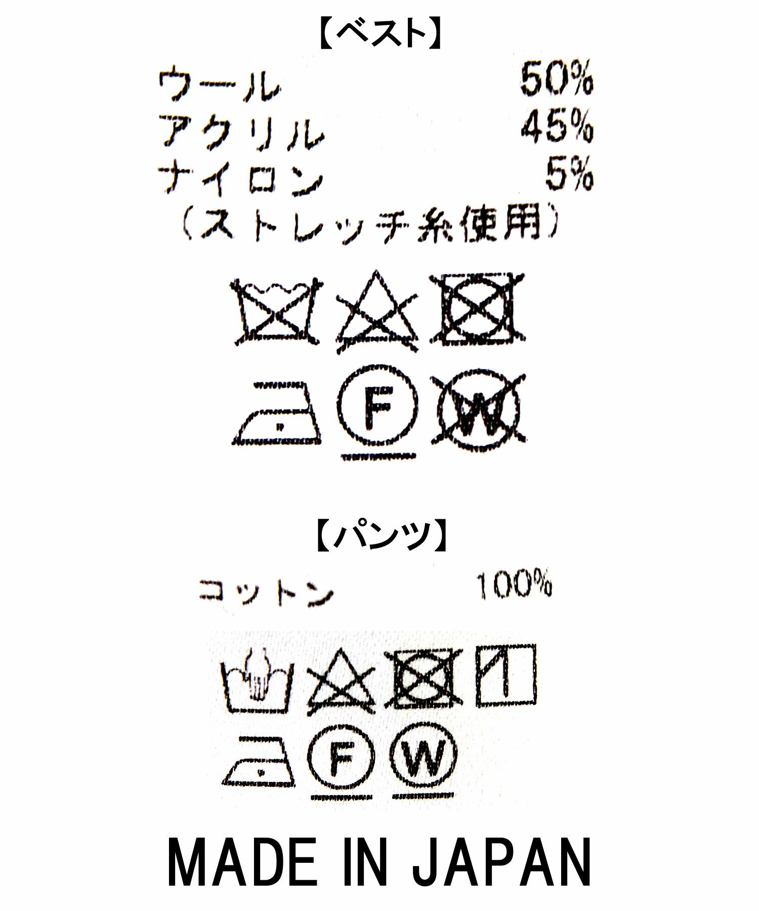 ニットベストとパンツはウエストの釦で取り外し可能。