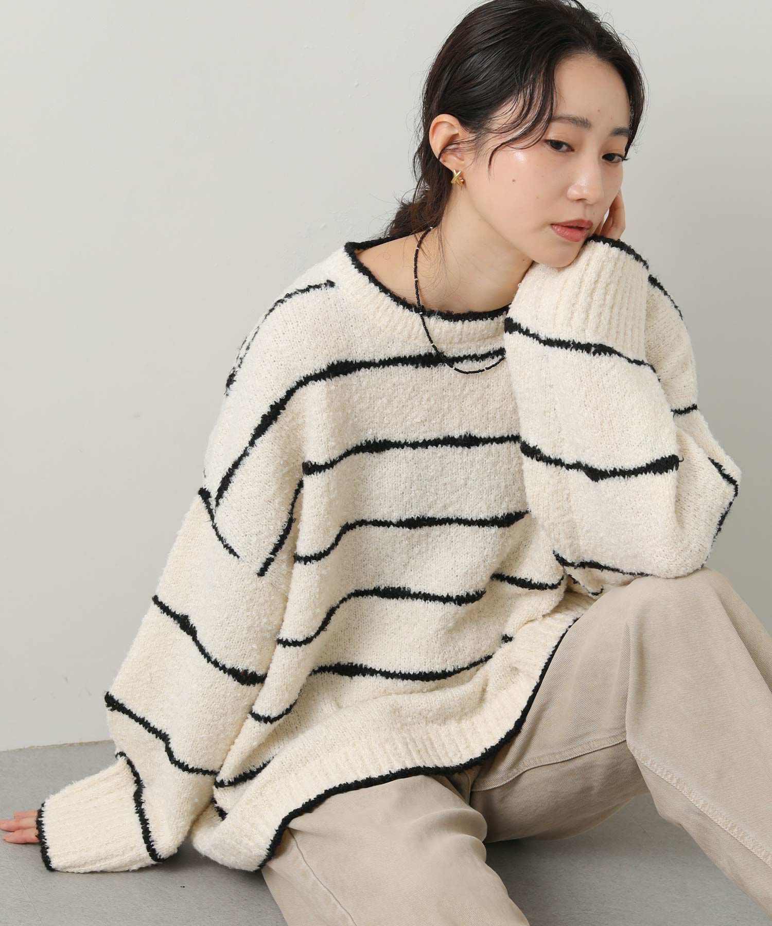 【CHIGNON(シニヨン】から、手書きのような強弱のラインが入ったボーダーニットをセレクト。