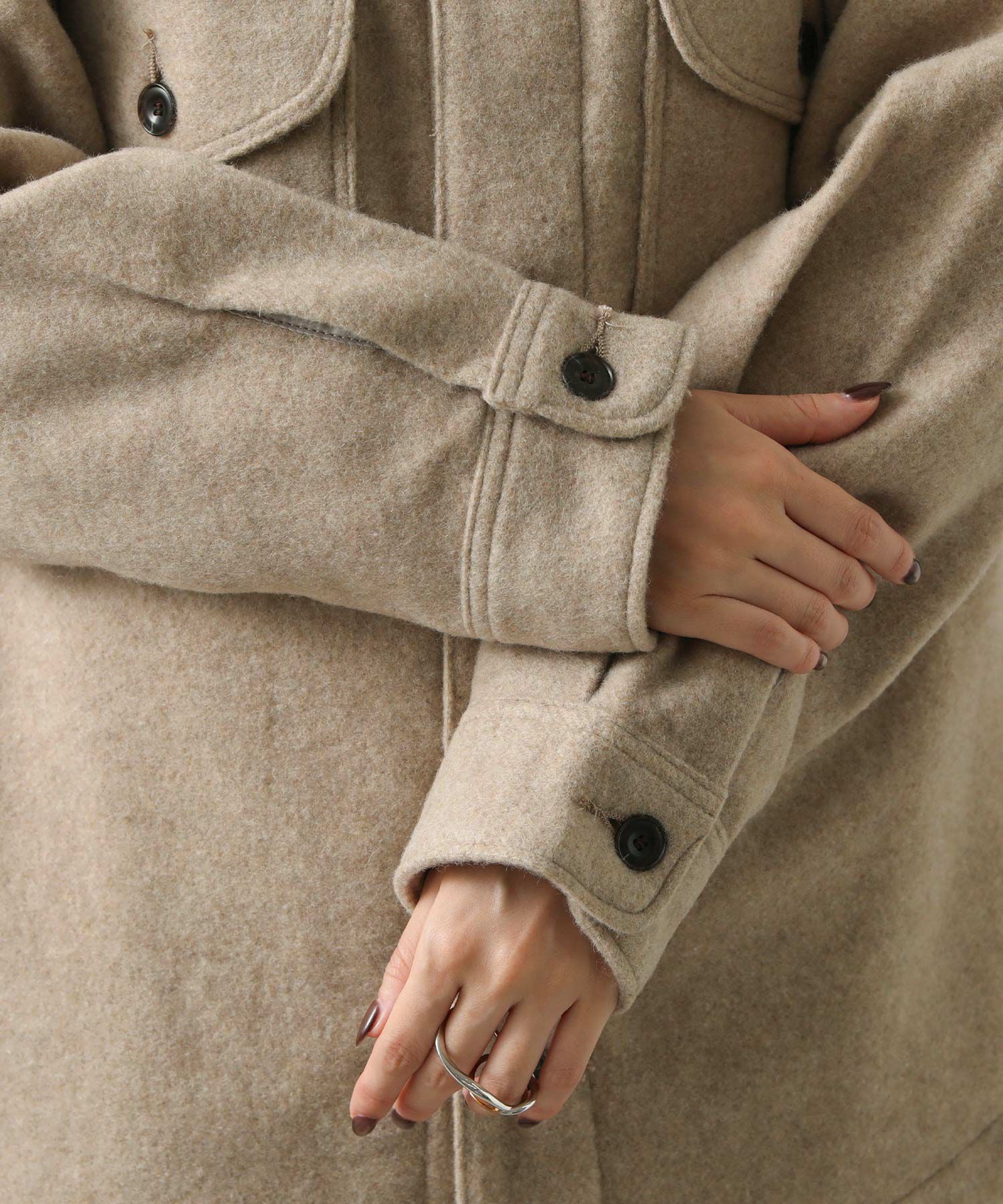 作業用ユニフォームをルーツとしたアウター・シャツのCPOジャケットを大人の女性に合うシルエットでアレンジ。
