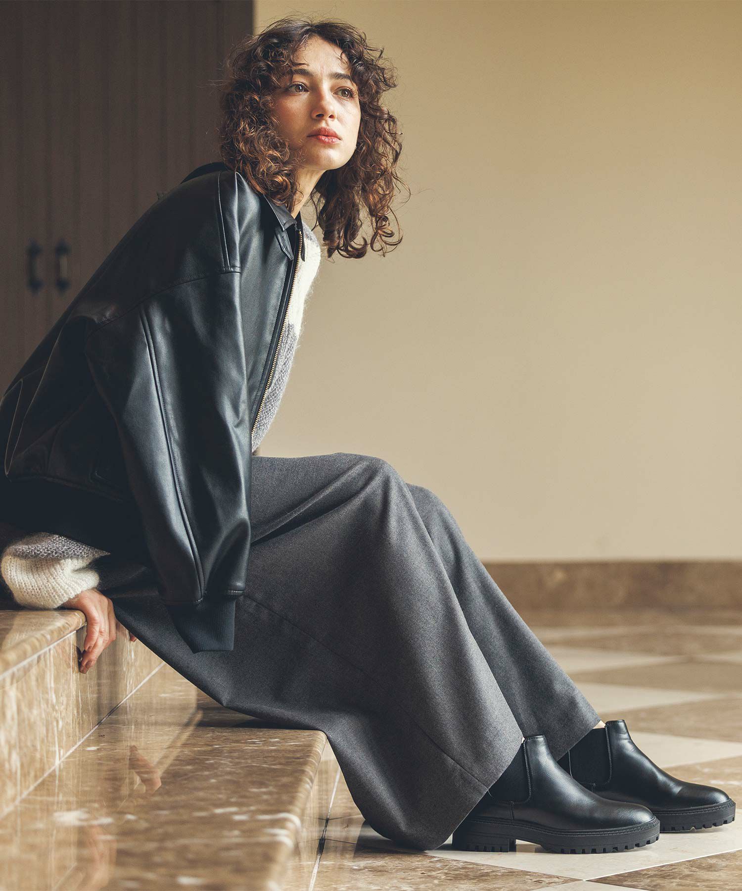 スカートスタイルはもちろん、パンツでもさっと履け、バランスよく決まります。