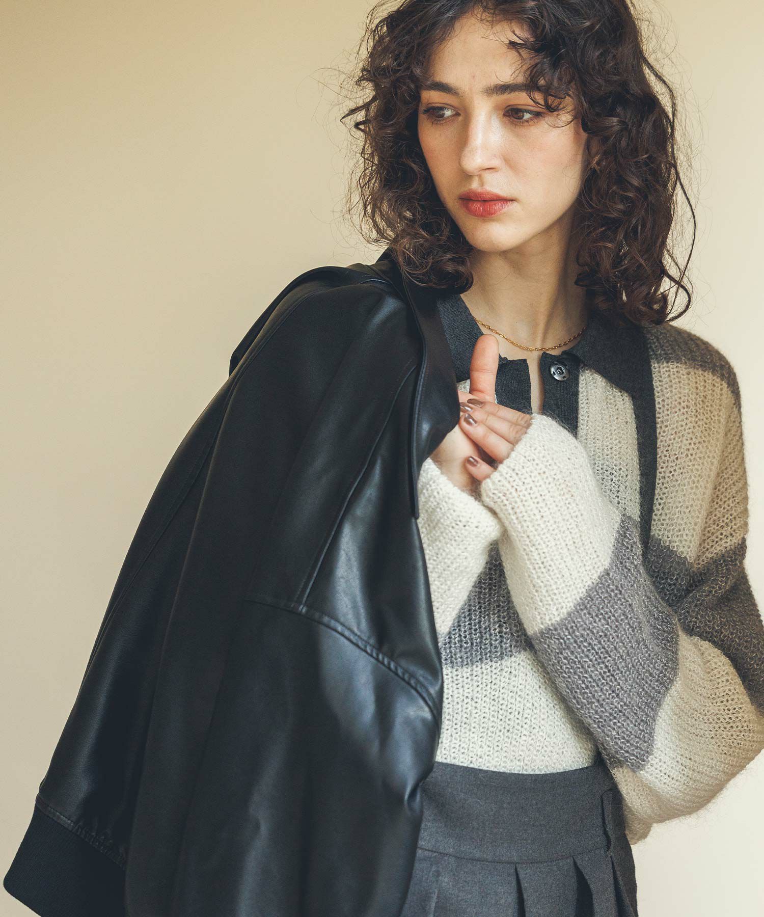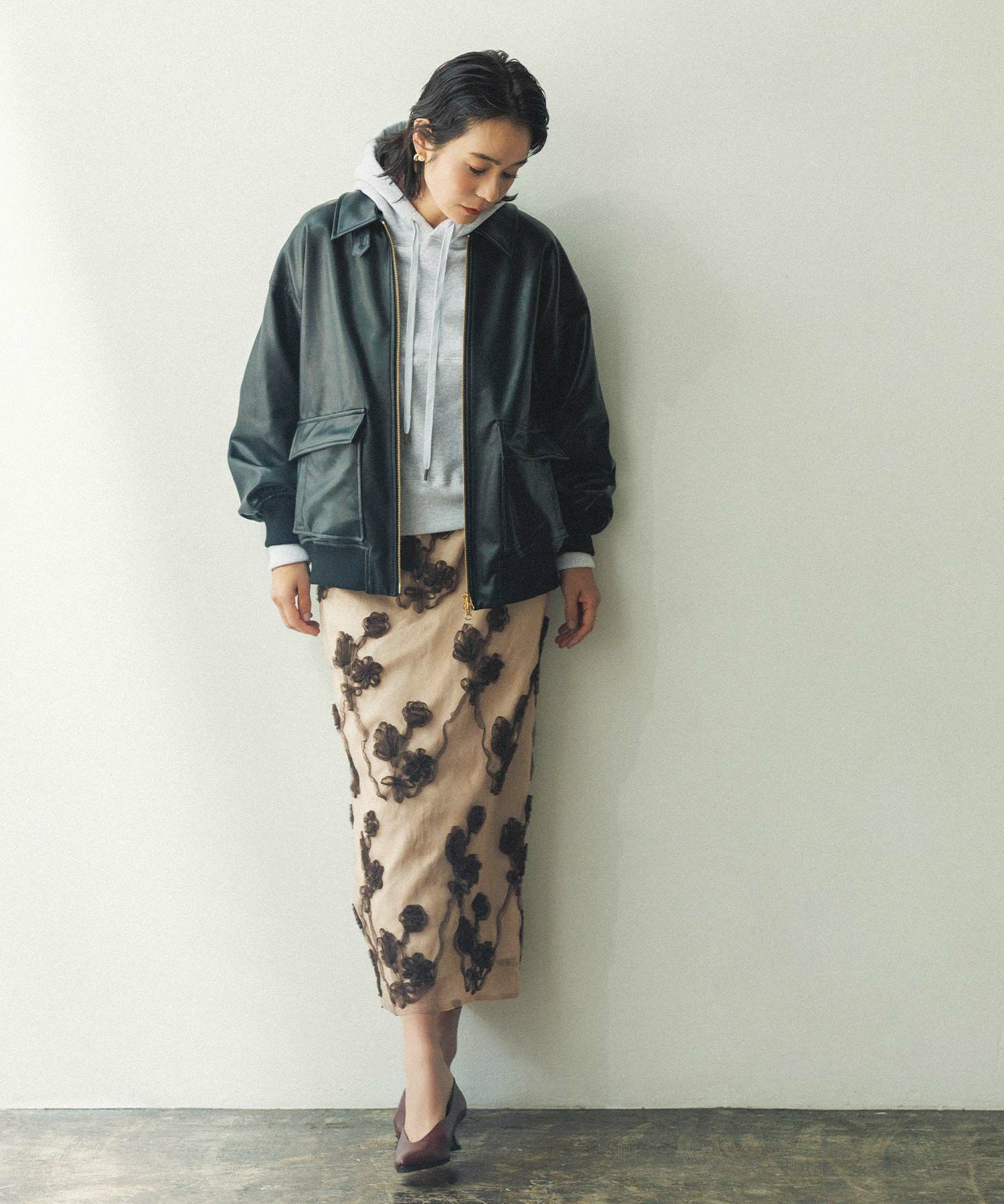 ※着用画像は撮影状況、光の当たり具合で色みが違って見える場合がございます。実際の色みについては、画像一覧の最後に掲載している詳細画像をご参照ください。