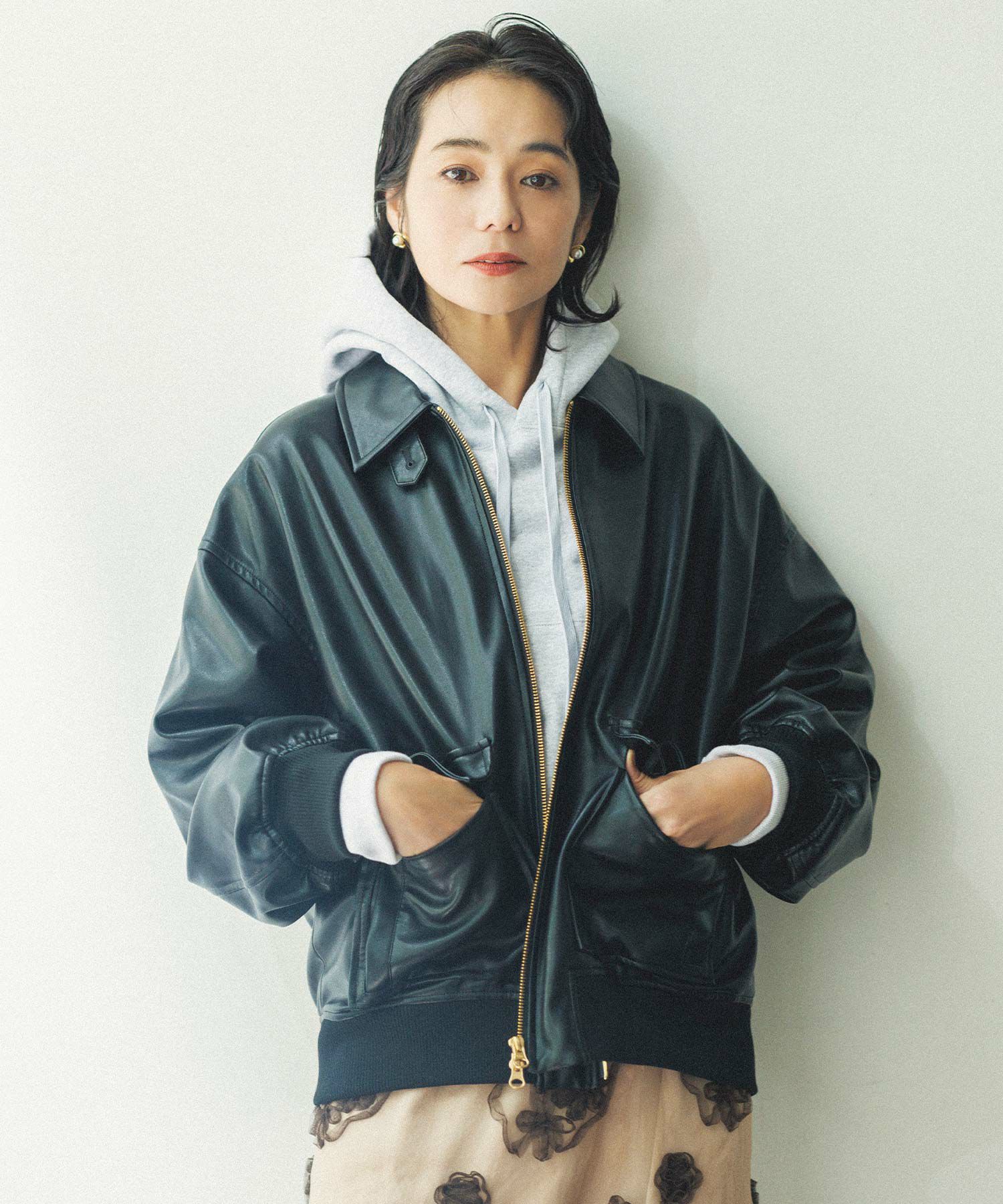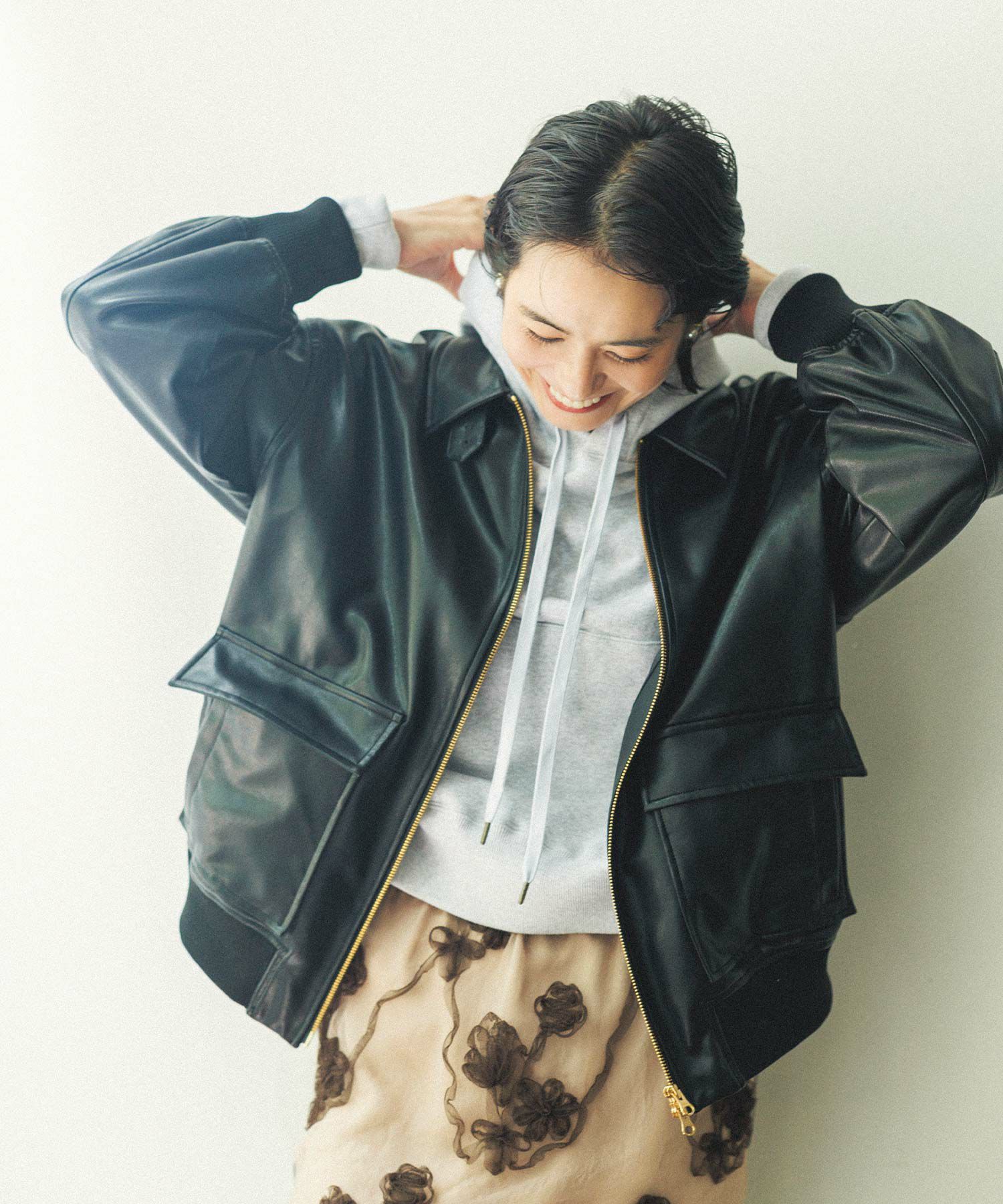 オーバーサイズですが、リアルレザーと違い軽くて羽織りやすいのでデイリー使いにオススメ。
