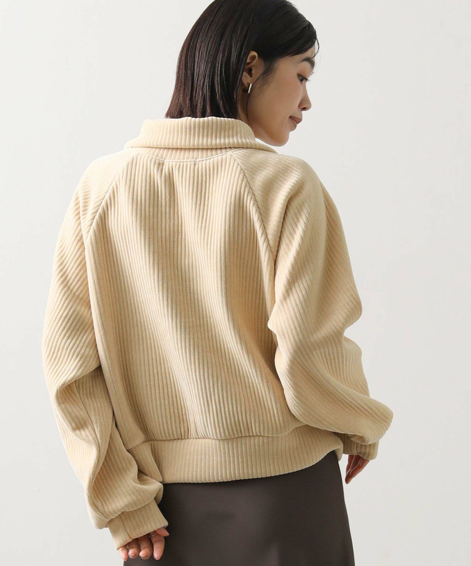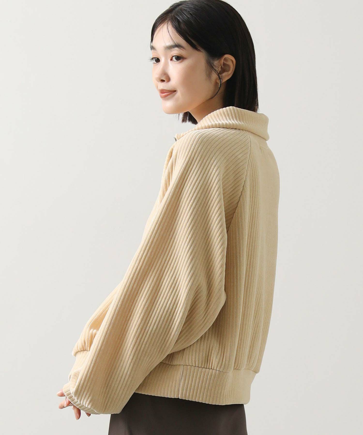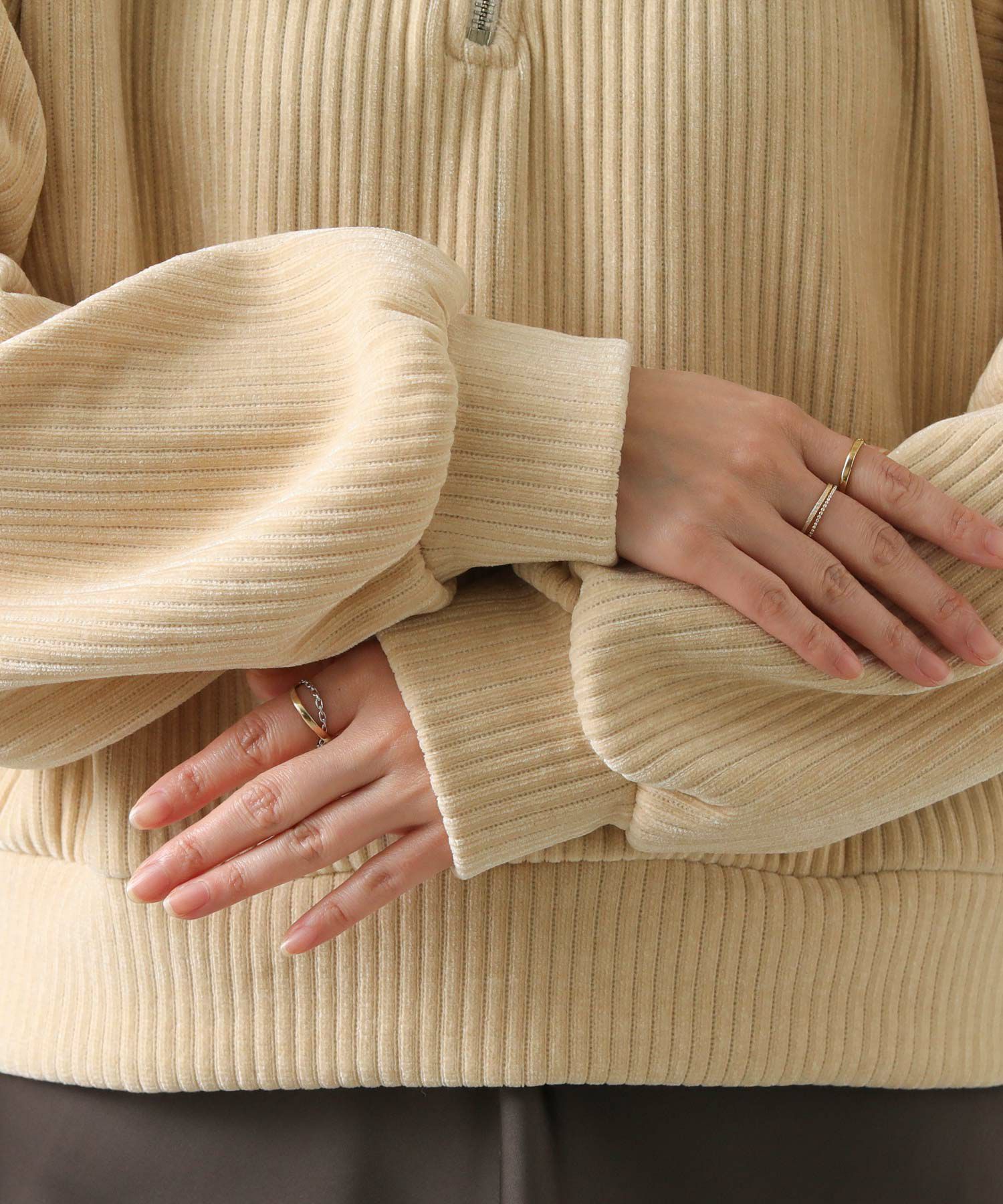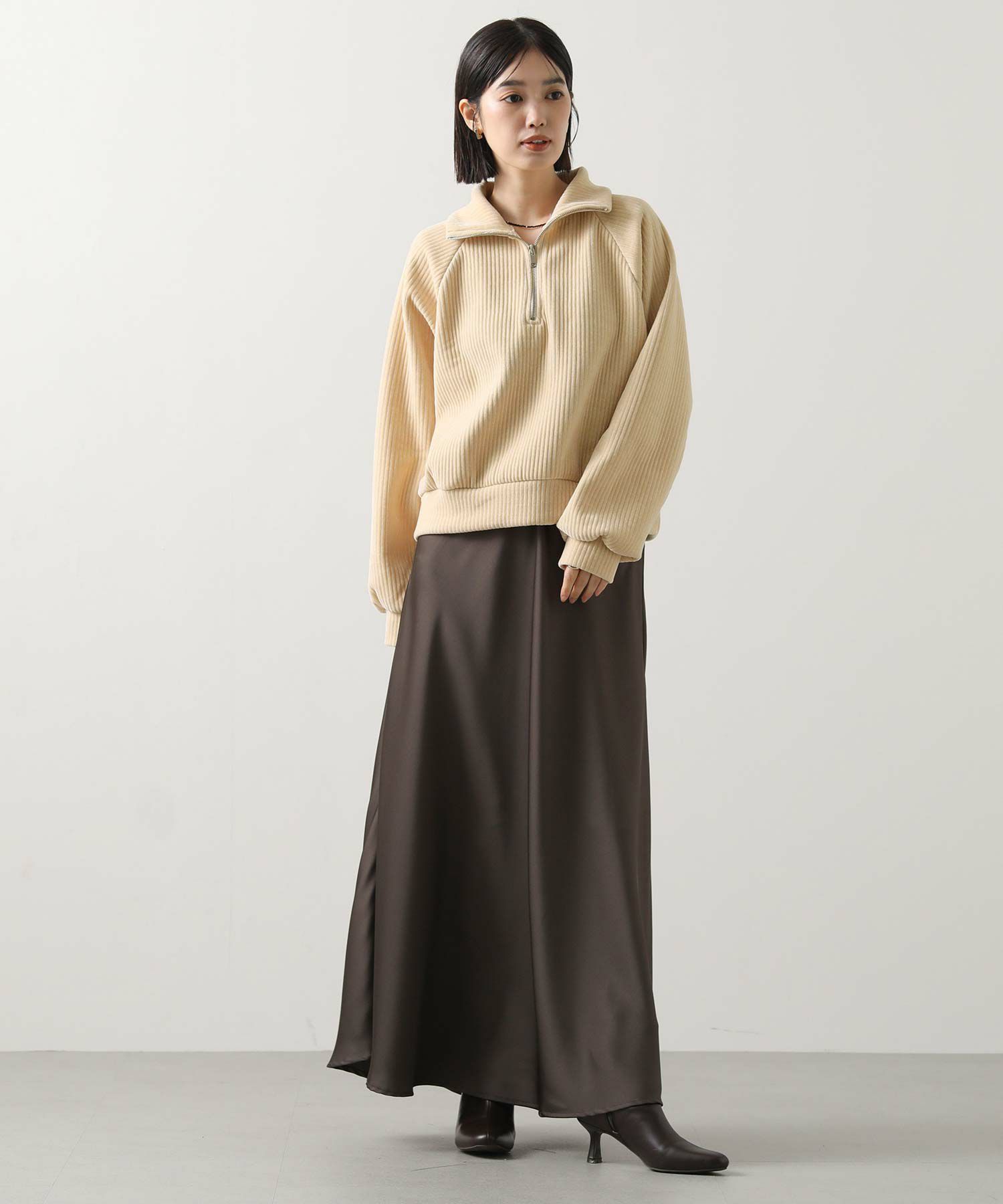 トレンド感のあるハーフジップが首元に抜け感をプラス。