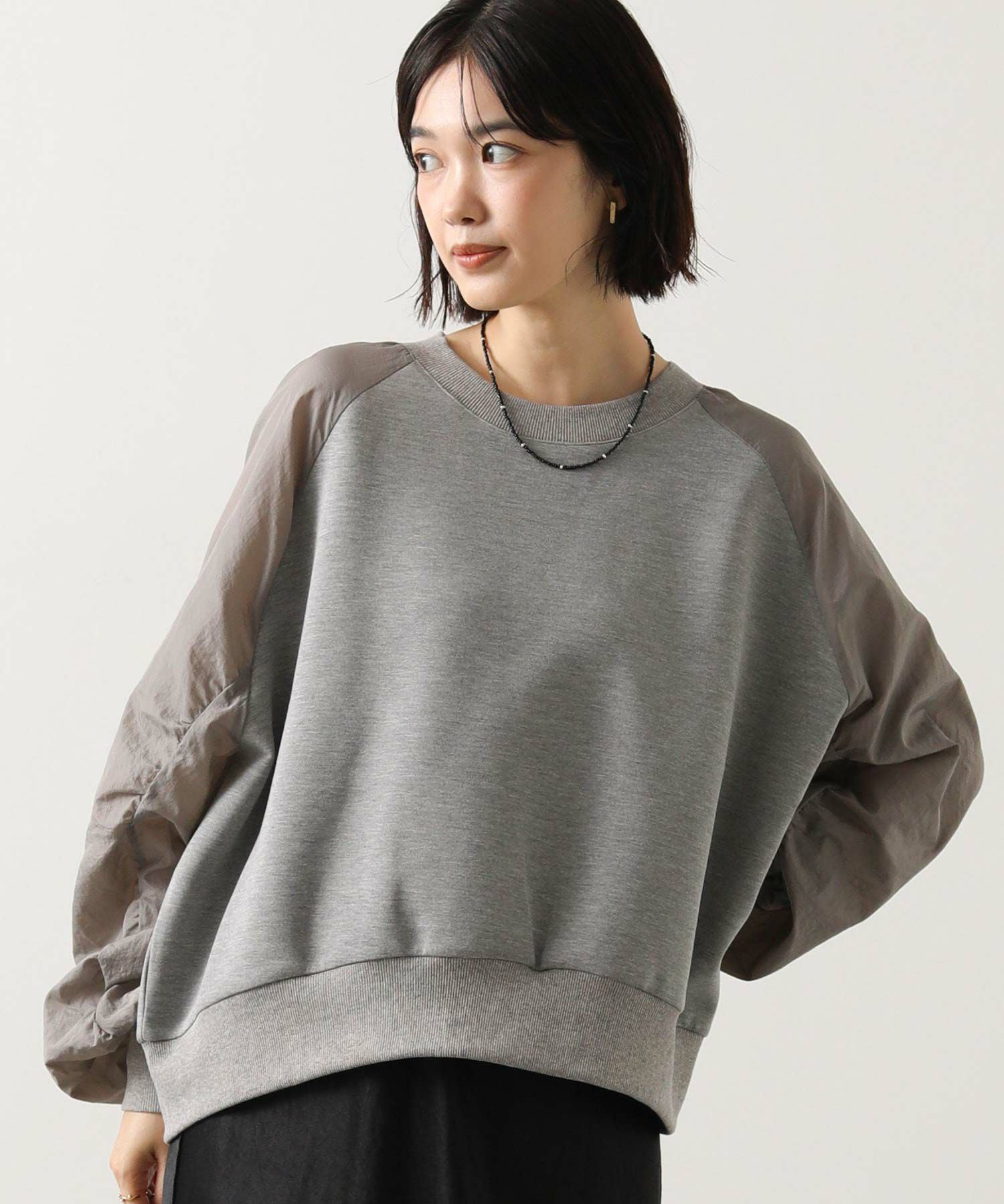 スウェット感覚でデイリーに使えながらも、異素材の組み合わせがカジュアルすぎず、大人の上品さを演出してくれます。