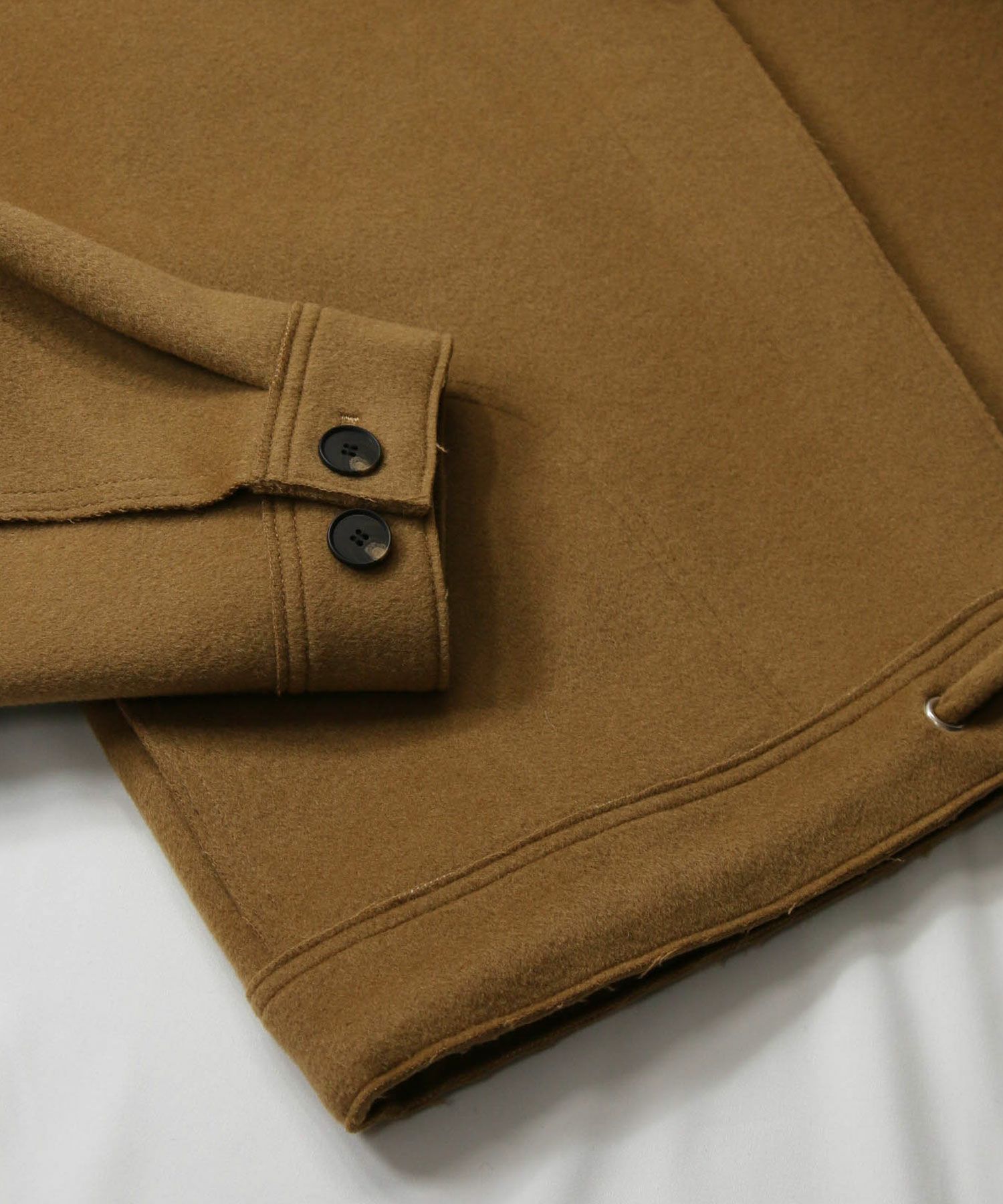 【Munich(ミューニック】から、上質なウールビーバー素材で接ぎ合わせをすべてカットオフで丁寧に仕立てたダダッフルジャケットをセレクト。