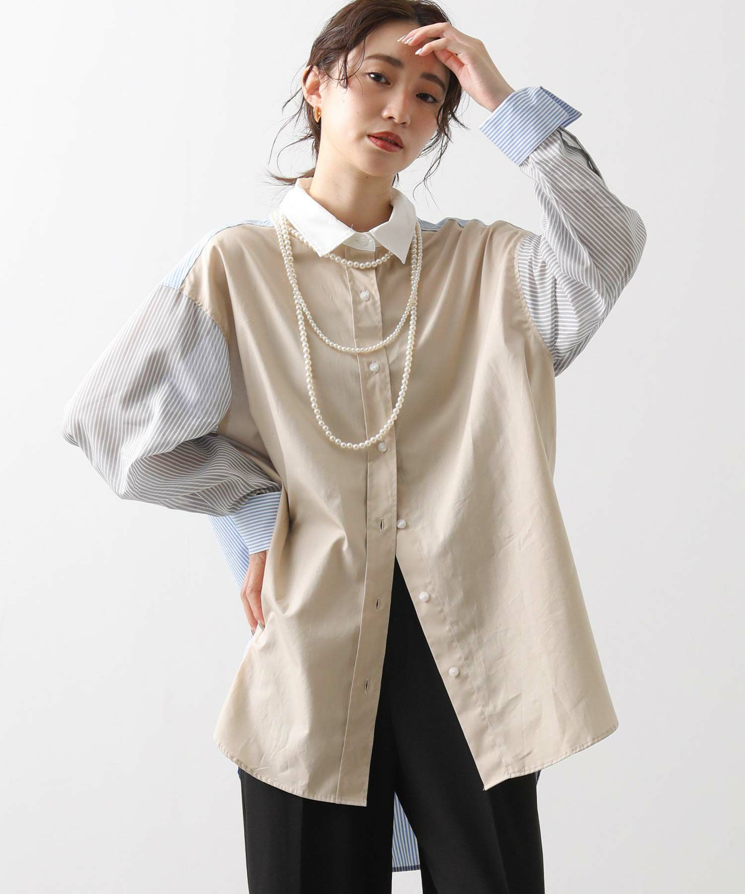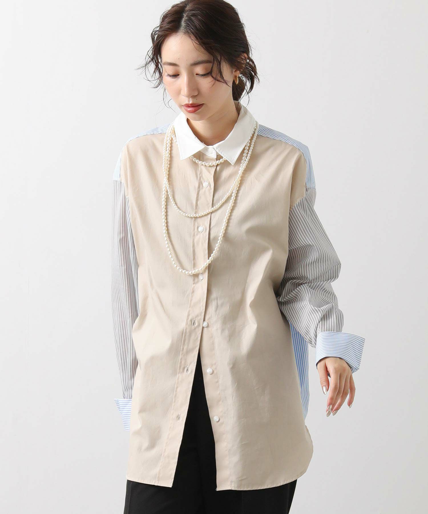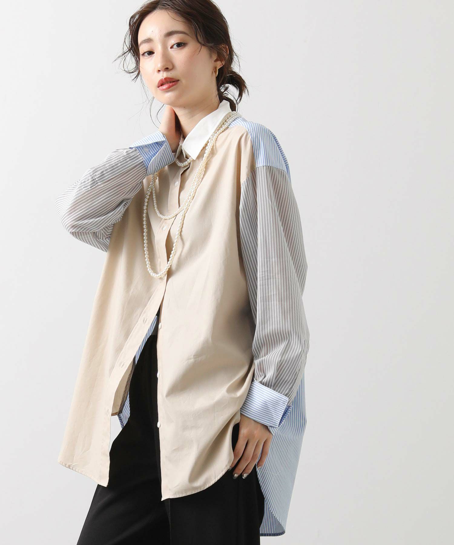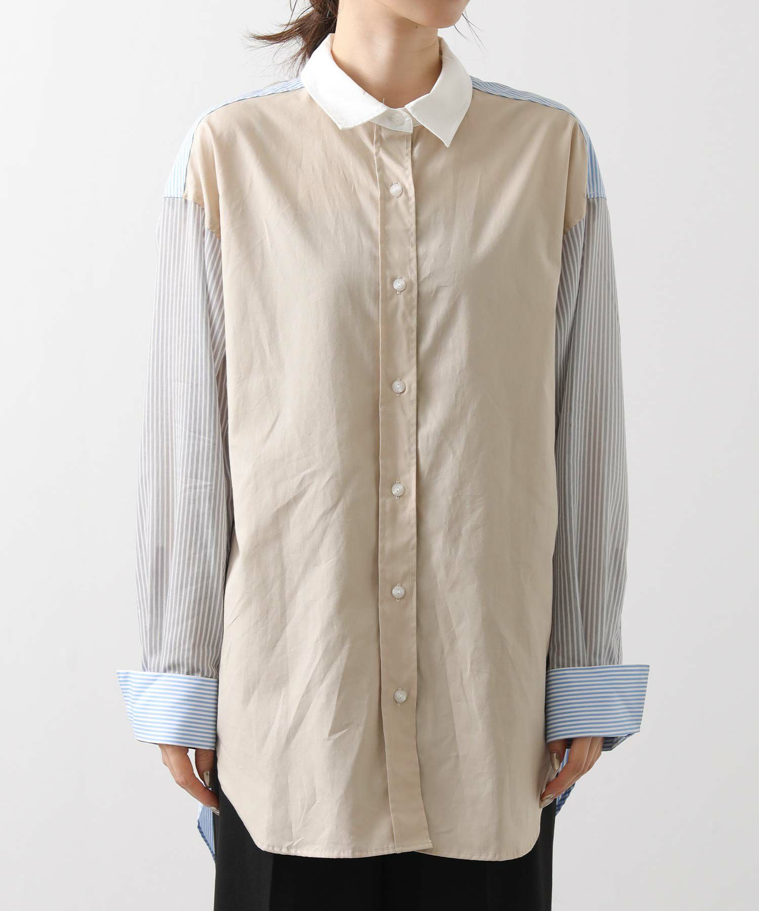 【Munich(ミューニック】から、3素材を組み合わせた着丈の長いレギュラーカラーシャツをセレクト。