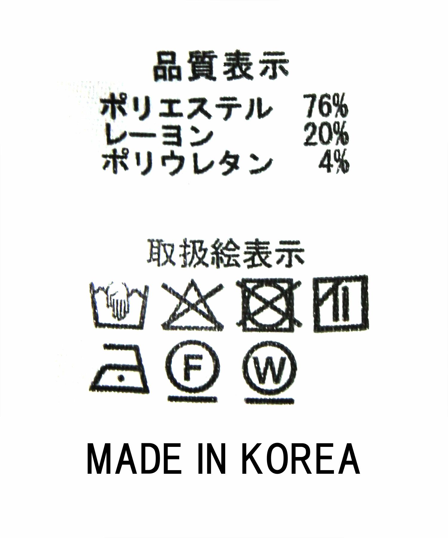 ポリエステル76%、レーヨン20%、ポリウレタン4%