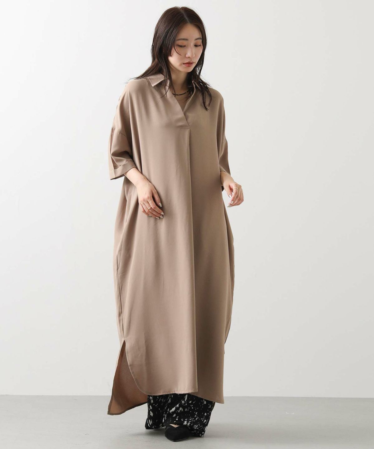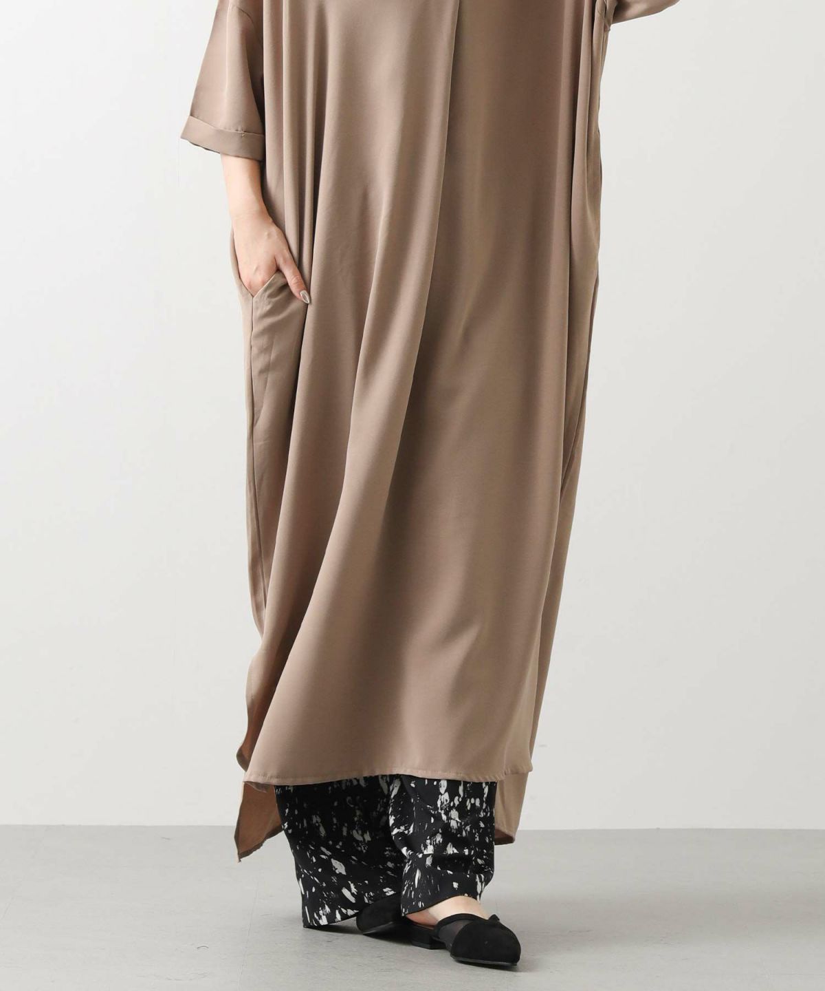 s.ドロストサイド切り替え5分袖ワンピース
