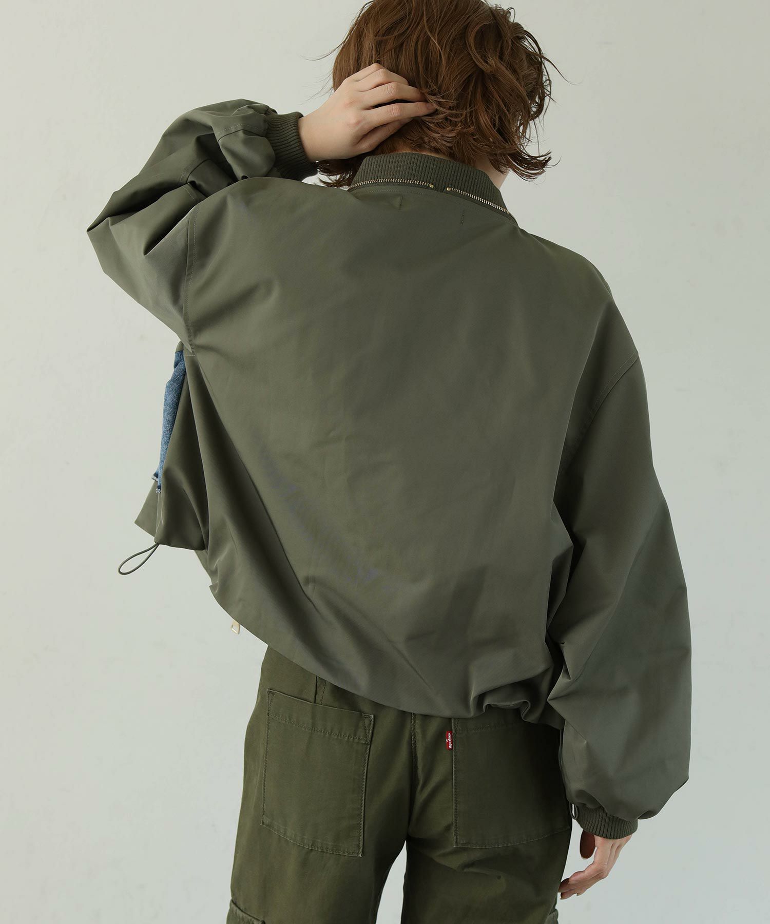 MA-1風のミリタリーテイストのブルゾンで、袖がバルーン使用になっているのでより女性らしいシルエットになっています。
