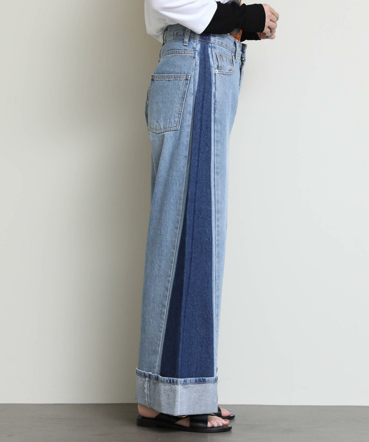 裾は大きくロールアップしたデザイン。トレンドのデニムスタイルにこだわりを詰め込んだ一着です。