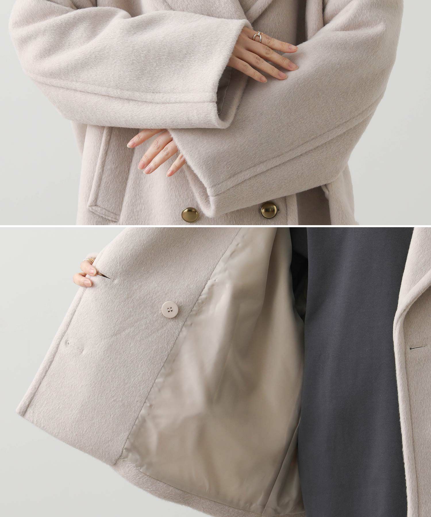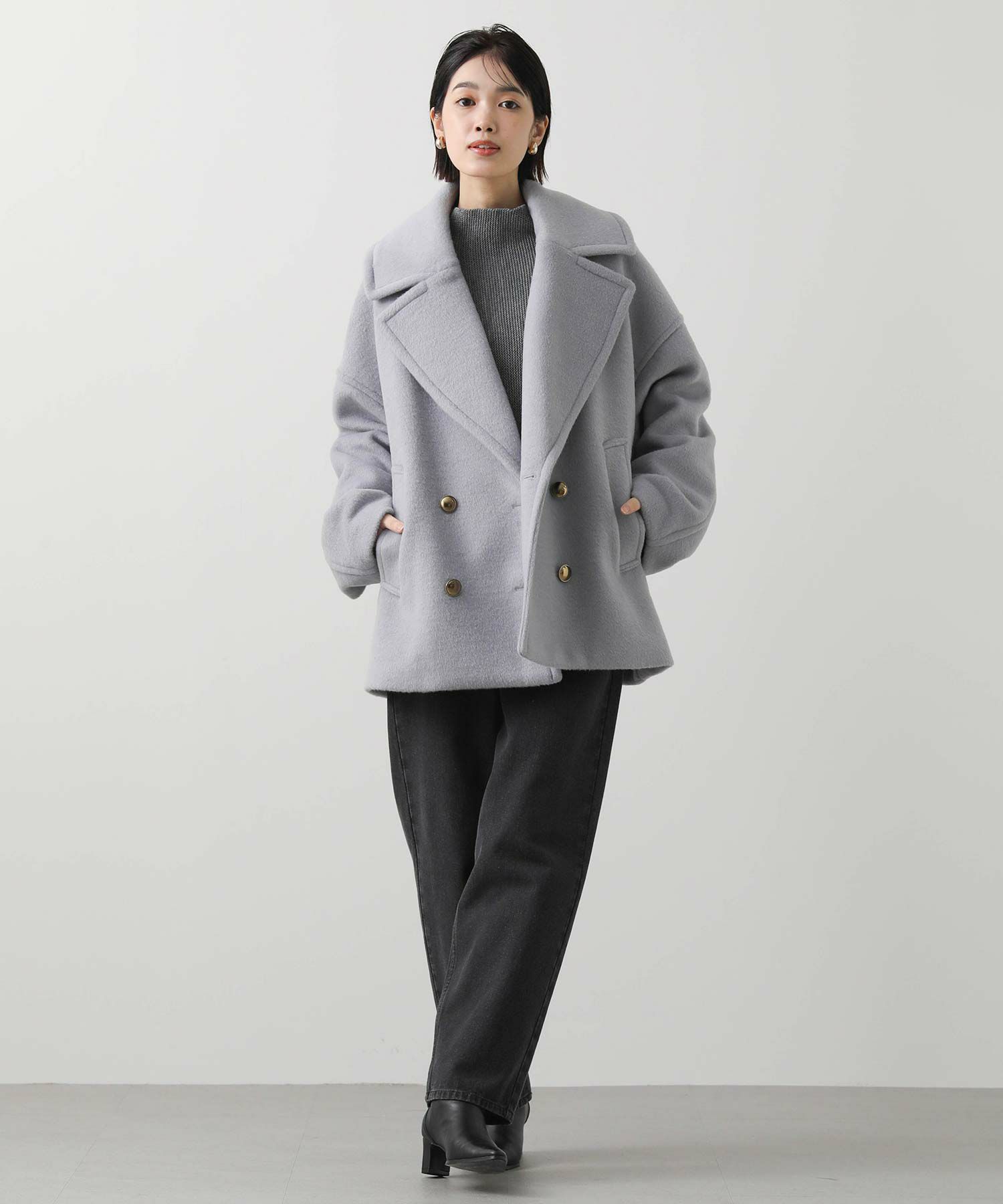 大衿が目を惹く、シンプル×ベーシックなPコート。ゆるっとしたサイズ感で今っぽい雰囲気で着られます。柔らかく滑らかな肌触りのビーバー素材で仕立てたので、どこか上品さも漂います。