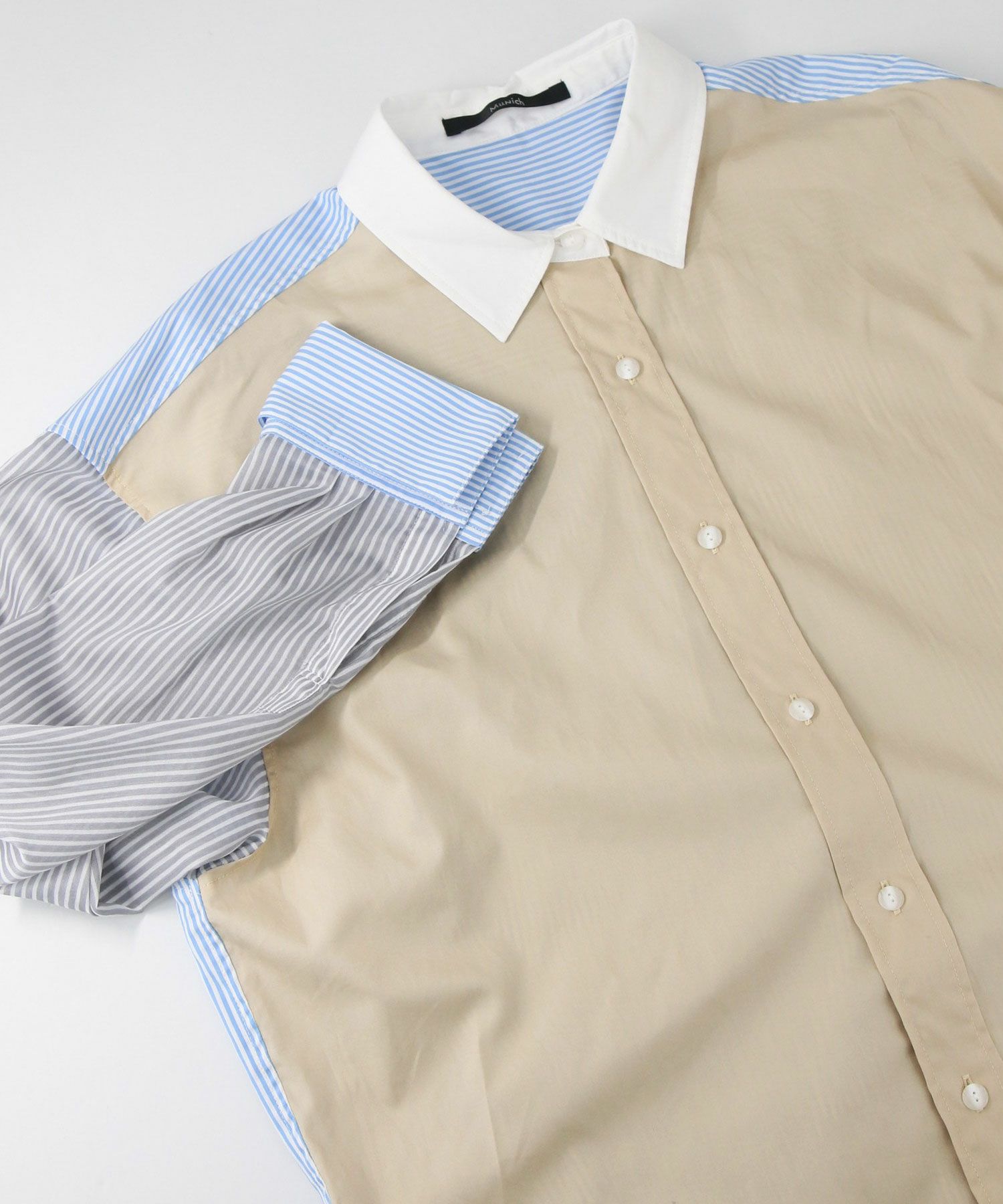 【Munich(ミューニック】から、3素材を組み合わせた着丈の長いレギュラーカラーシャツをセレクト。
