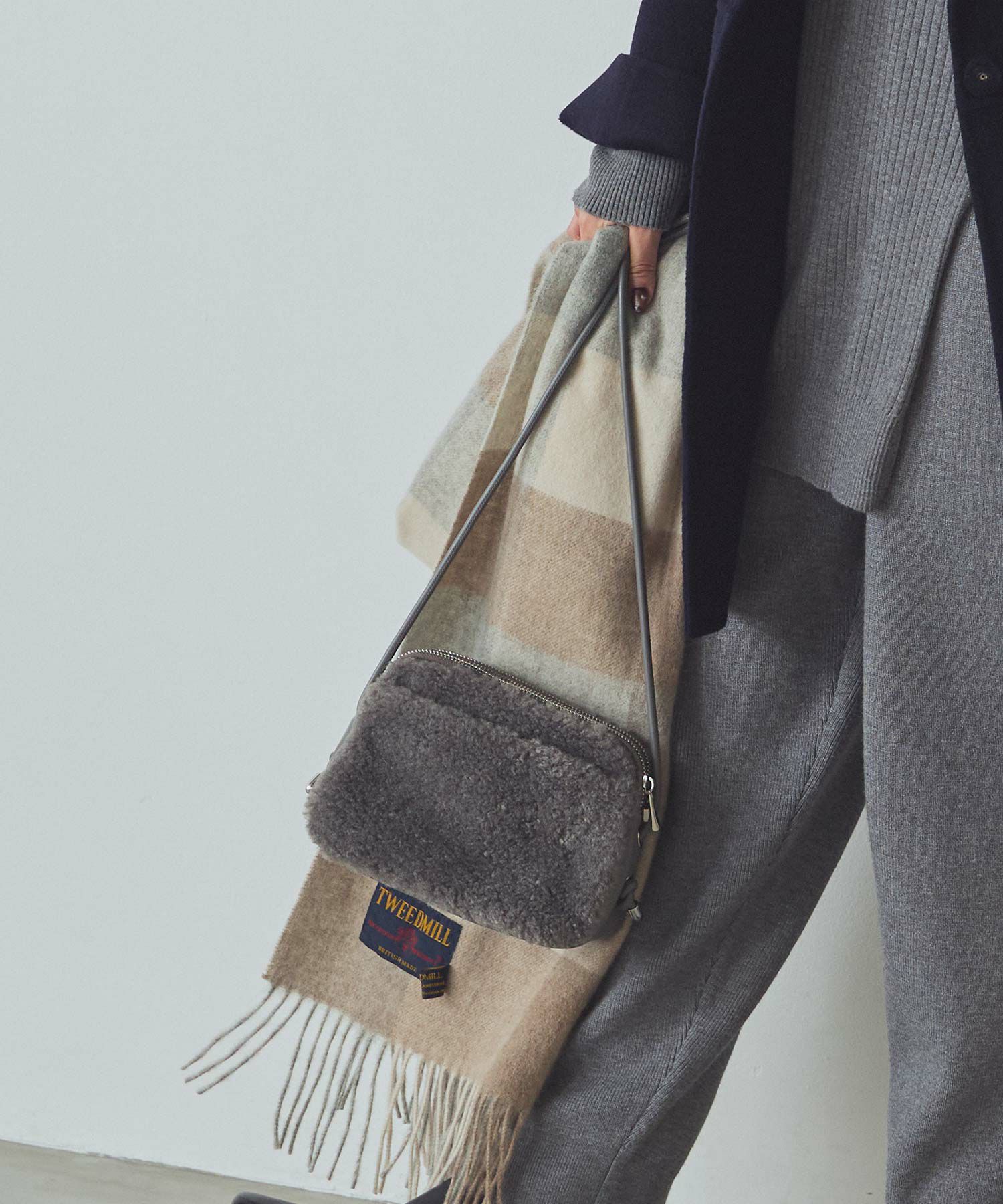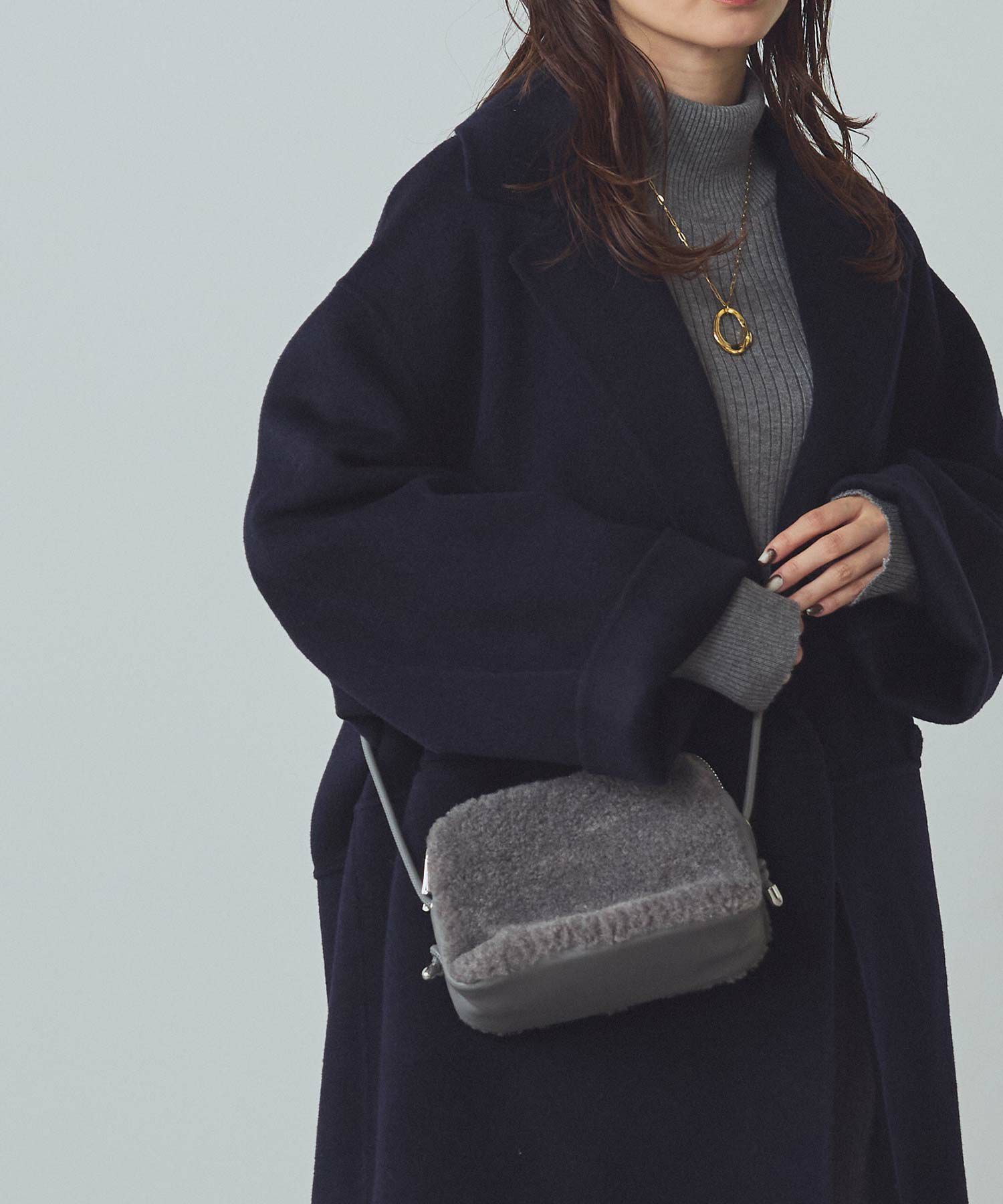 秋冬のスタイリングのポイントになるボアポシェット。