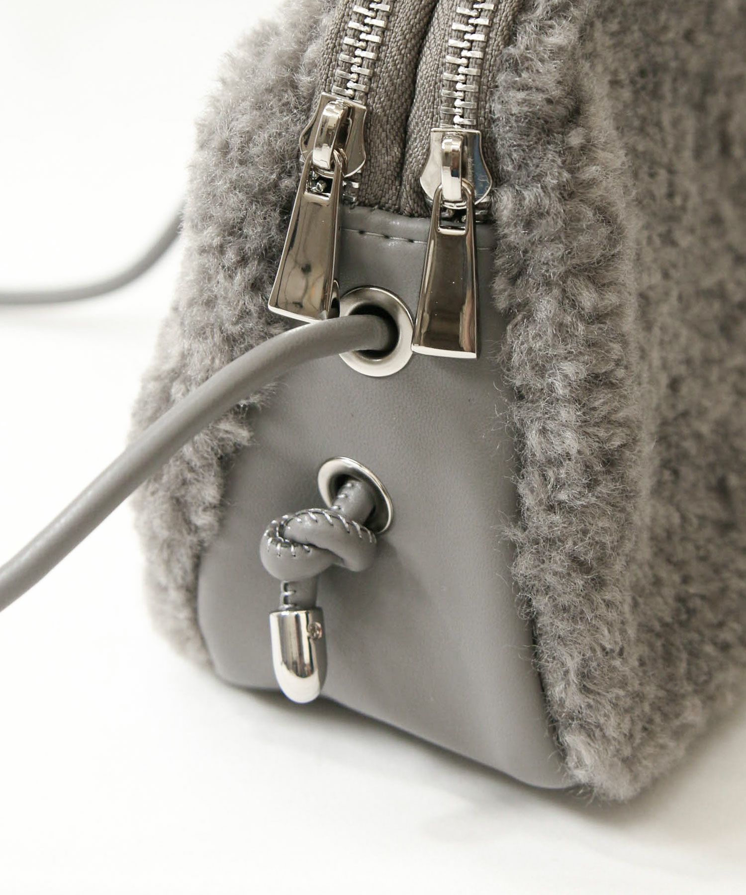 ミニマルなデザインと、きめ細かいボアとレザーライクのコンビが大人も持ちやすいアイテム。