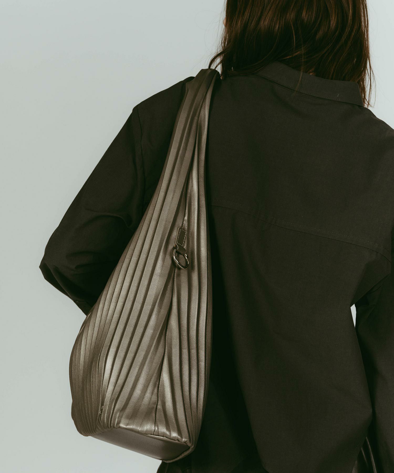 プリーツ加工をした肩掛けバッグ。