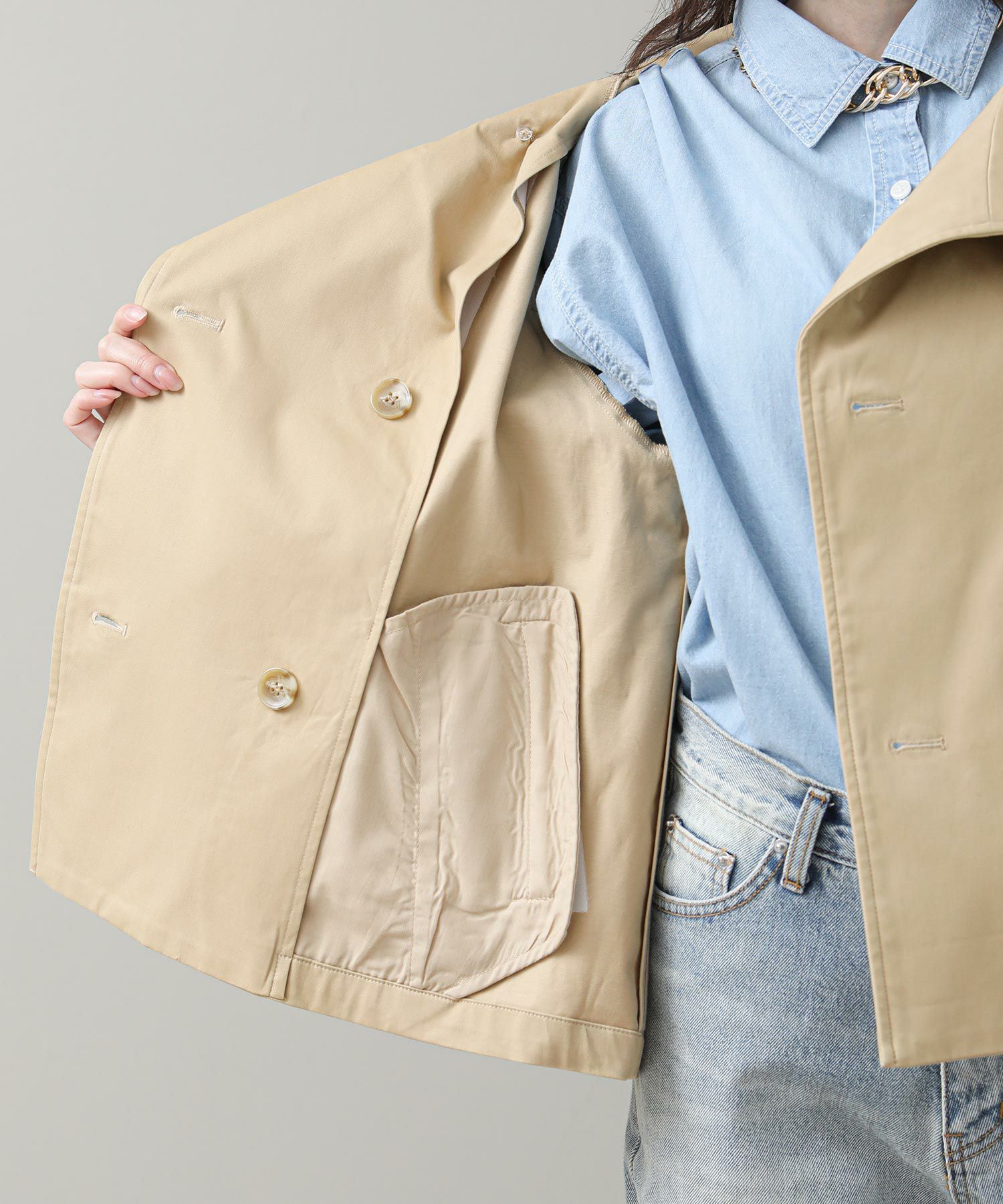 今シーズン注目のスタンドカラーをトレンチコートに落とし込みました。