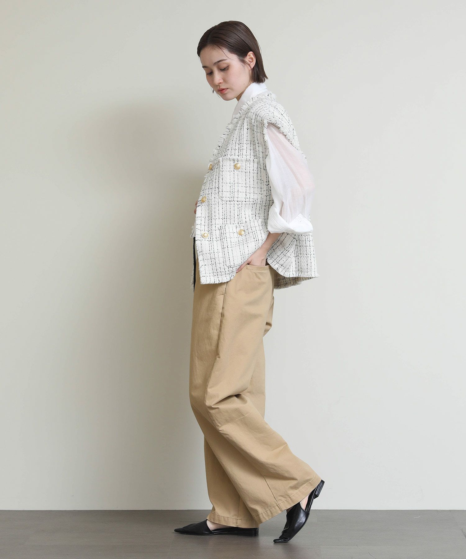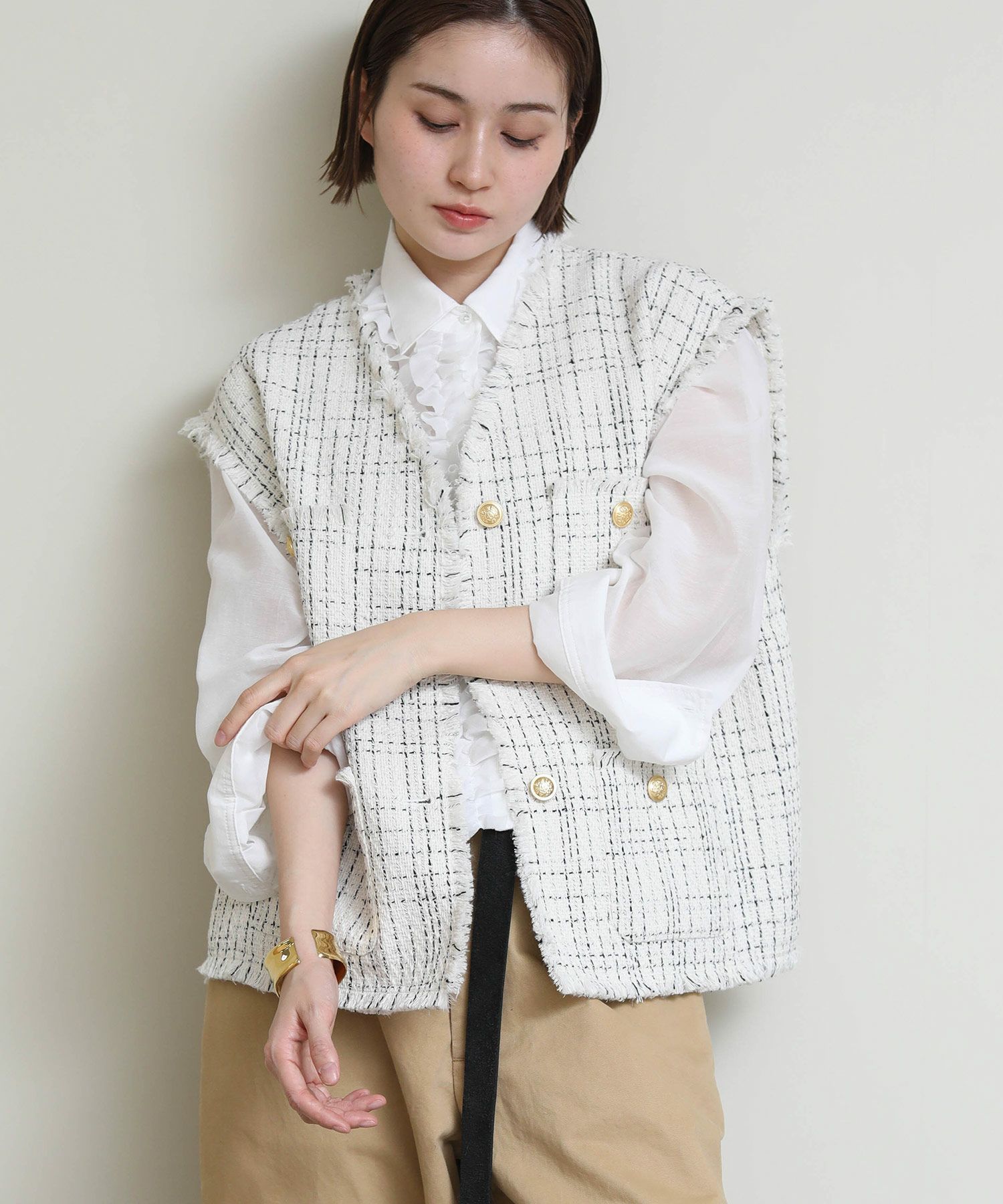 高級感のあるツイード素材のベストが登場。