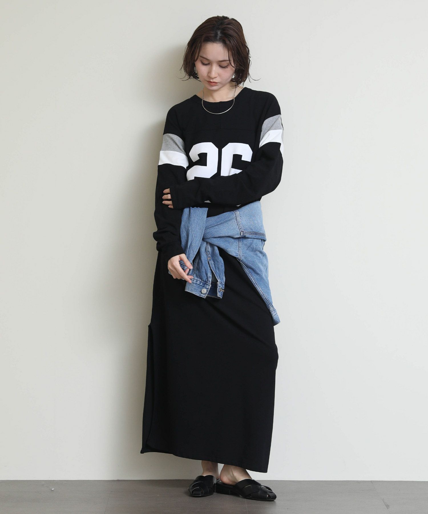 存在感のある「26」ロゴと、程よいIラインシルエットがラフなのに大人っぽい印象を演出します。