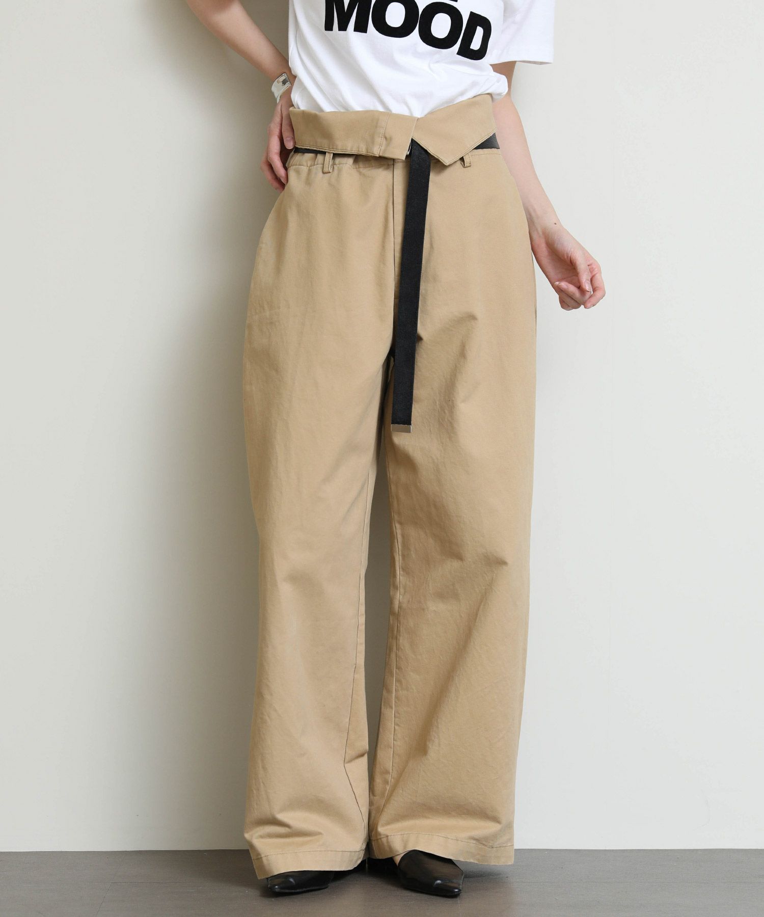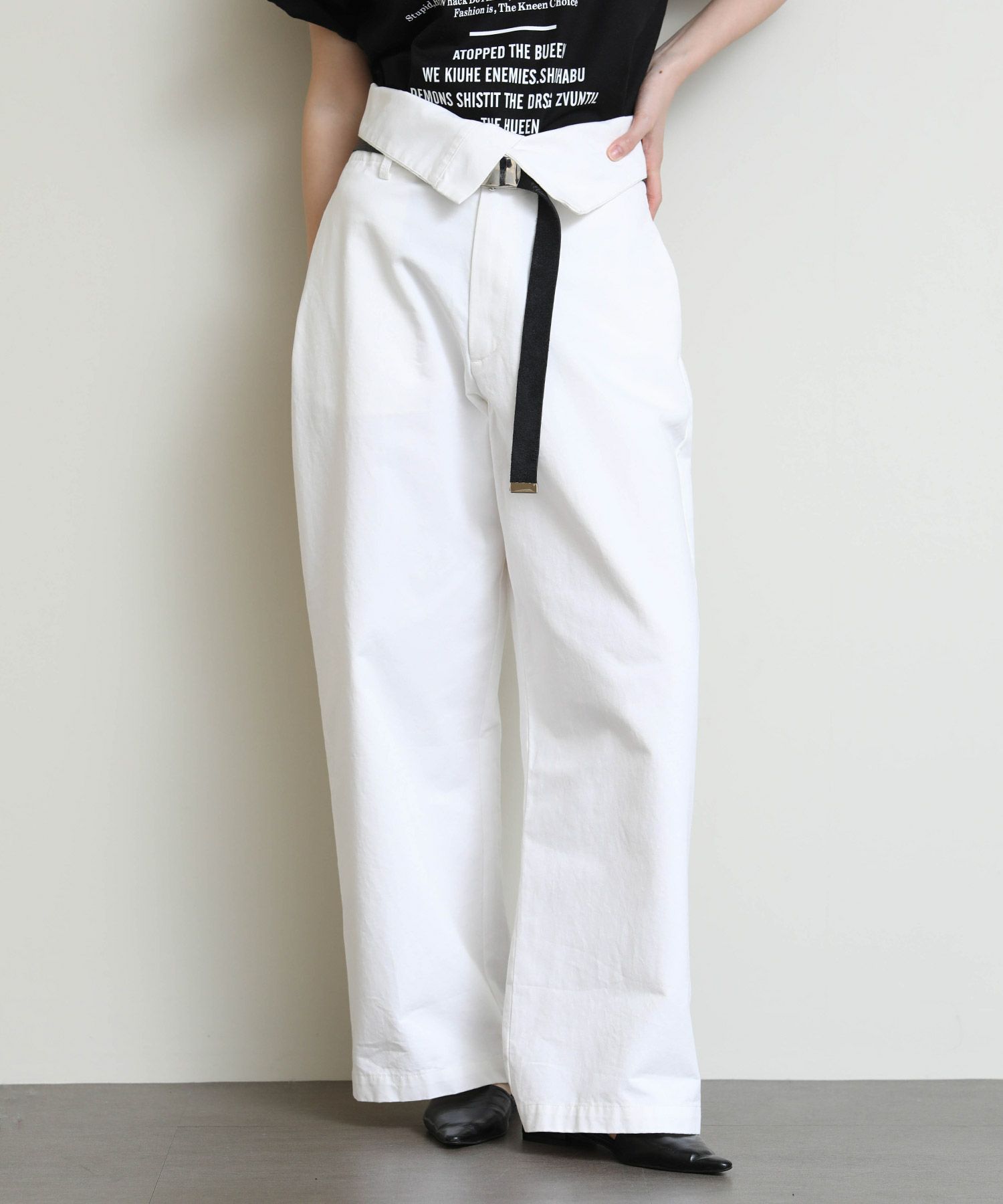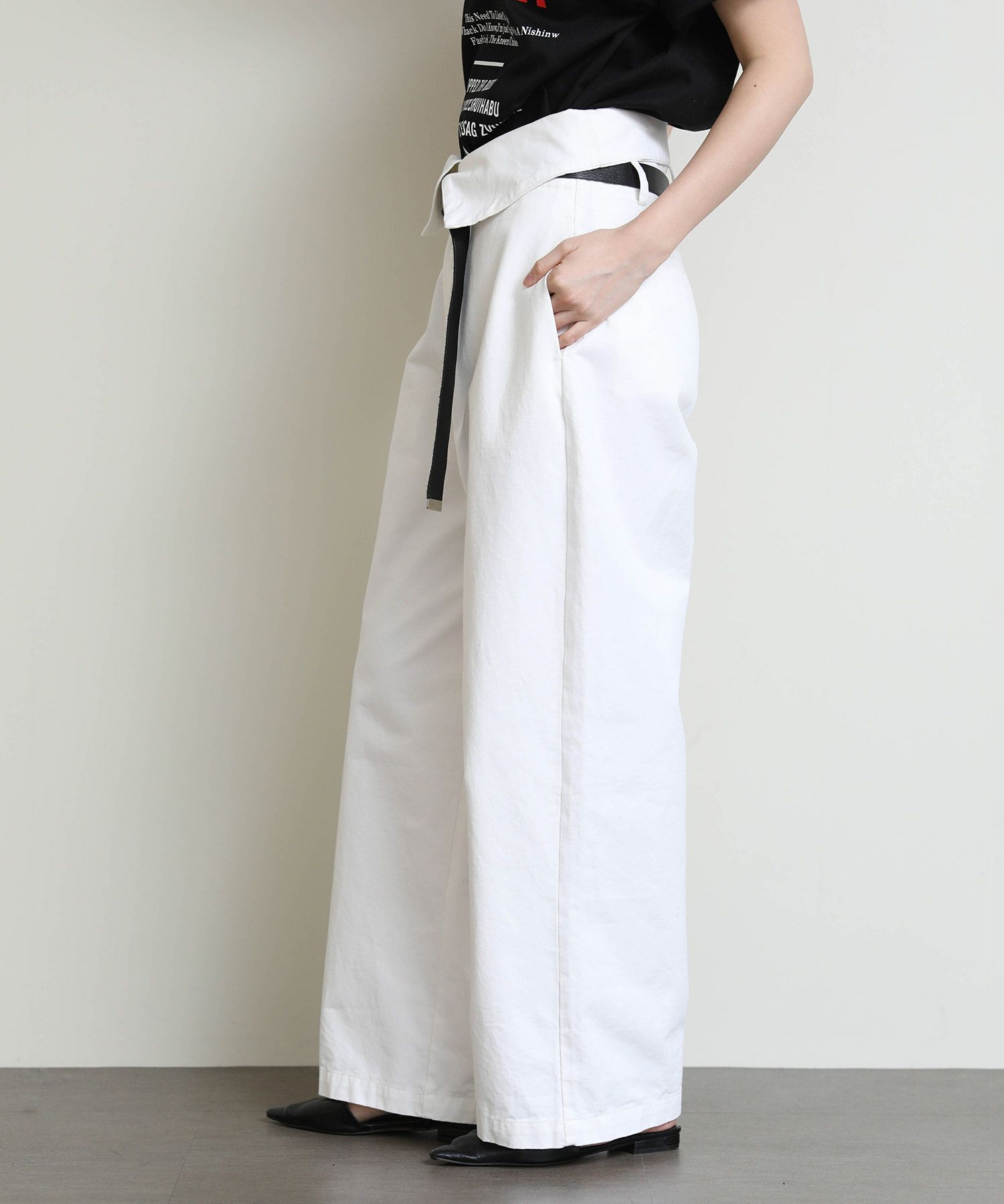 存在感のあるウエストデザインが目を惹くワイドパンツ。