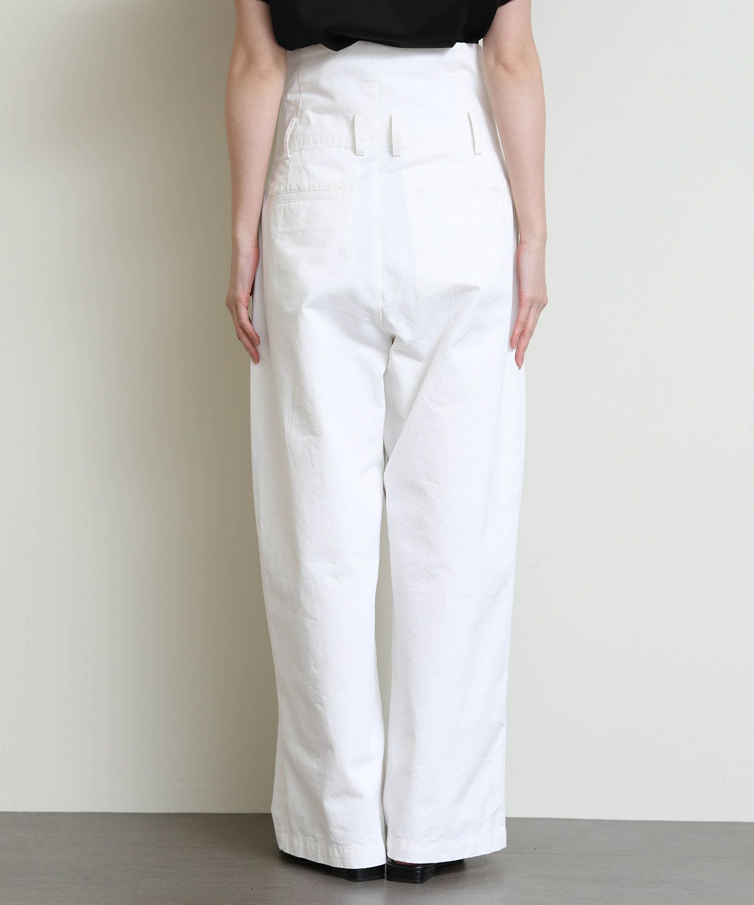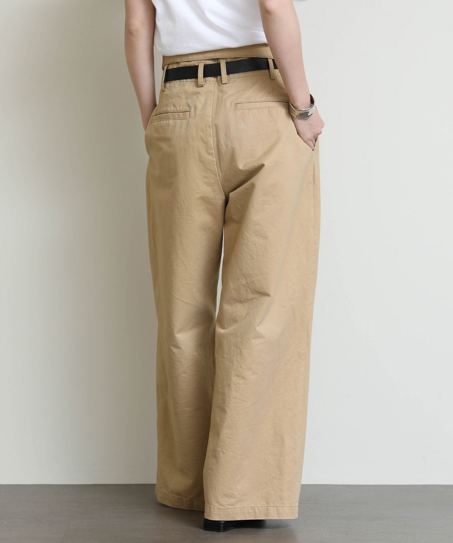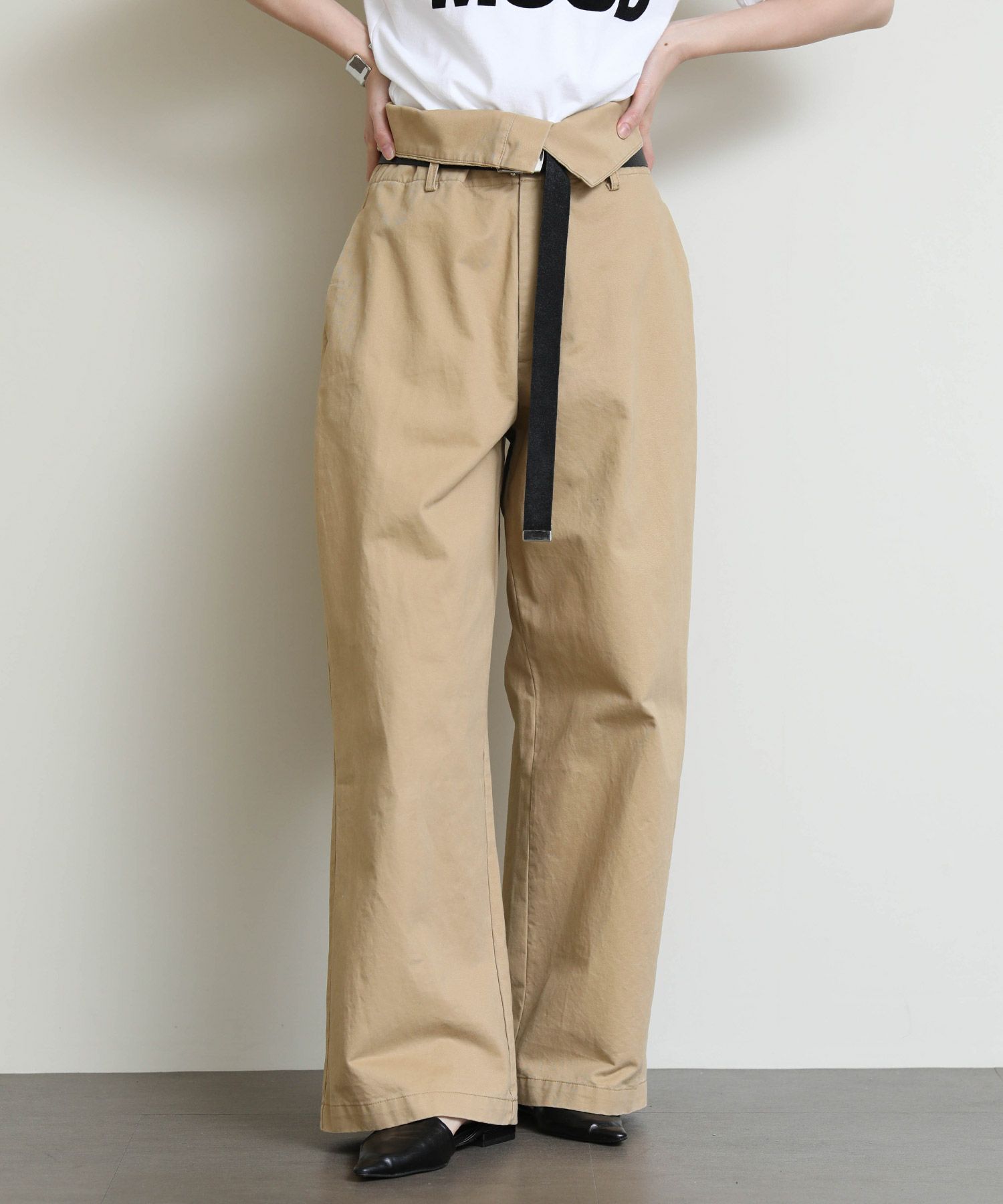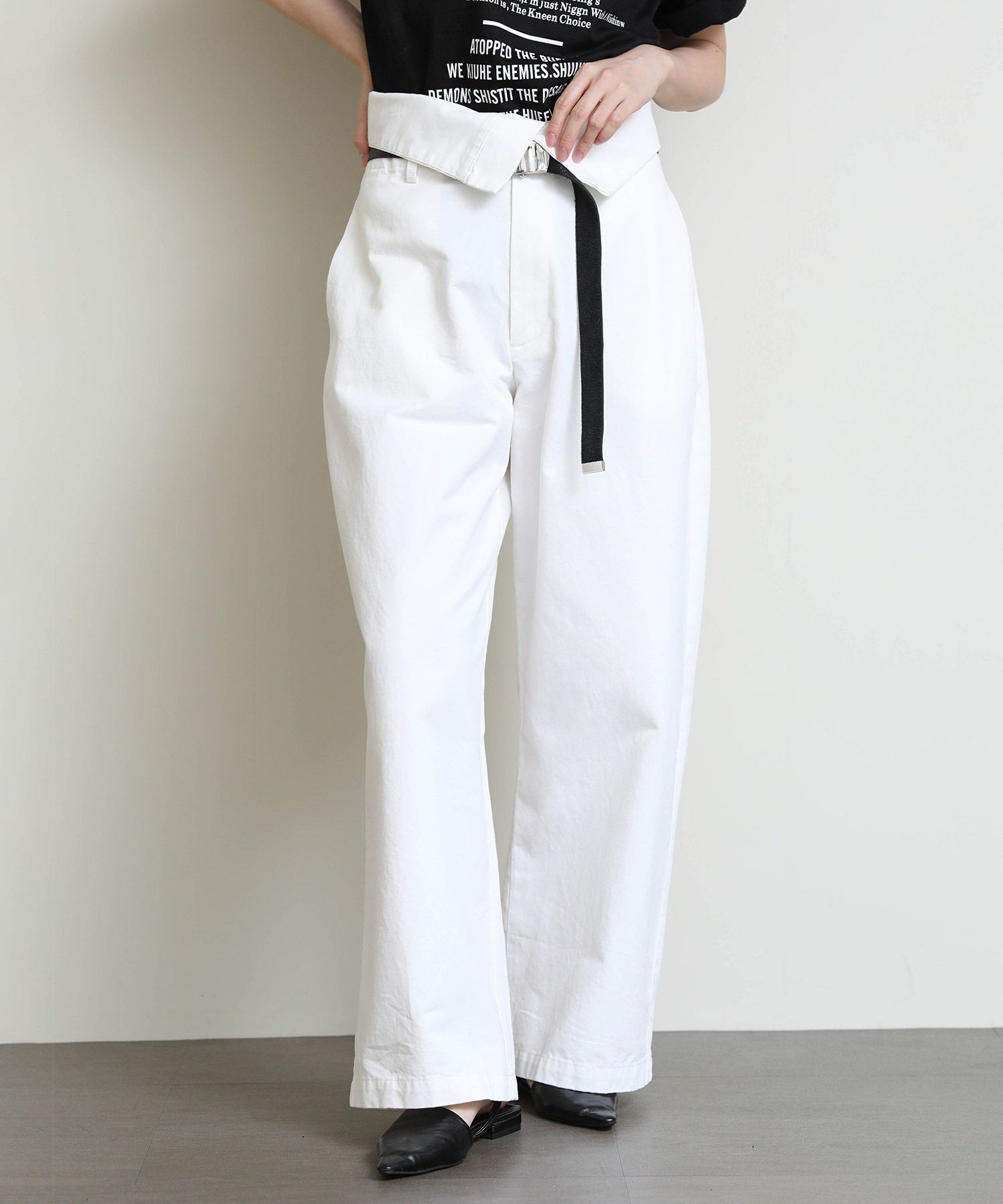 存在感のあるウエストデザインが目を惹くワイドパンツ。