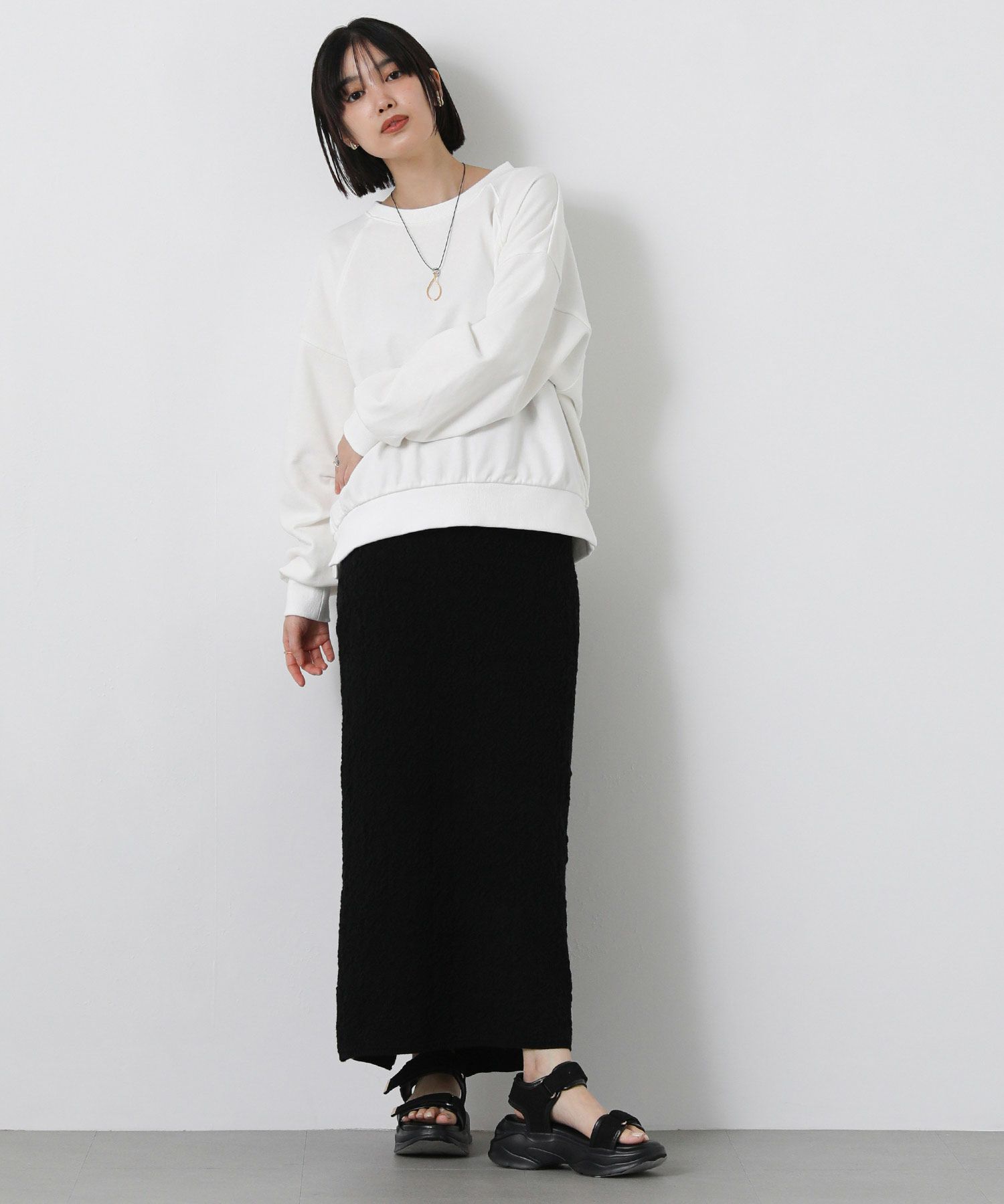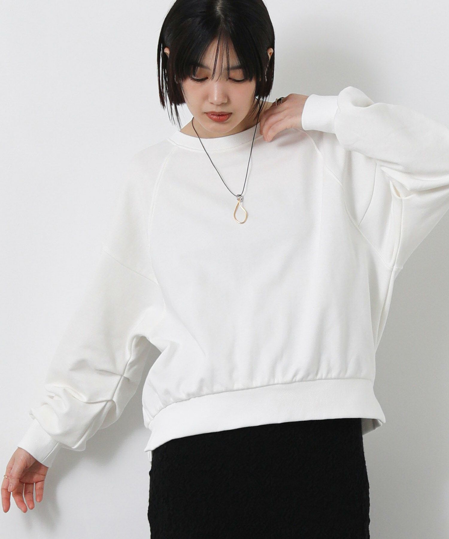 シンプルでもこなれスタイルが決まる、抜け感のあるフォルムのスウェット。