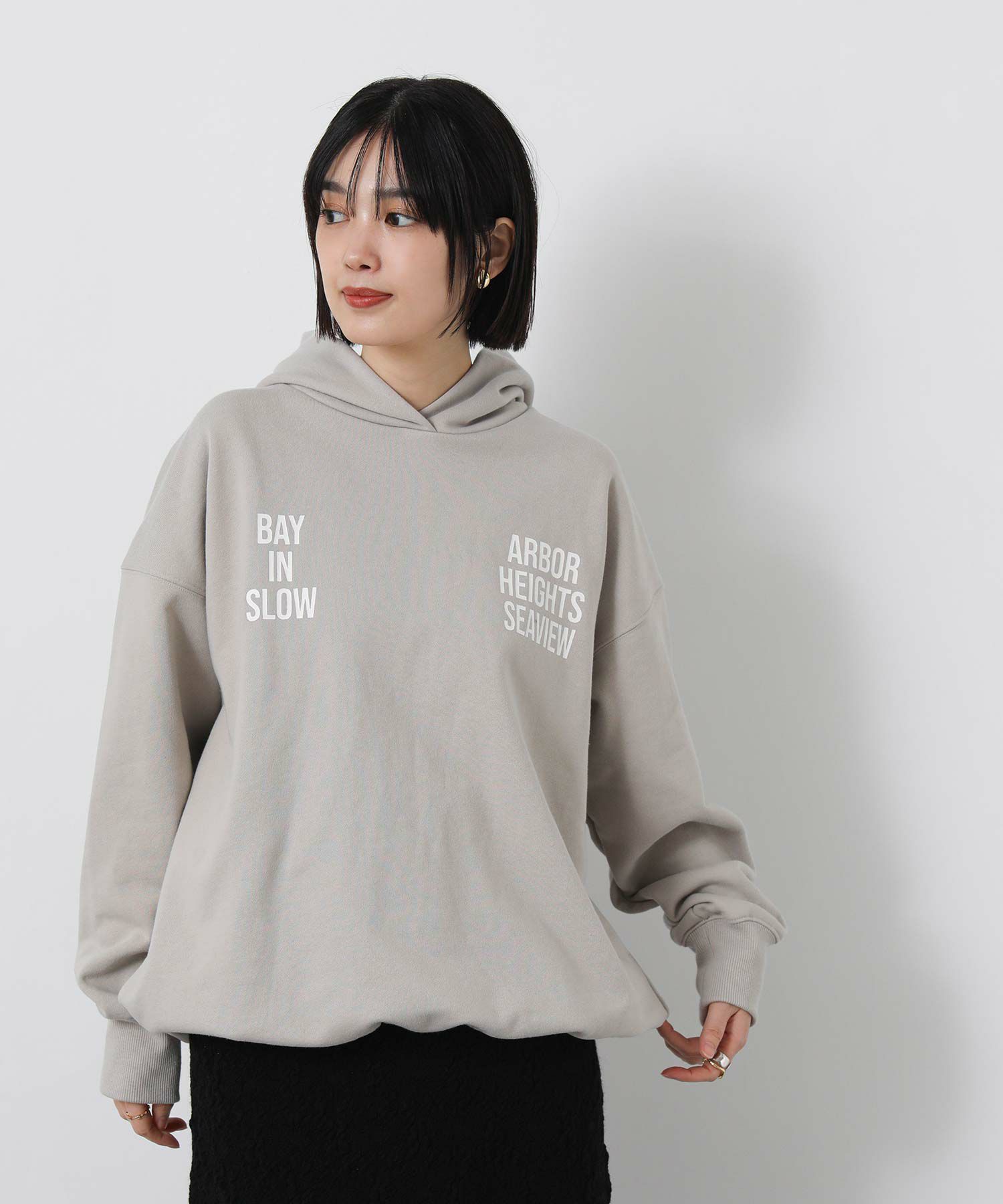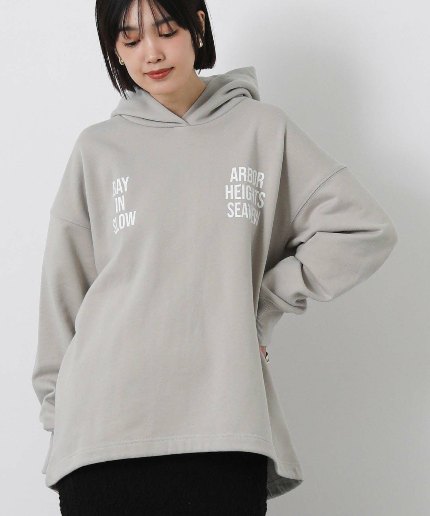 ロゴのインパクトが印象的なフーディー。
