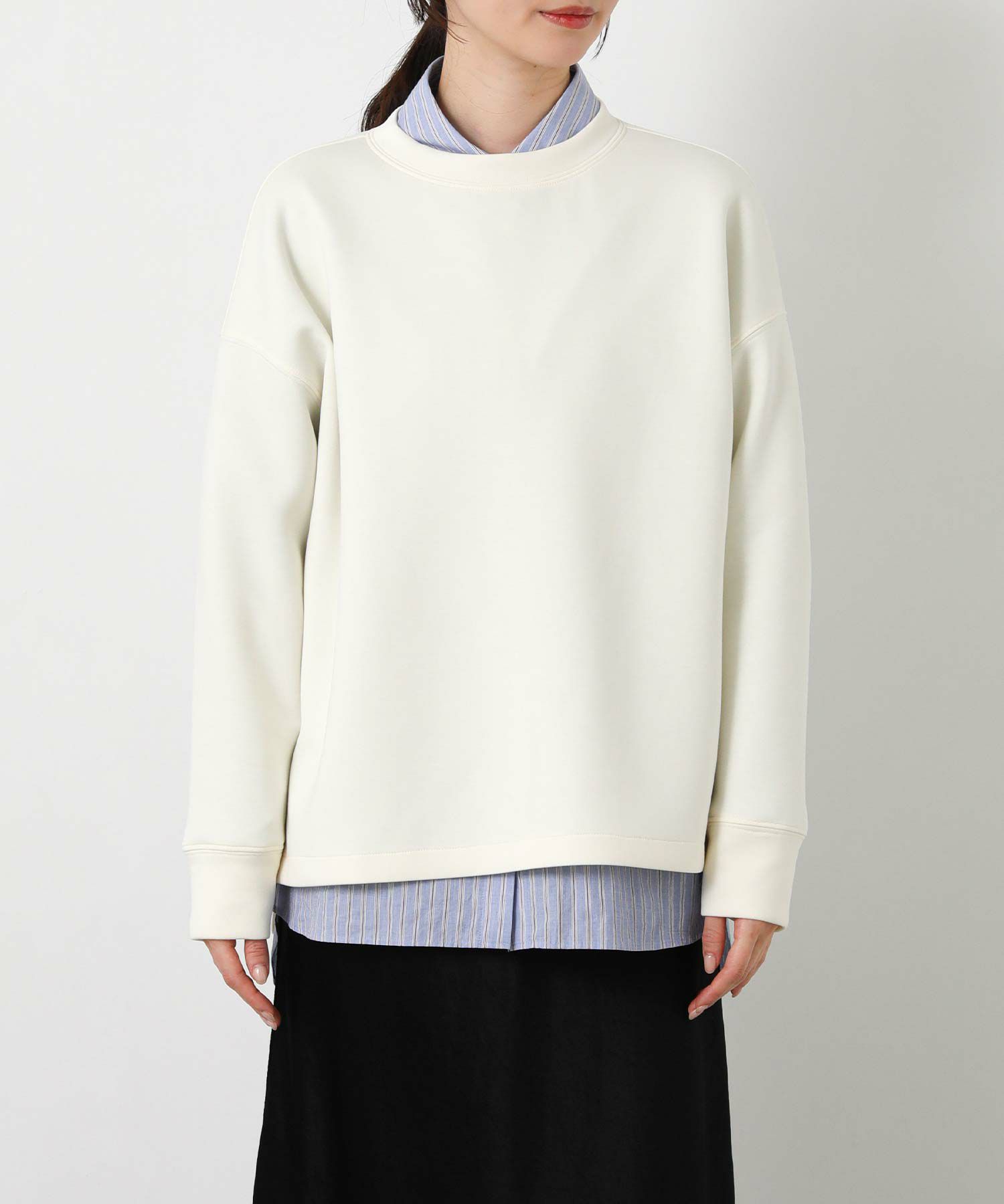 程よい厚みのもっちりダンボール素材を使用した、上品に着られるプルオーバー。