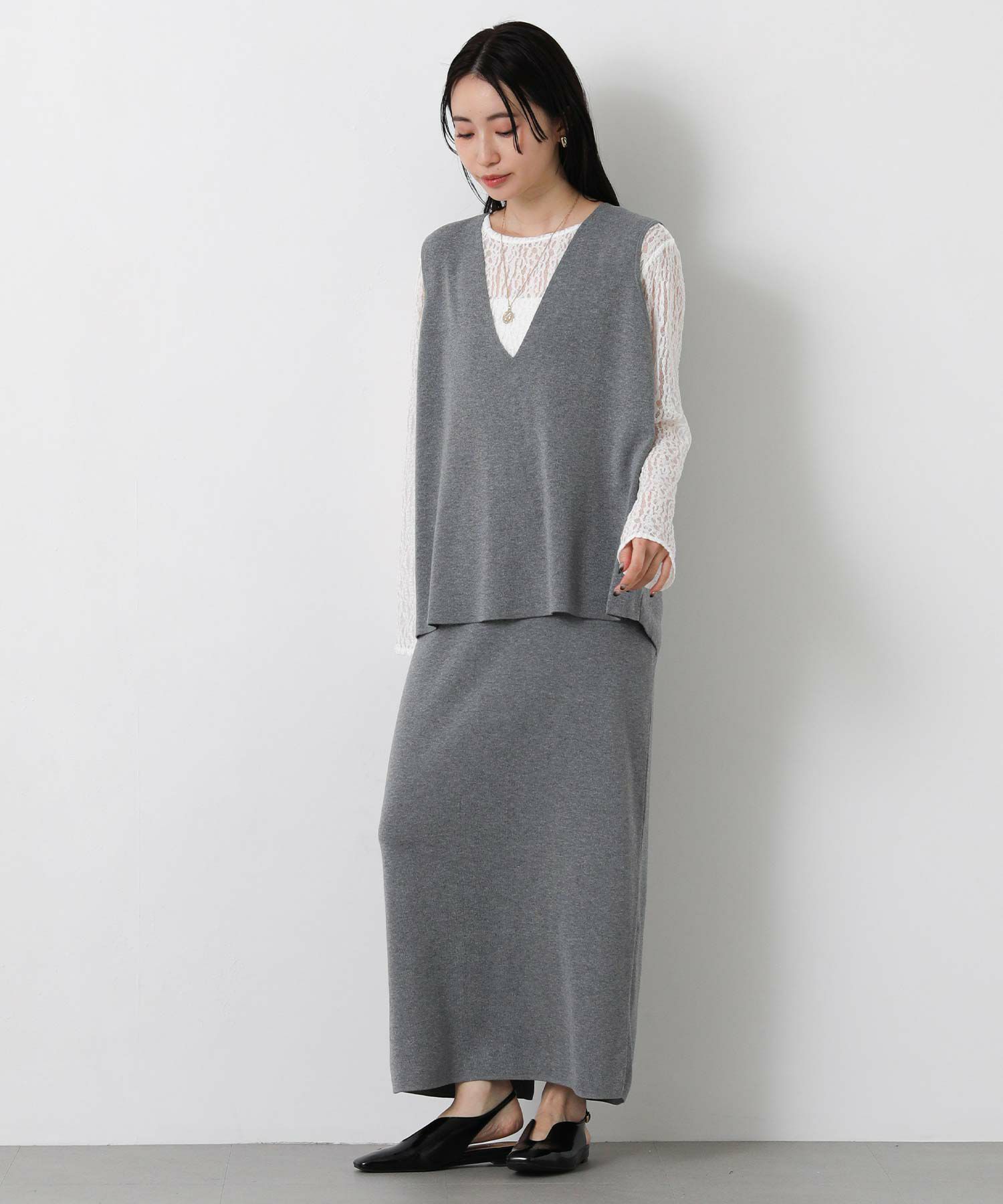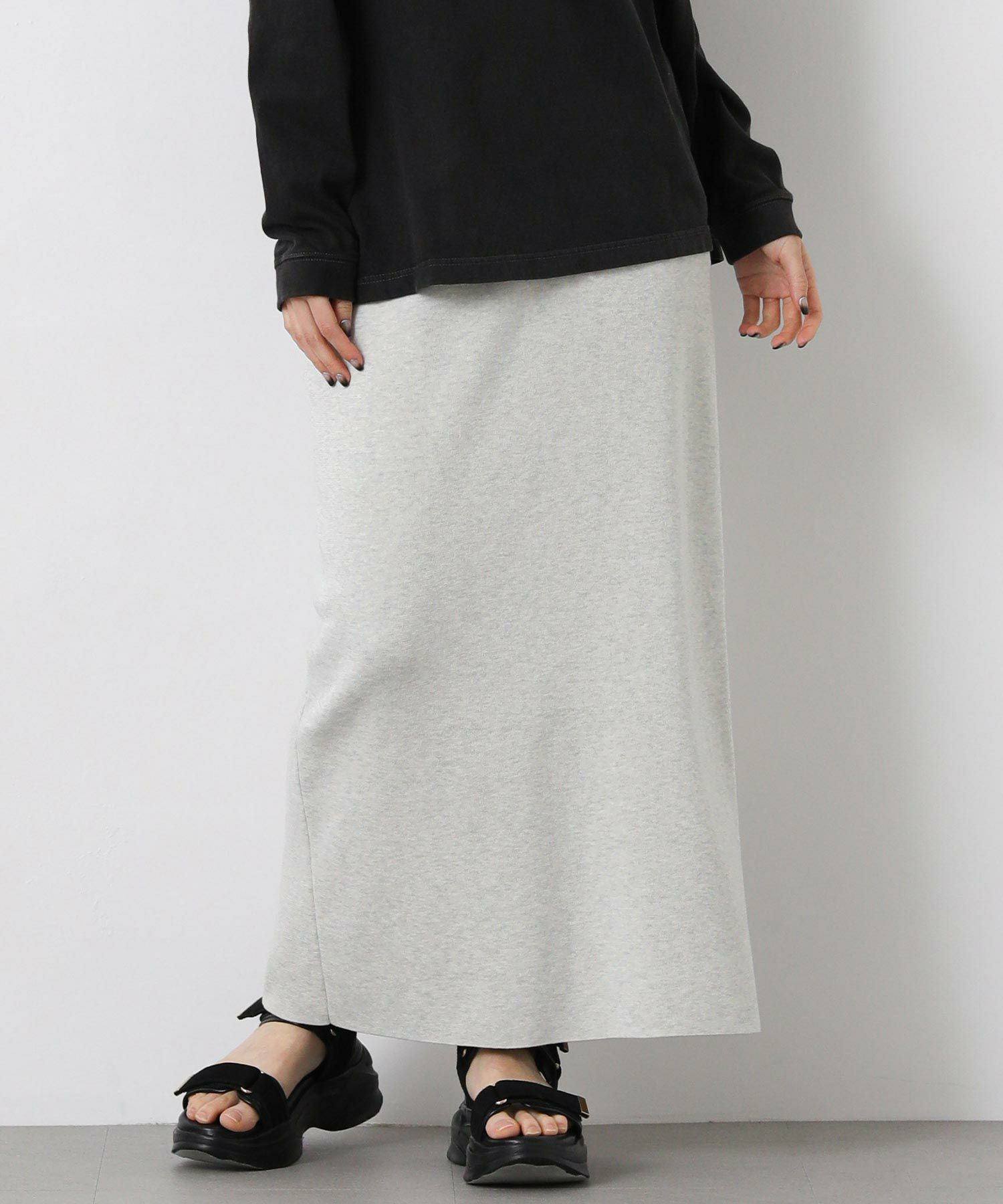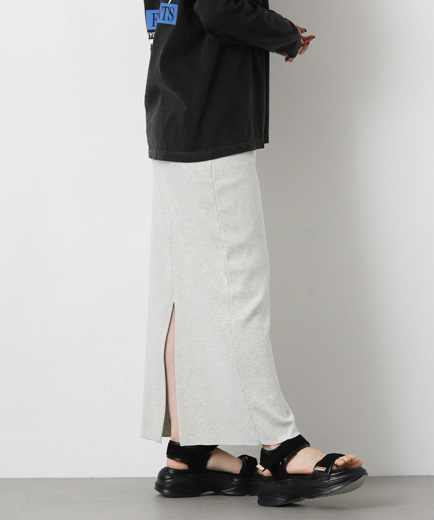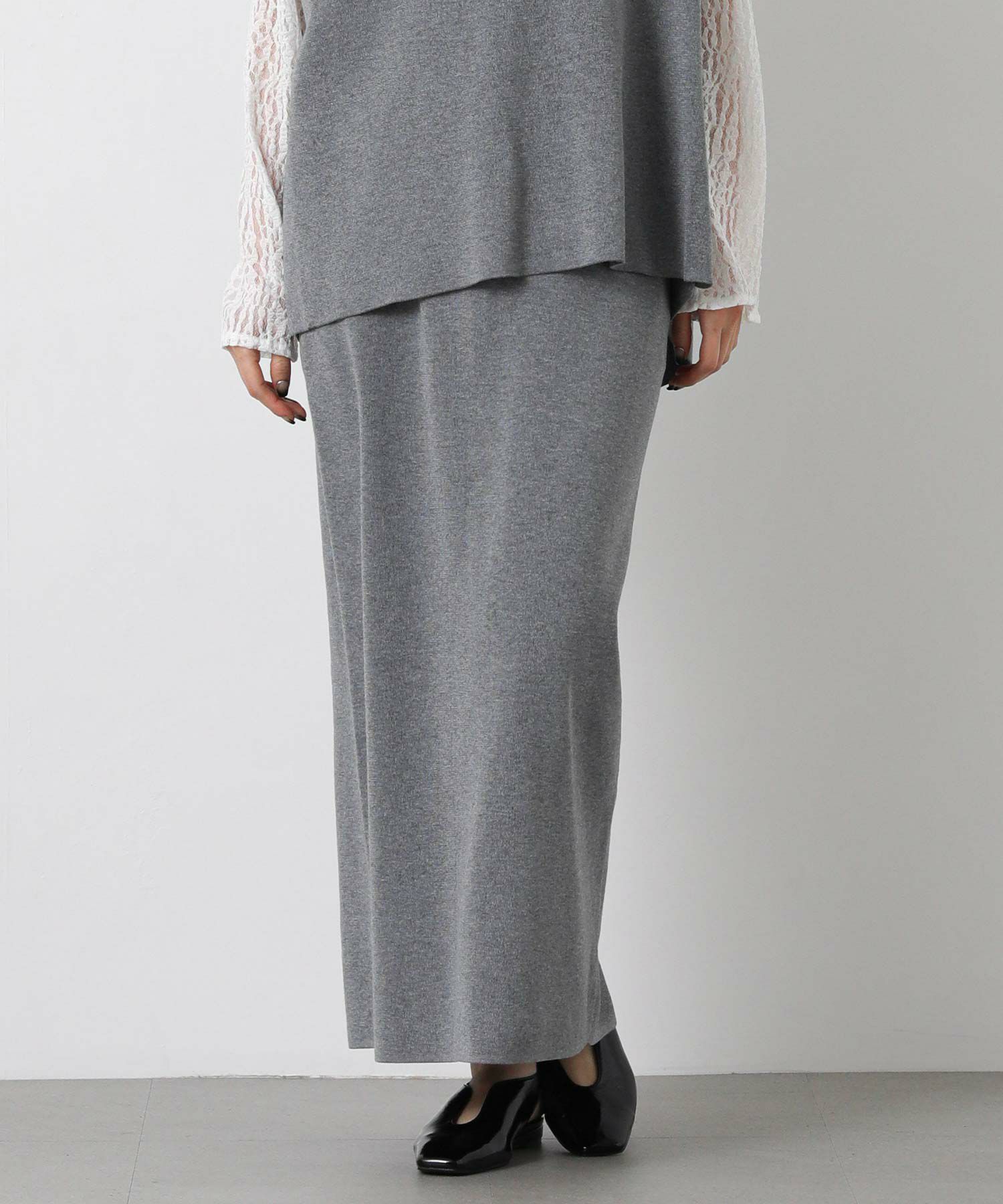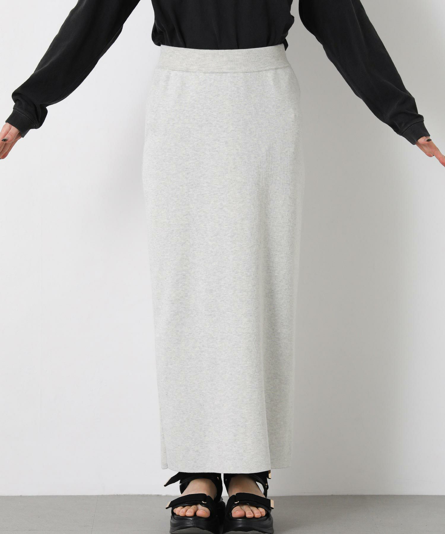 さりげない光沢感のあるサラっとした着心地の糸を使用したタイトスカート。