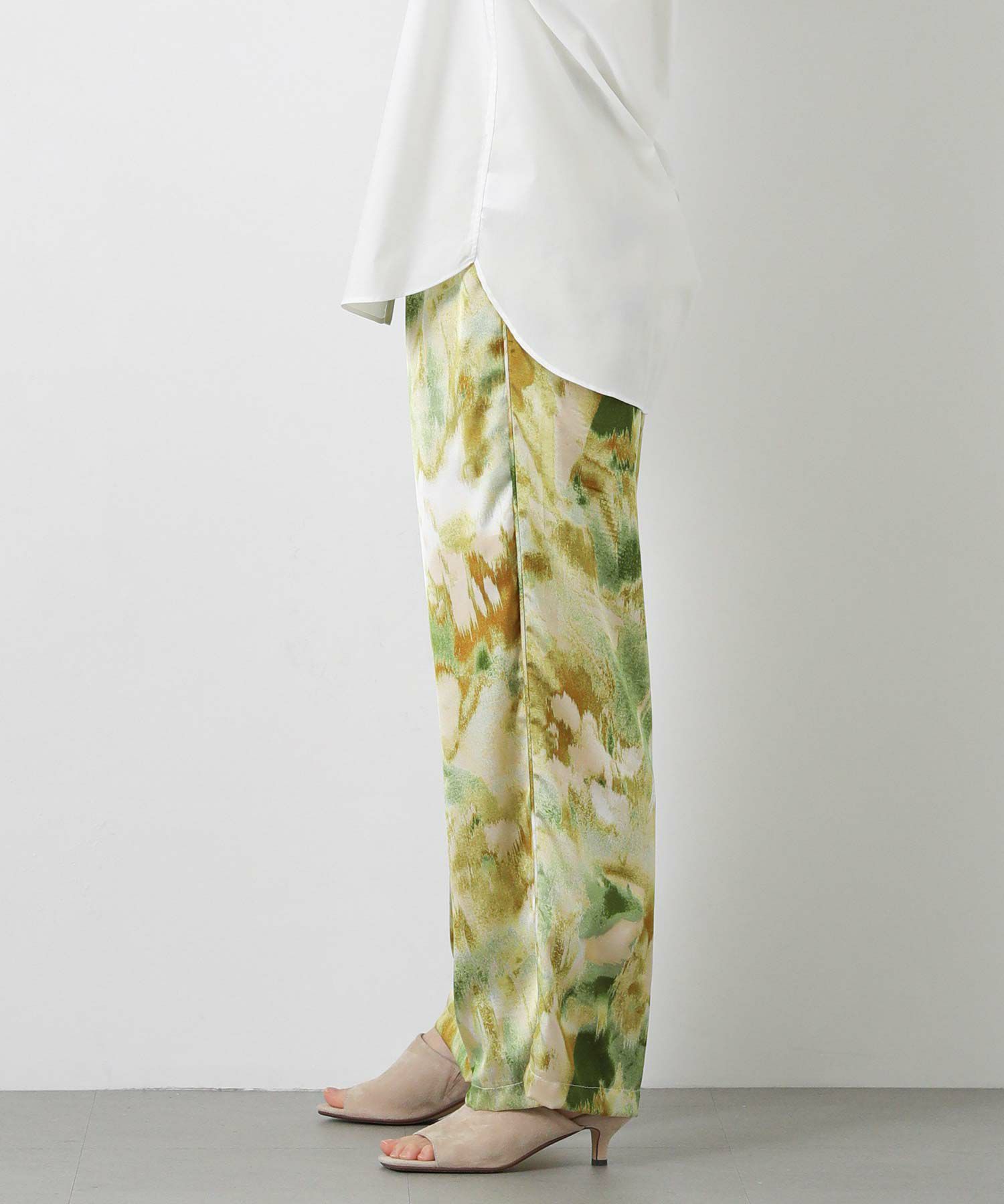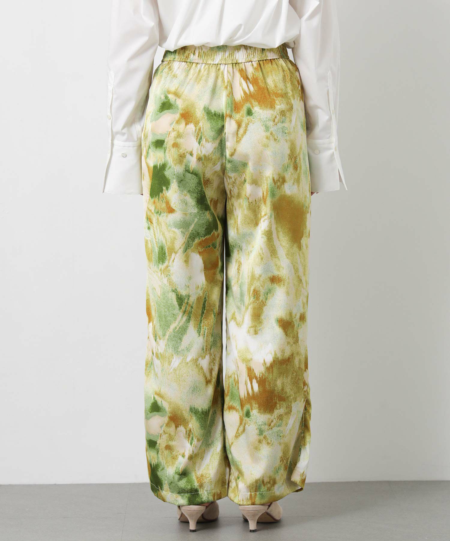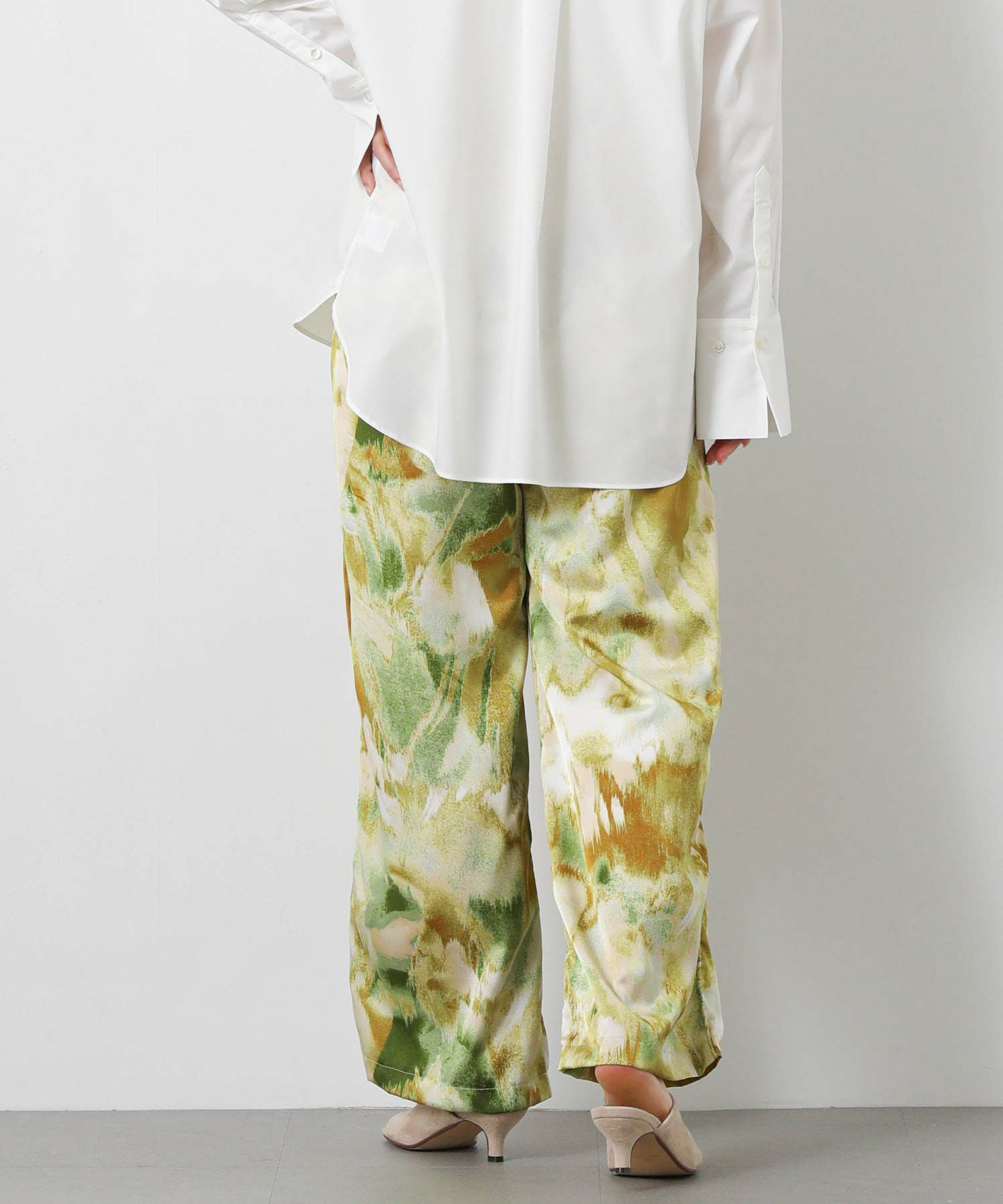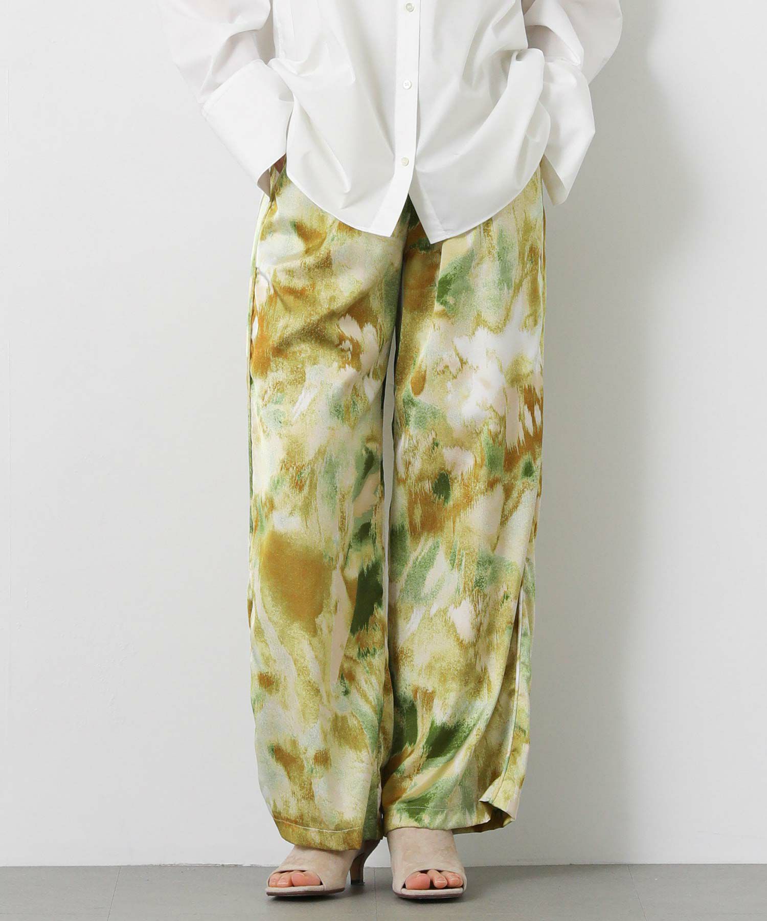 取り入れるだけでコーディネートのアクセントになる、ぼかし柄のプリントパンツ。