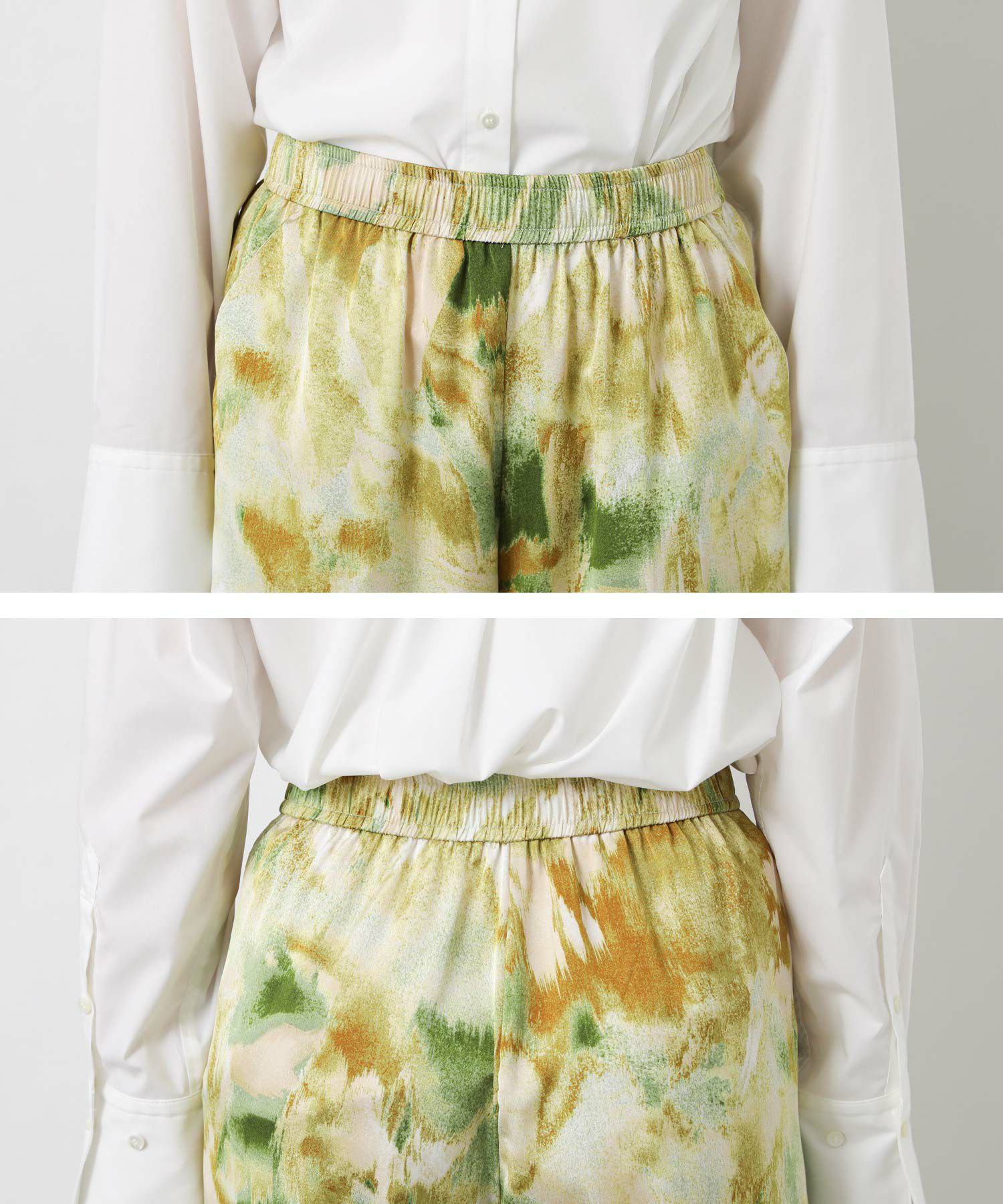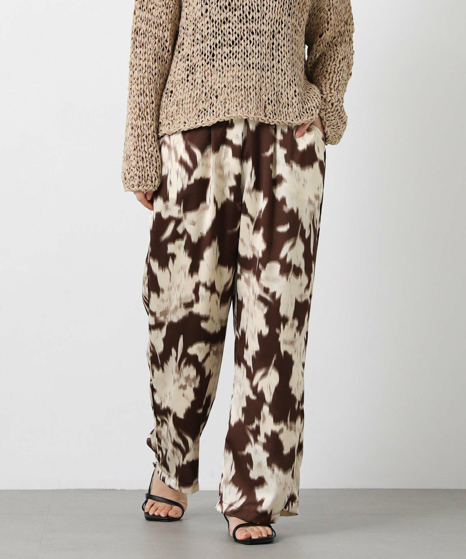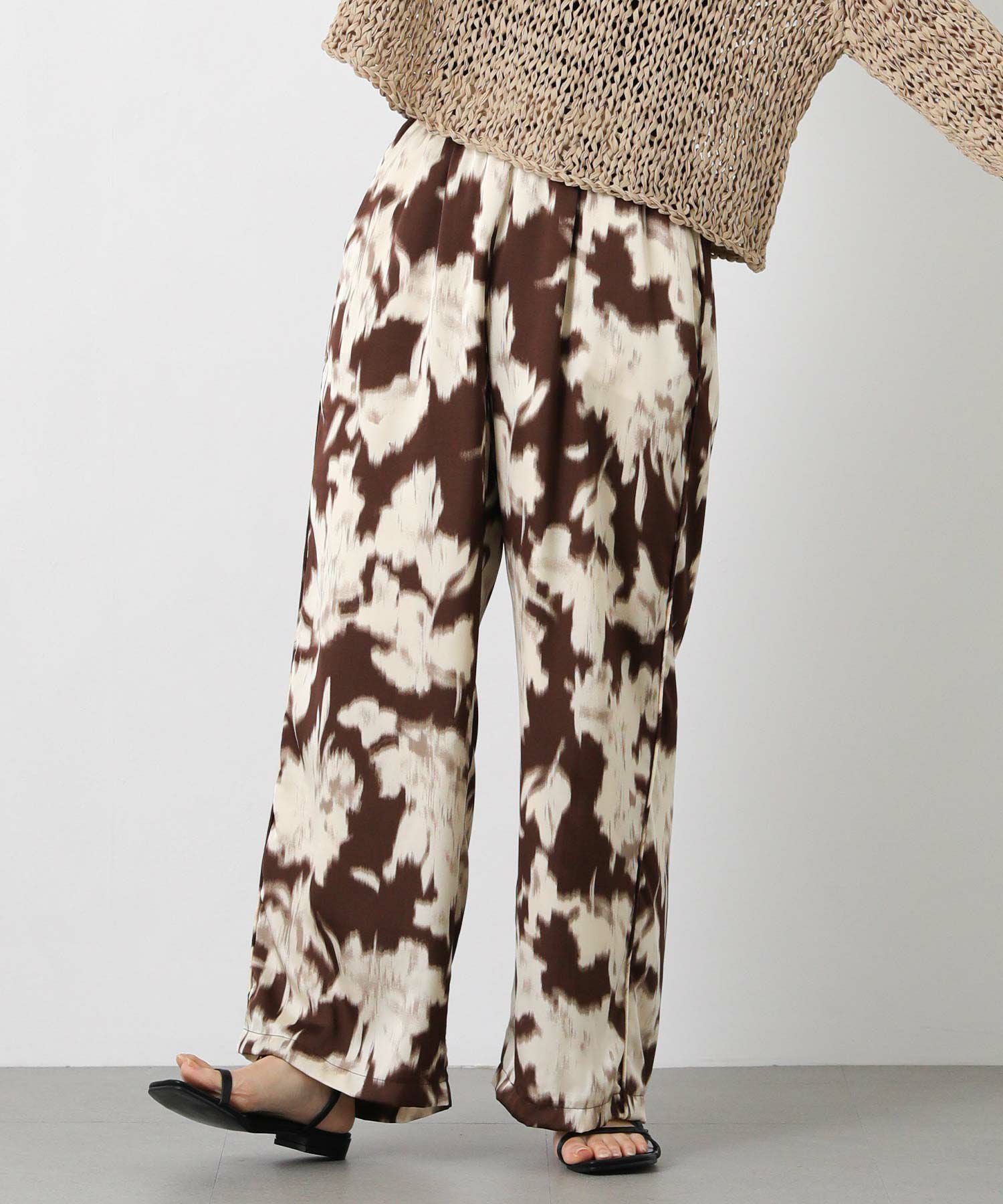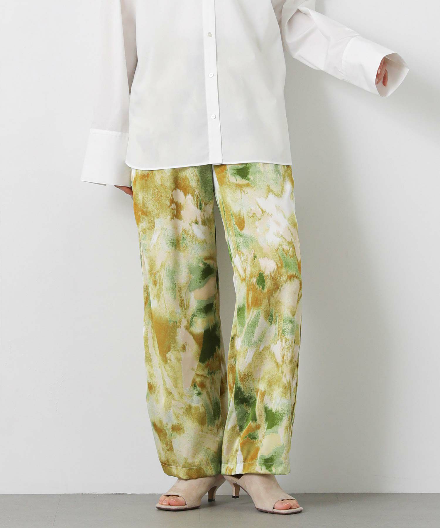 取り入れるだけでコーディネートのアクセントになる、ぼかし柄のプリントパンツ。