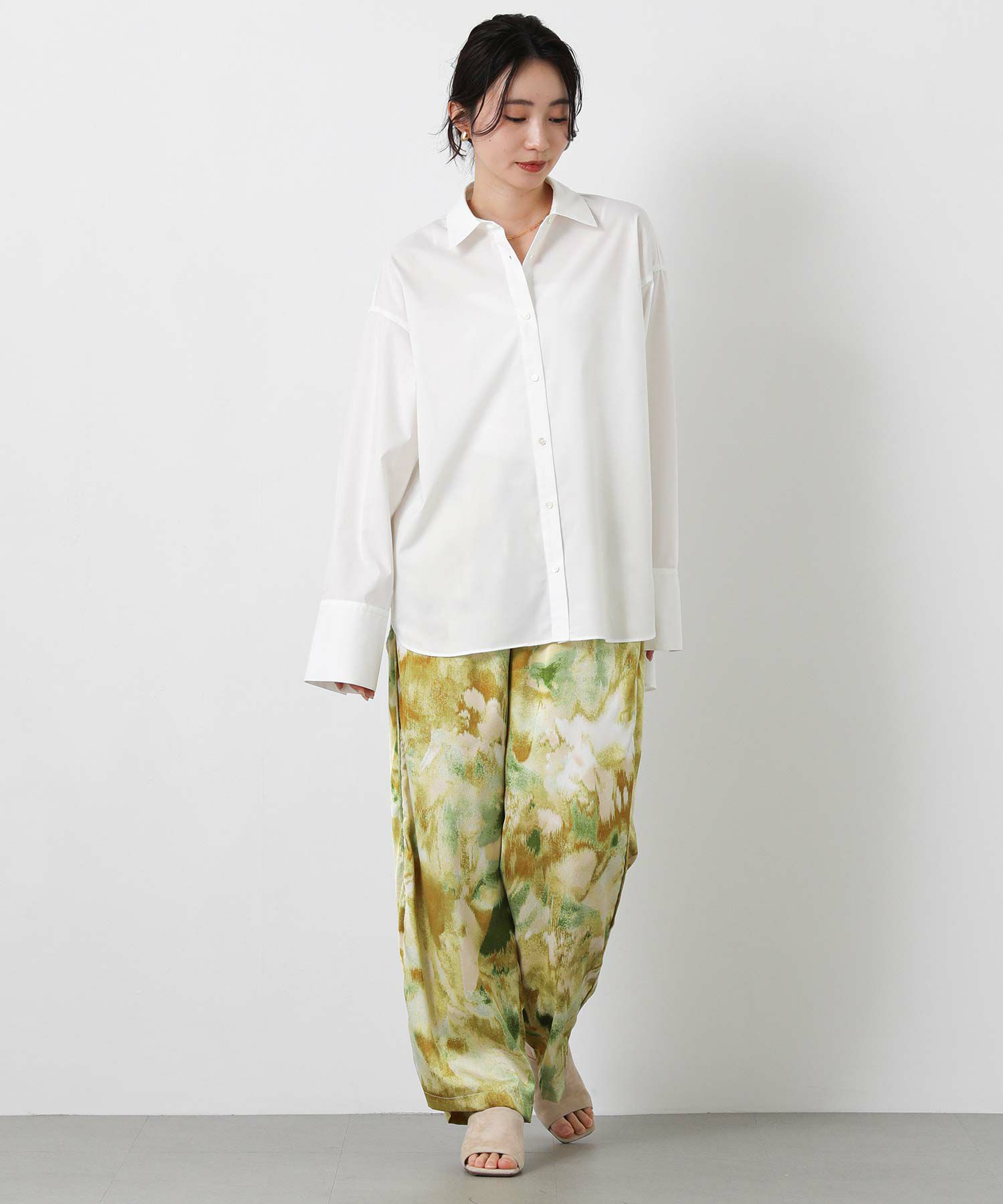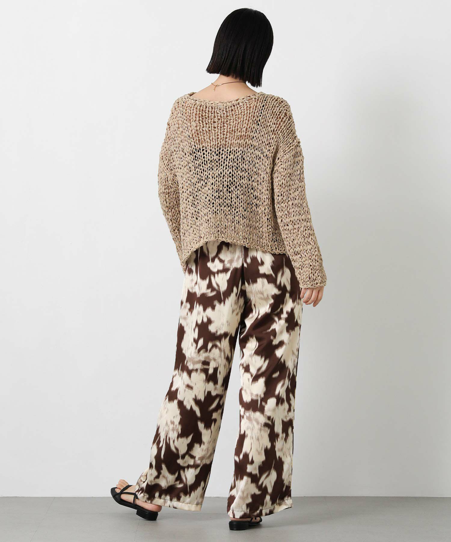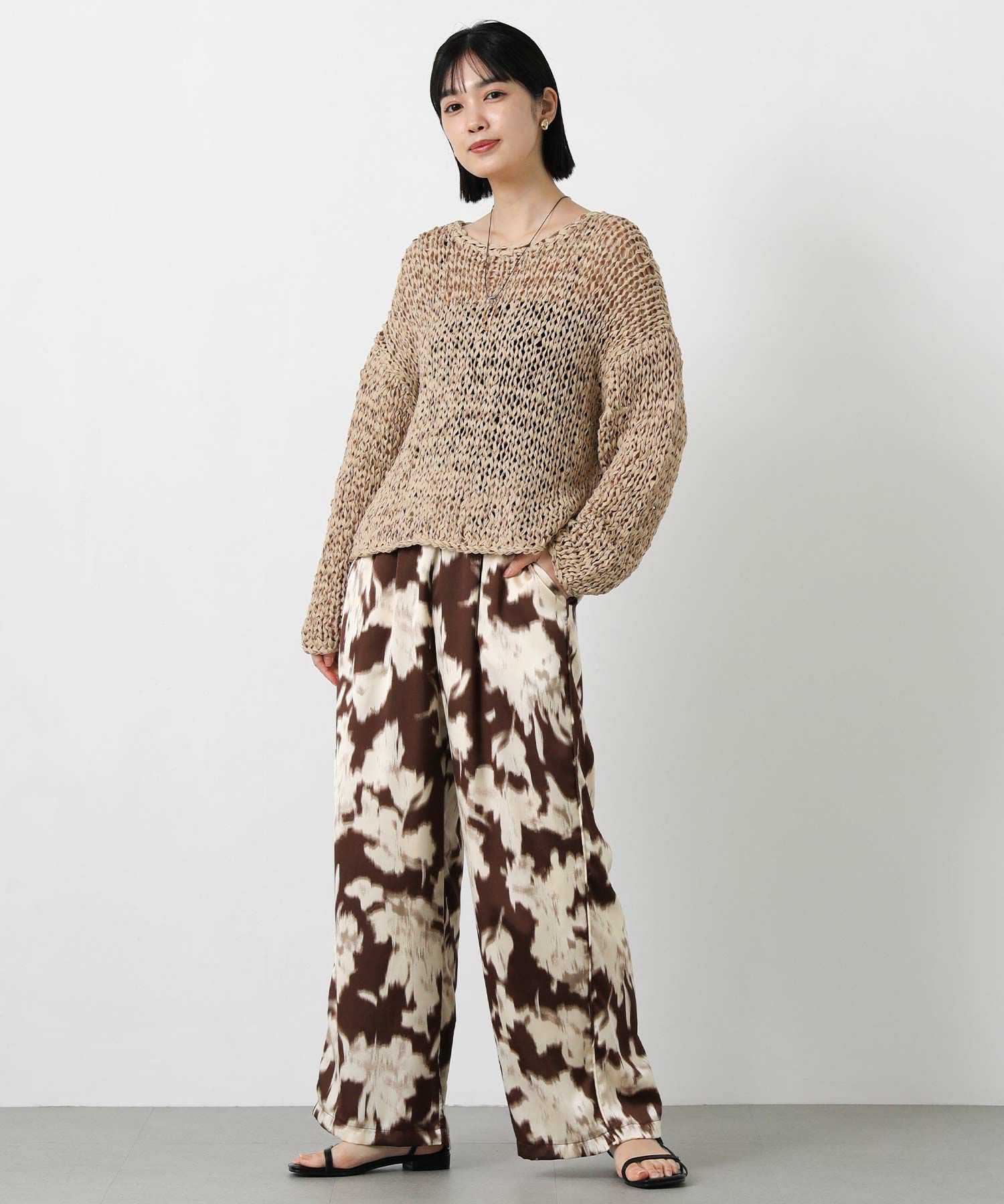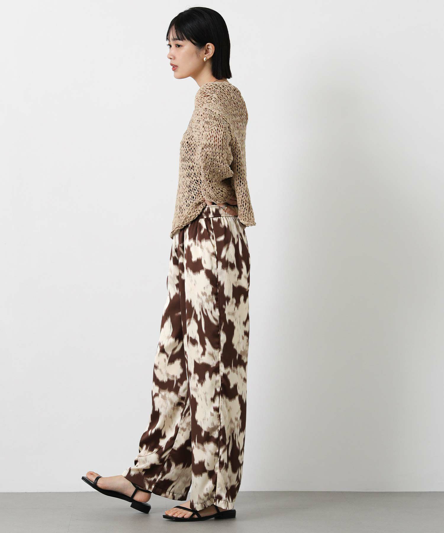 取り入れるだけでコーディネートのアクセントになる、ぼかし柄のプリントパンツ。