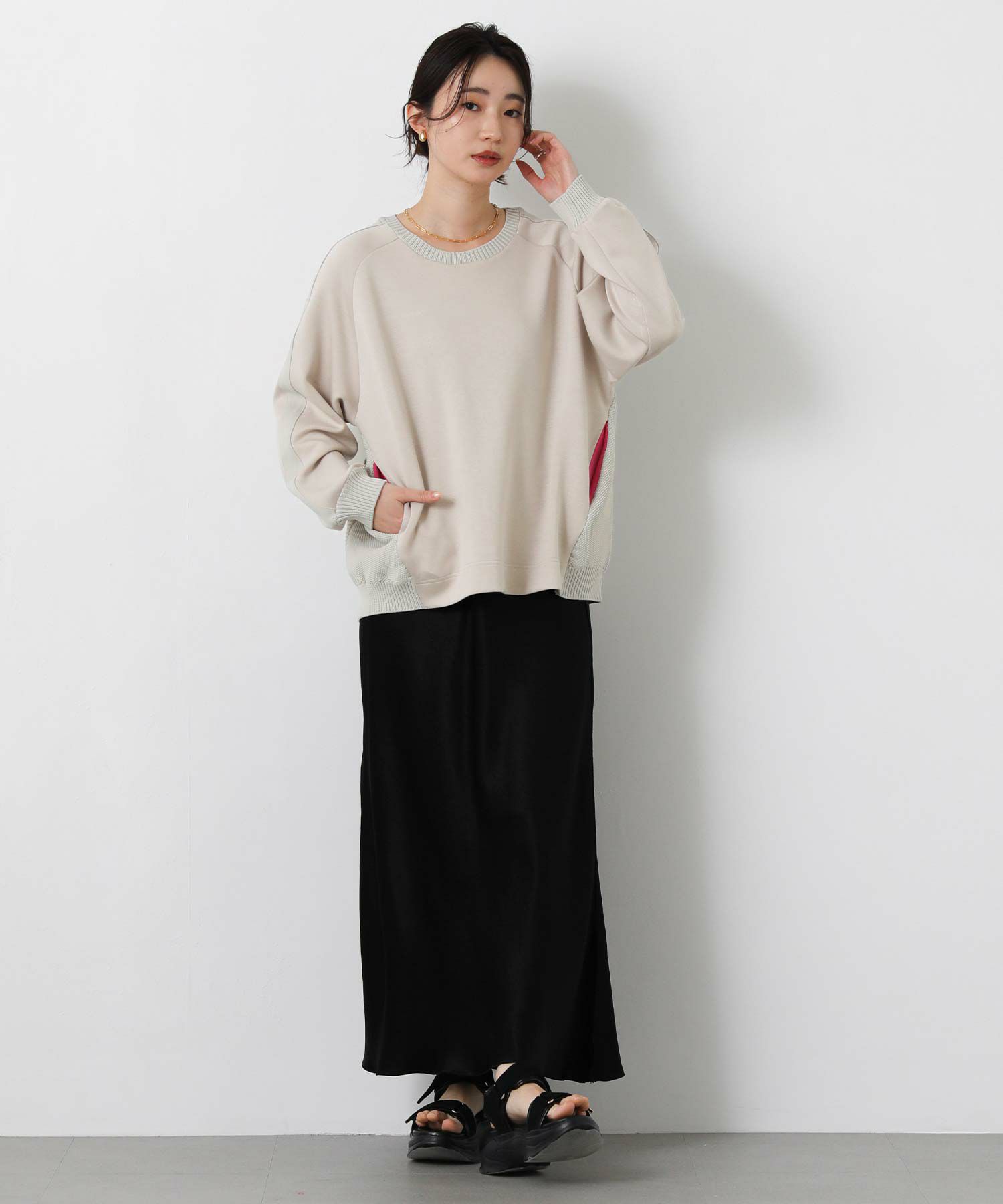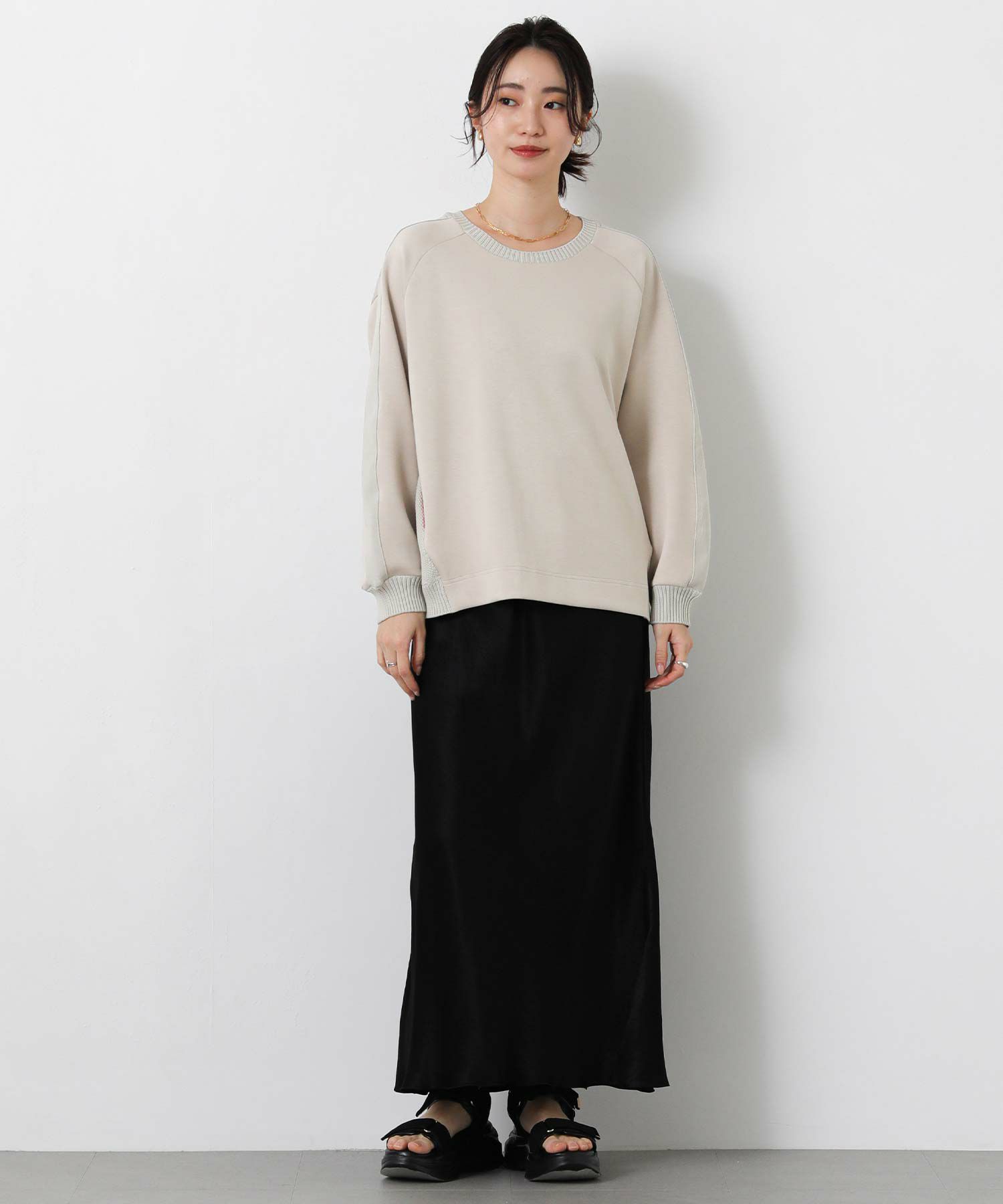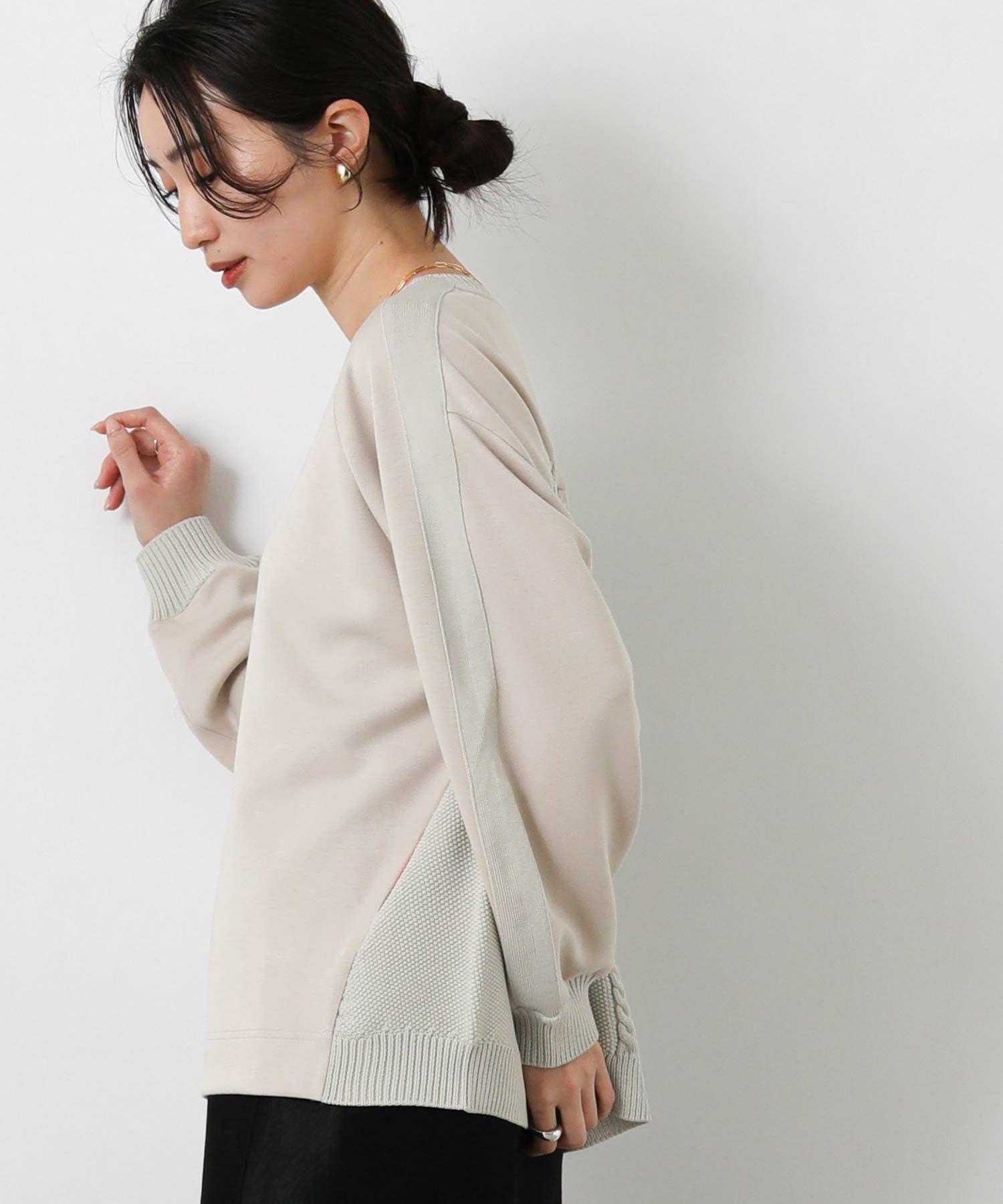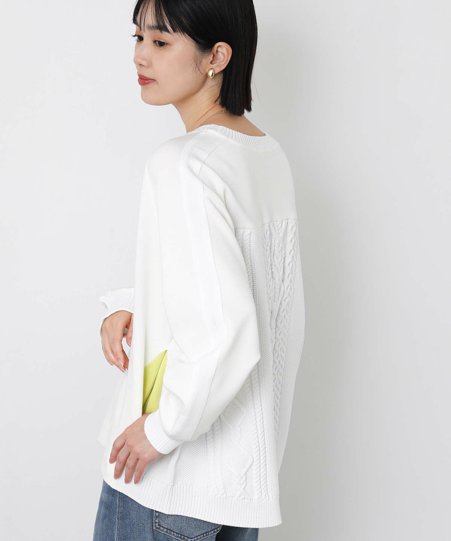 ケーブルニットとカットソーをドッキングしたプルオーバー。