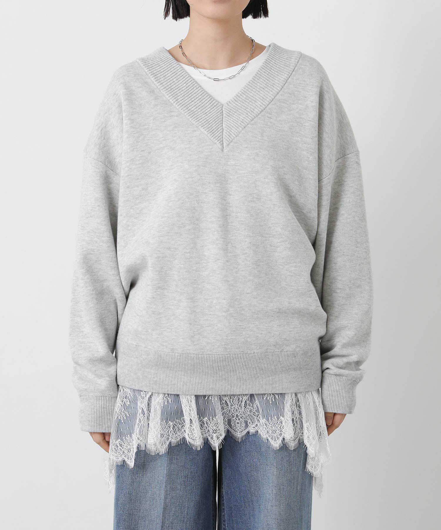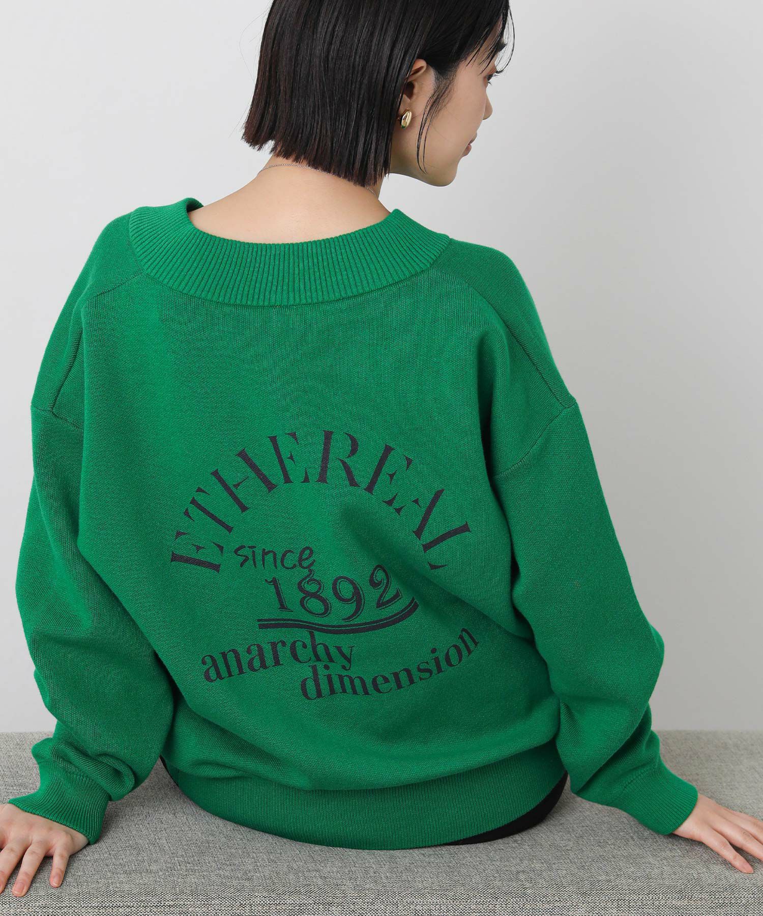 ダブルフェイスバックロゴVネックニット