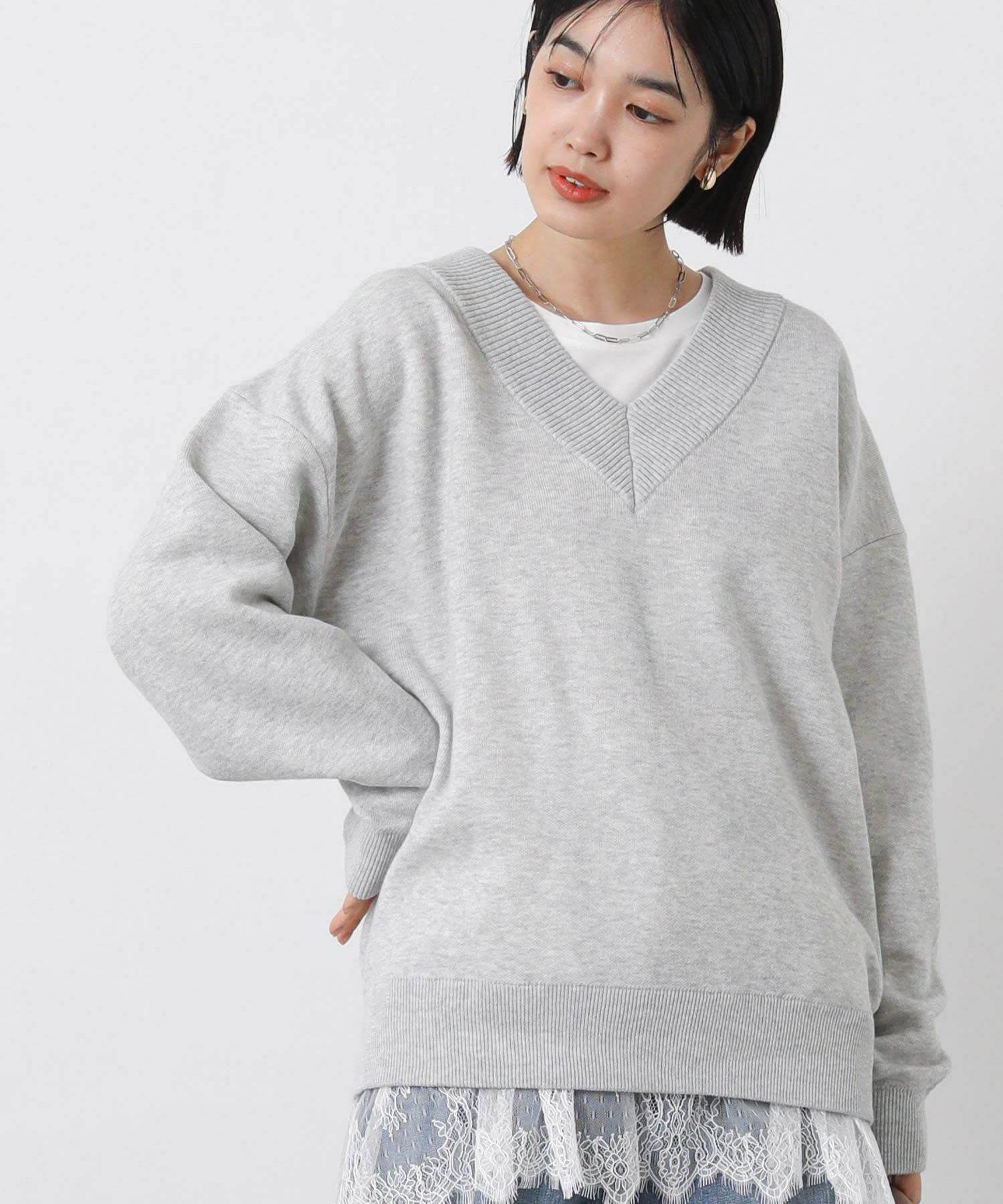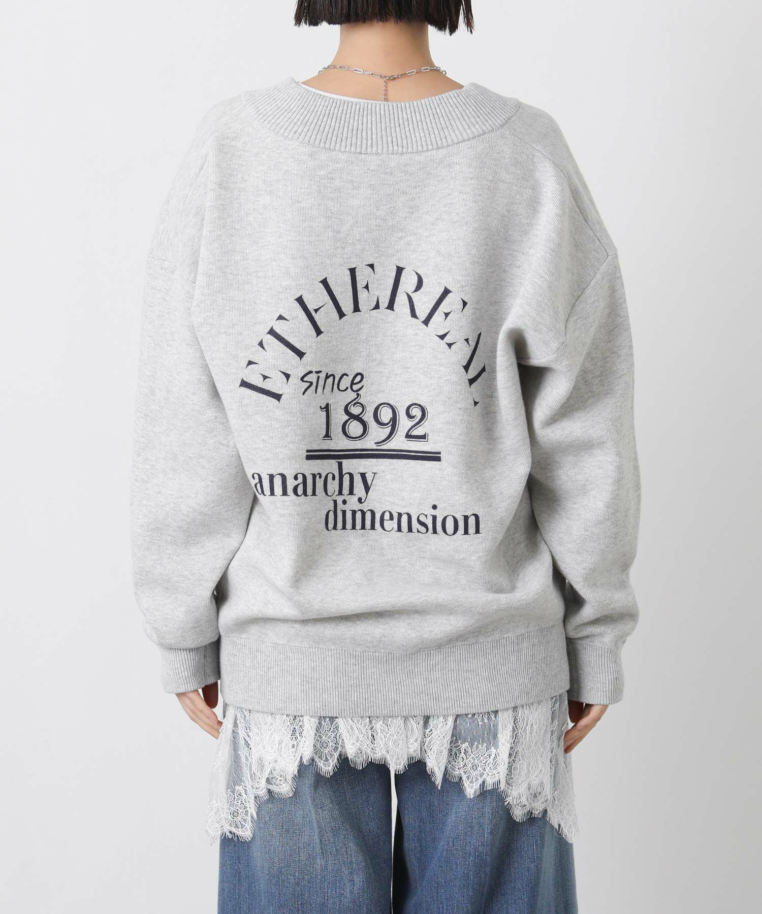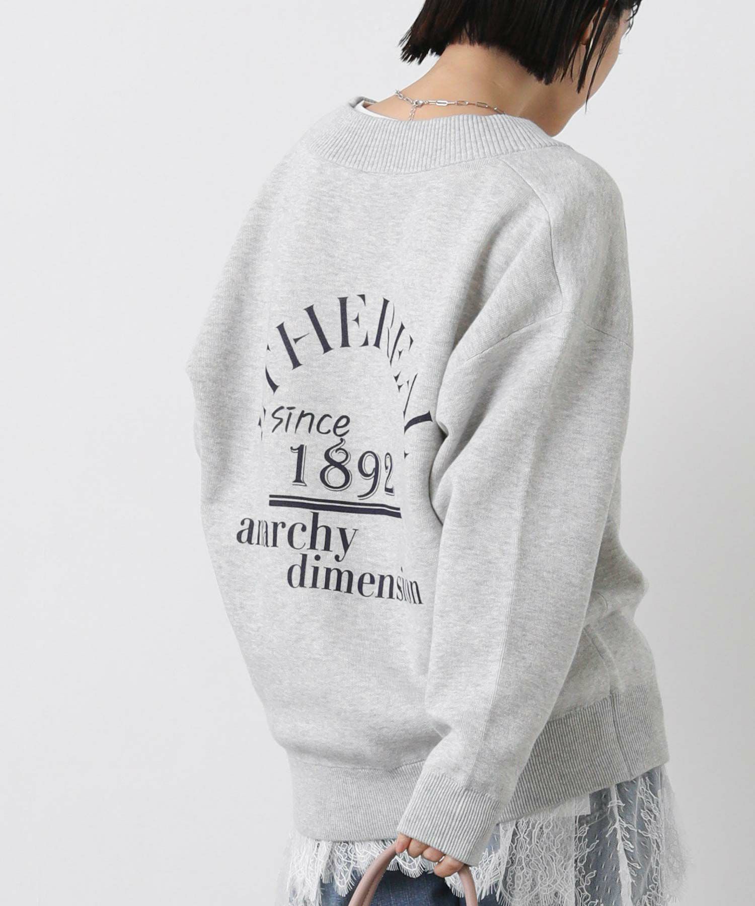 インパクトのある太めリブのVネックとバックプリントで存在感があり、程よくカジュアルに着こなせます。
