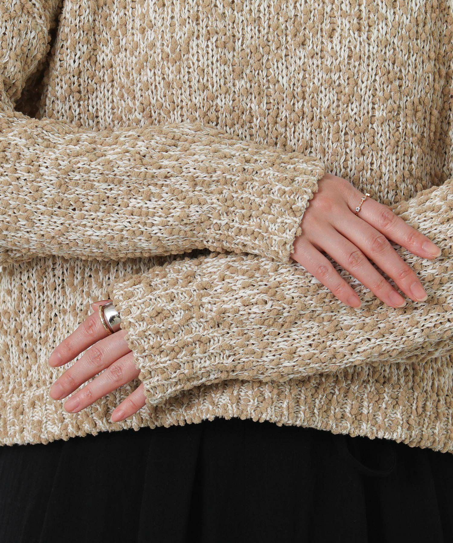 ポコポコな表面感がお洒落度をアップしてくれるニット。