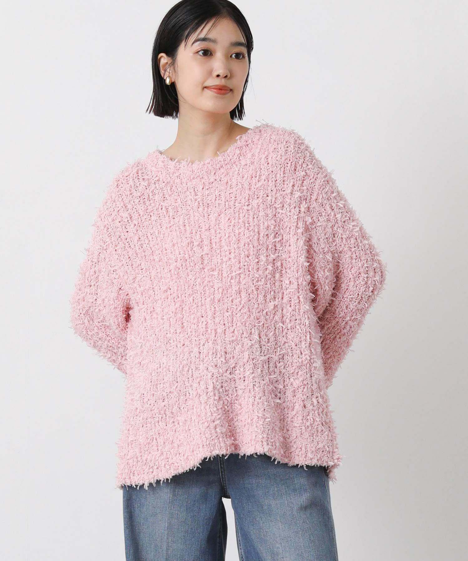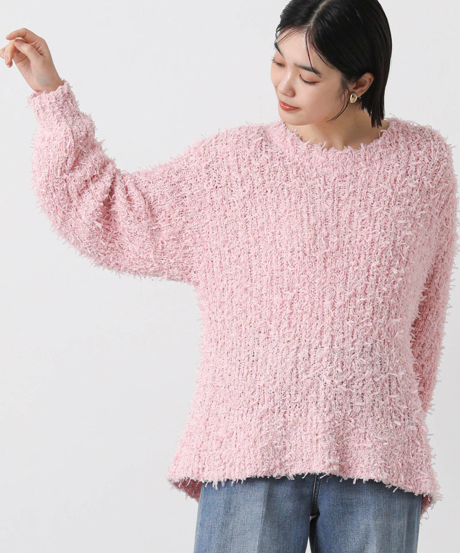 メッシュ編みのほのかな透け感が軽やかな印象の、今すぐ着れる春ニットです。