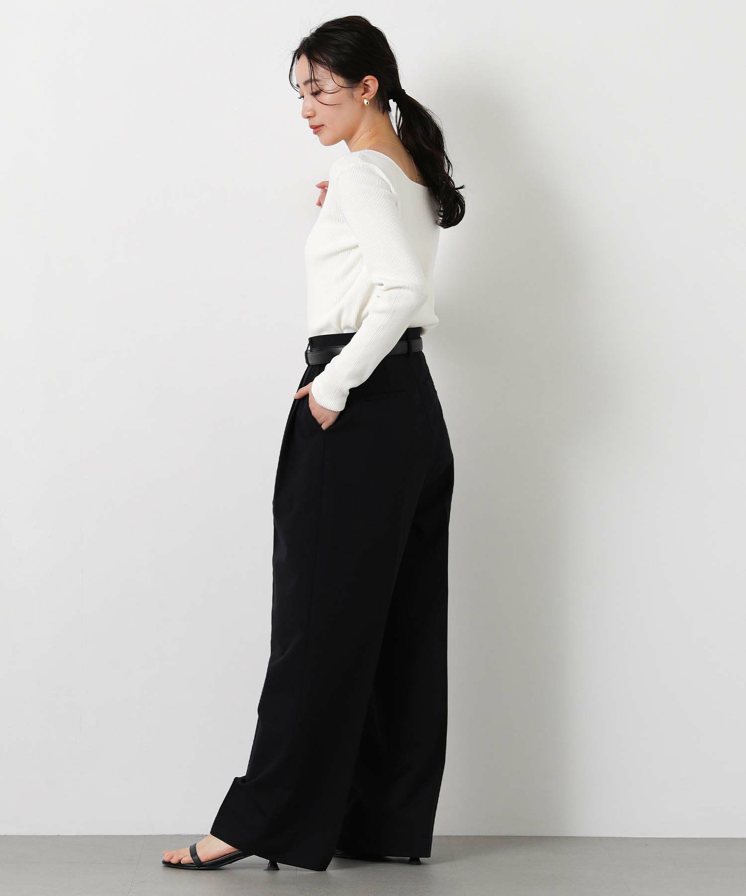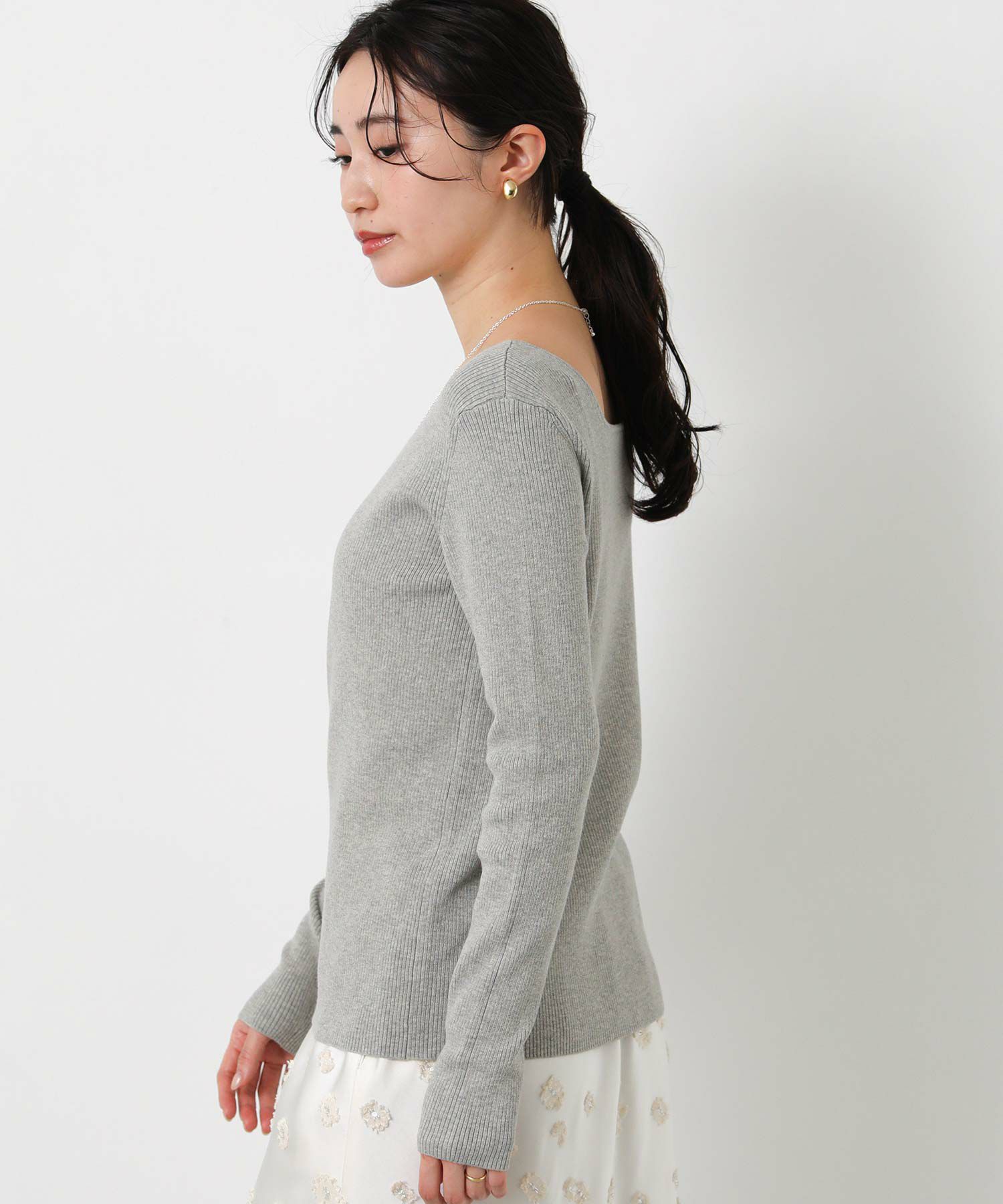 ベーシックなクルーネック、ヘルシー見えするスクエアネックの両方を楽しめる前後2way仕様。