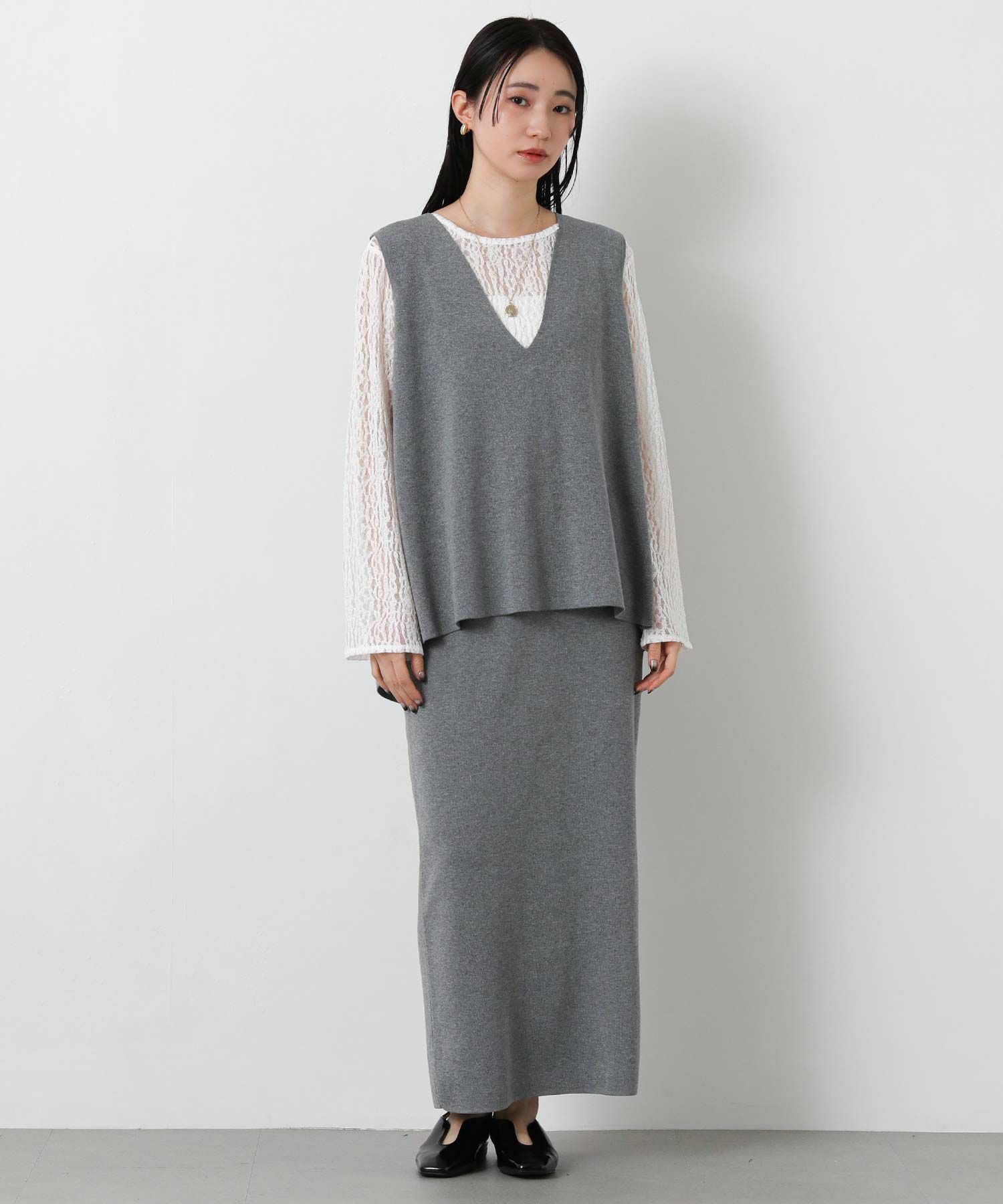 バックスリットが入っているので、ボリュームのあるトップスともレイヤードしやすいデザイン。