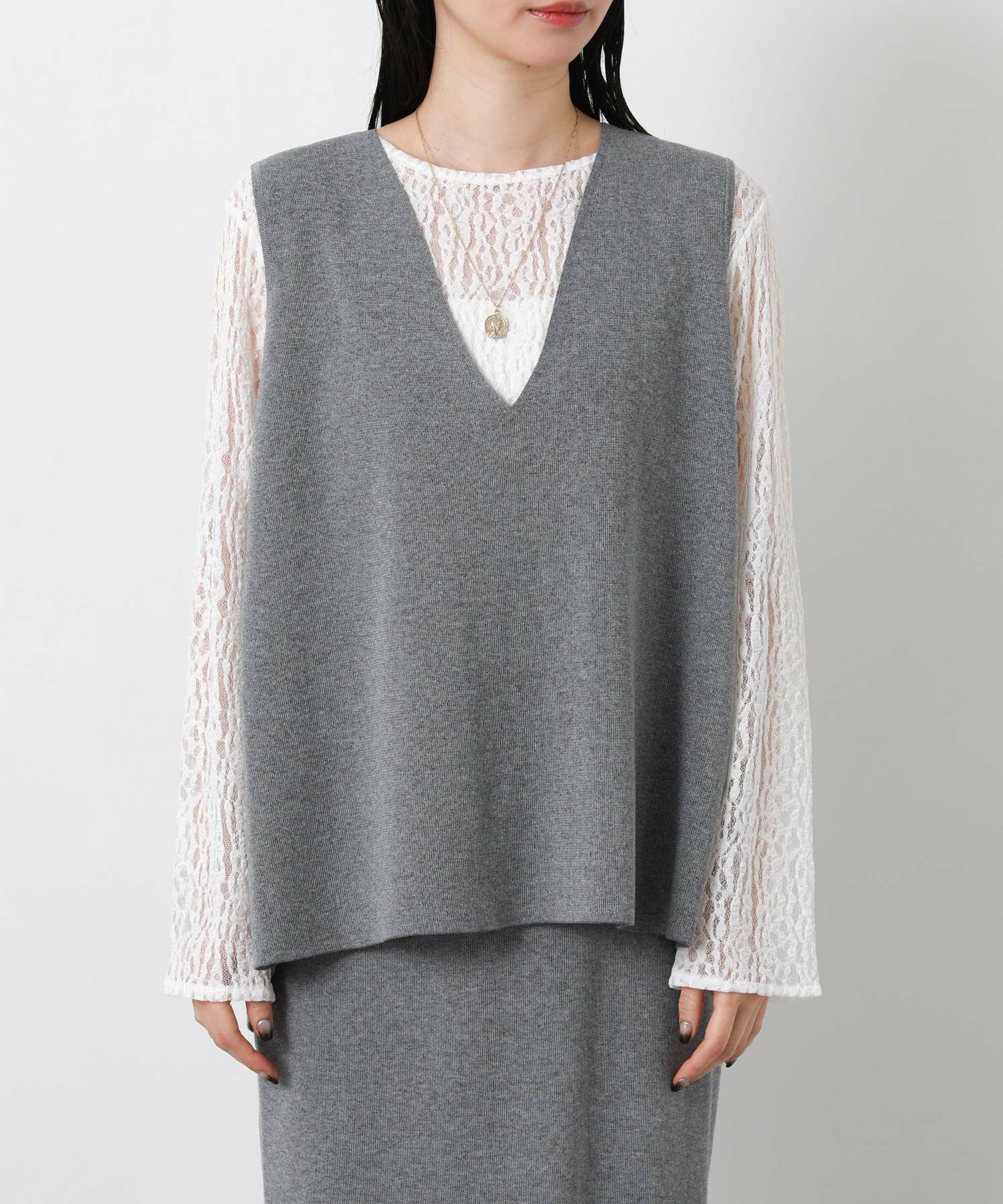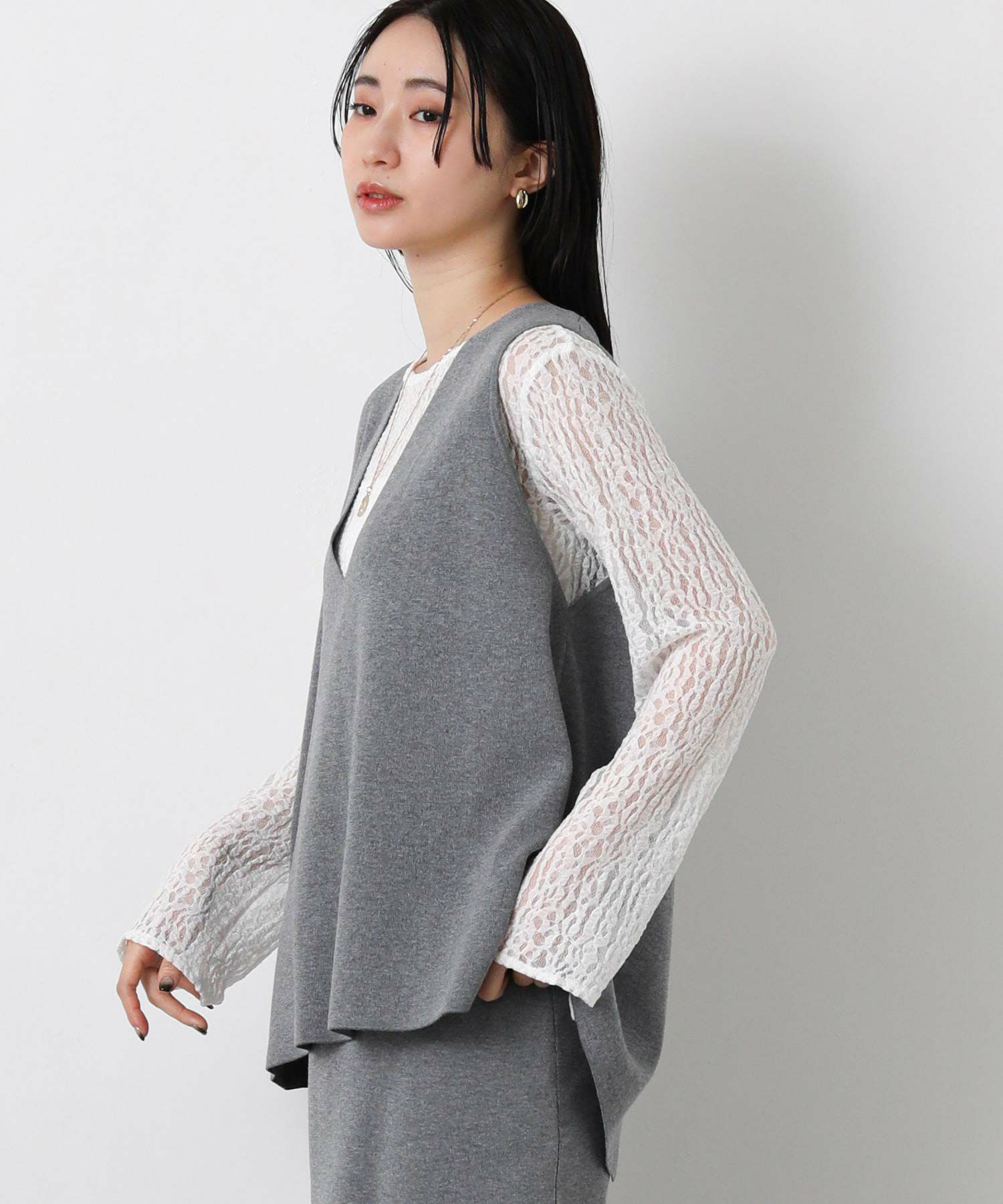 深めのVネックが顔周りをスッキリと見せてくれます。