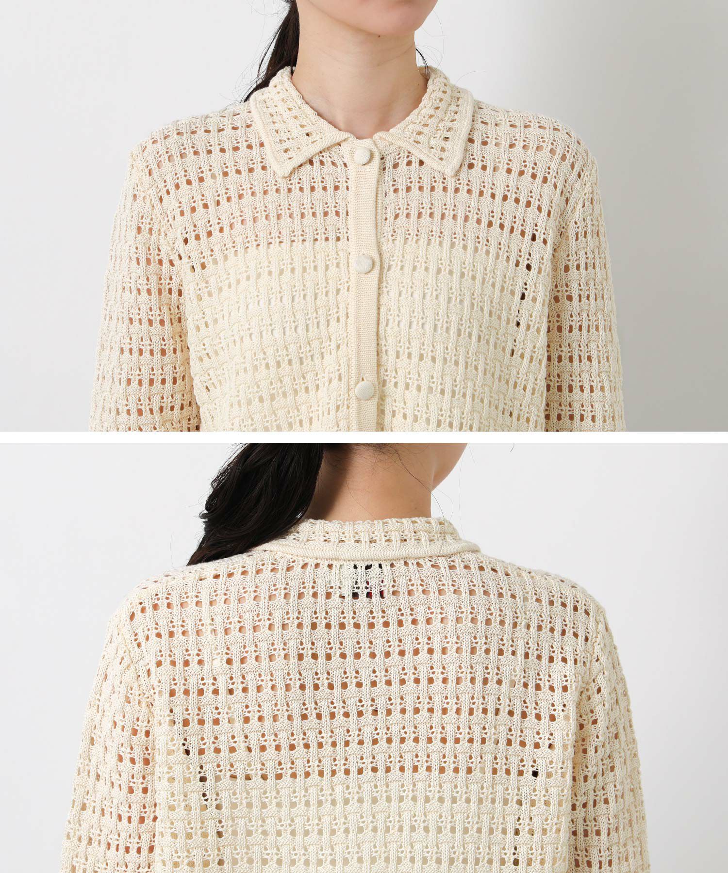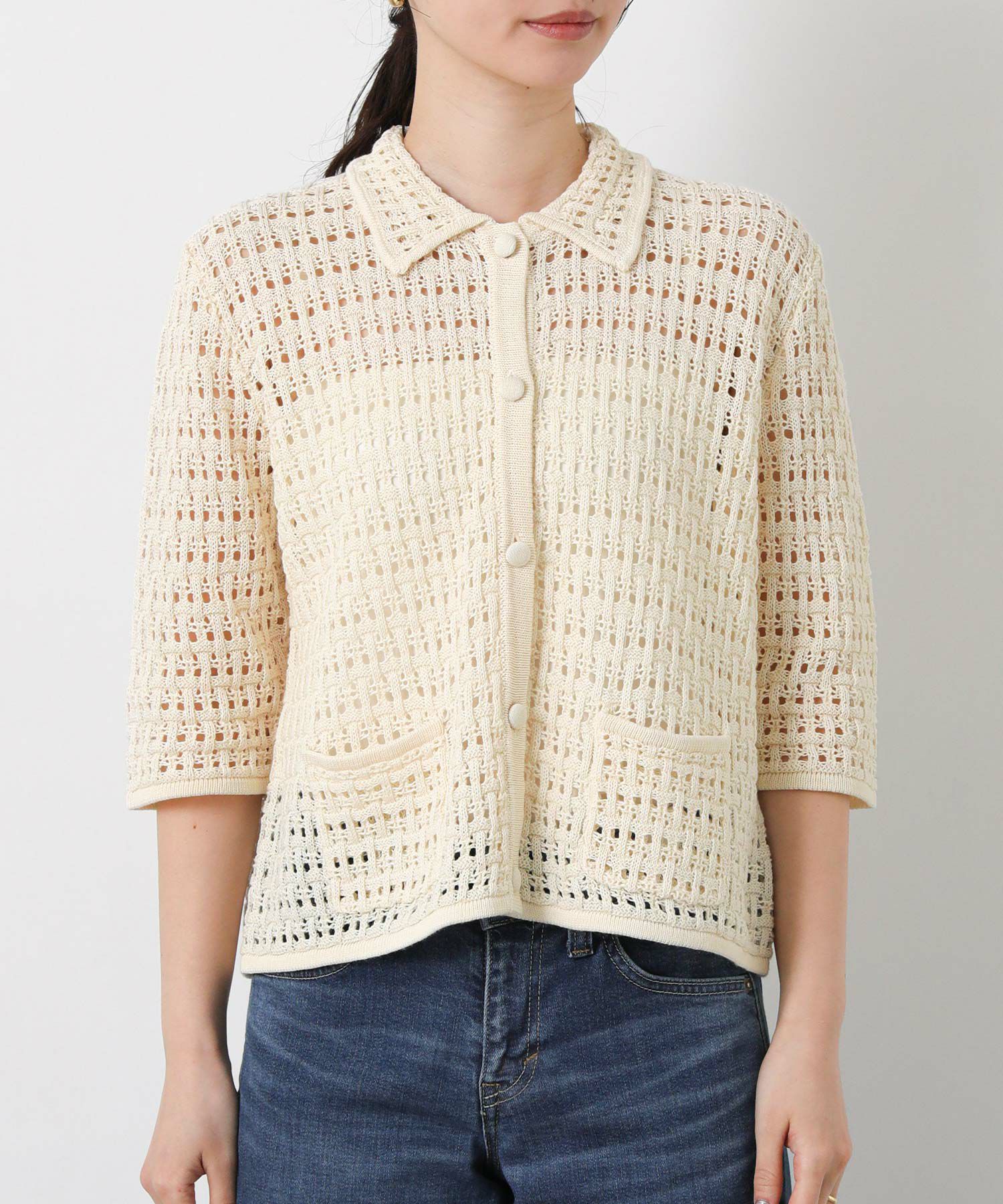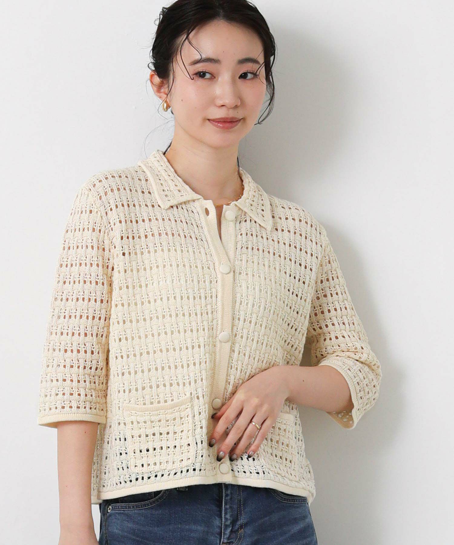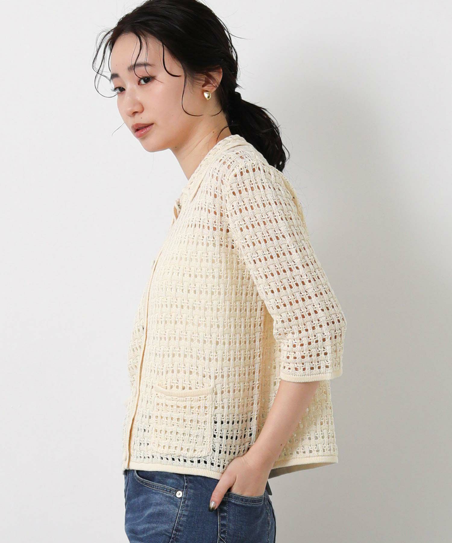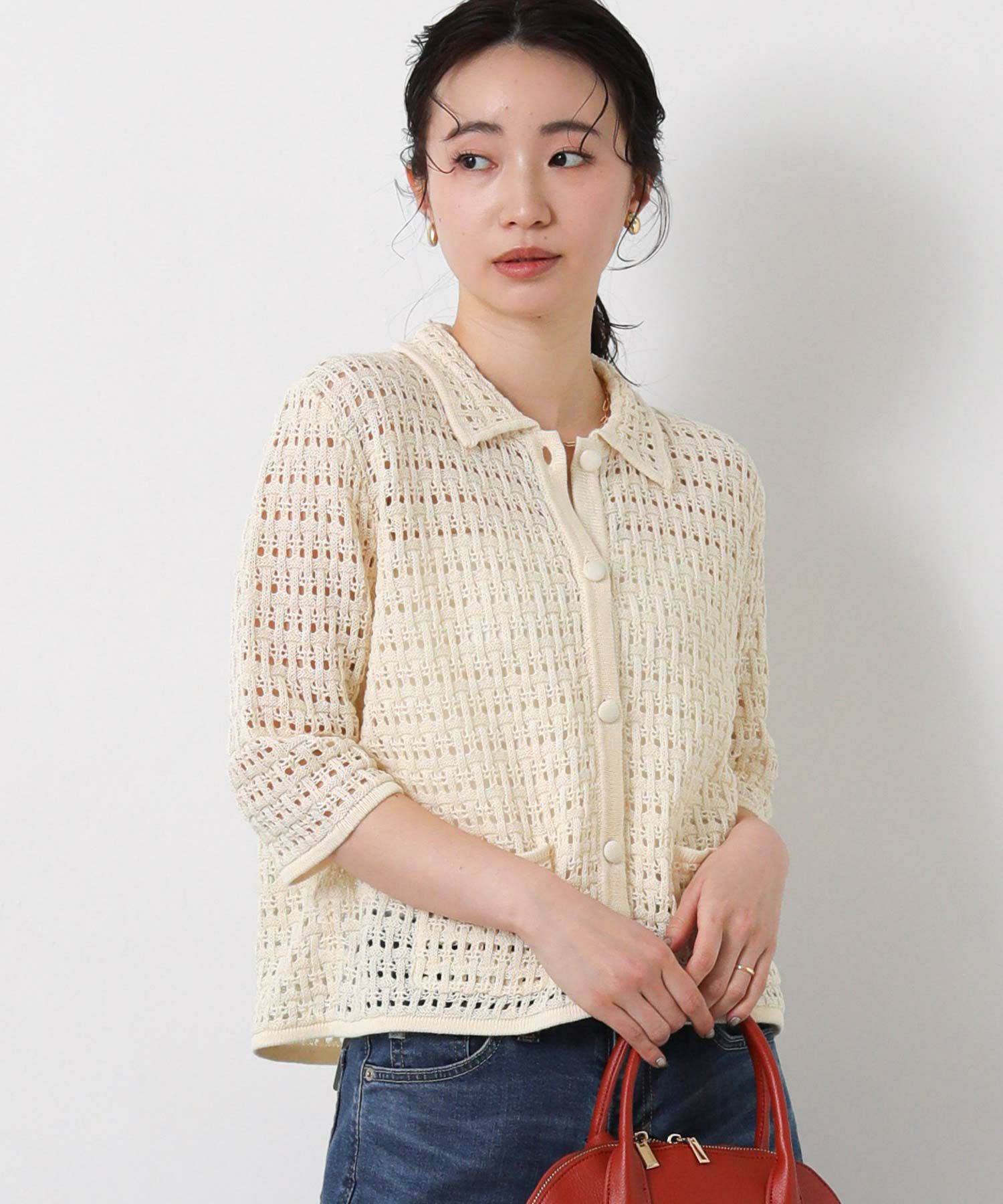 【TraditionalWeatherwear(トラディショナルウェザーウェア)】から、柔らかな印象を与える透かし編みポロニットをセレクト。