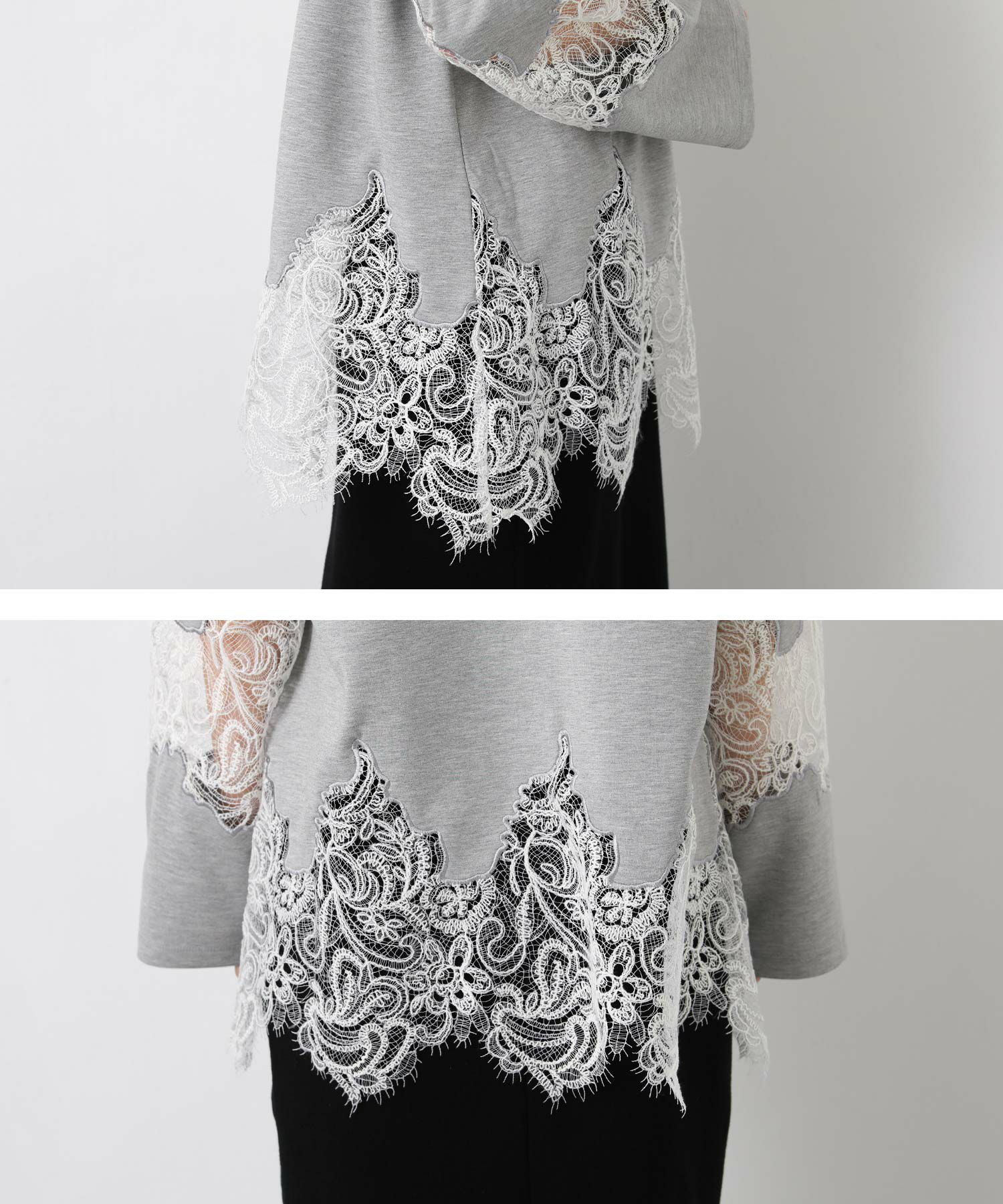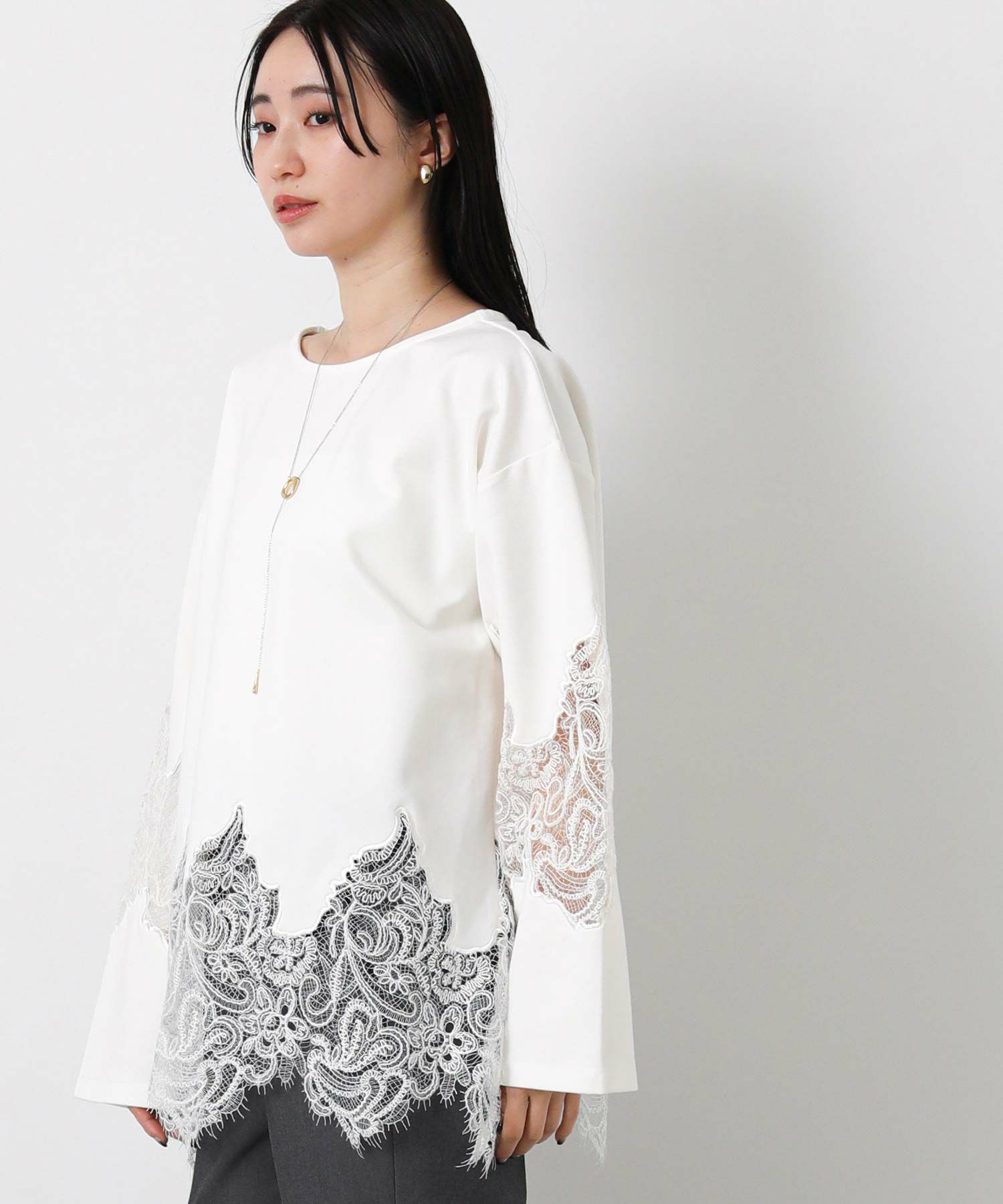 【WILLFULLY(ウィルフリー)】から、スカラップレースを裾と袖に配置したトップスをセレクト。