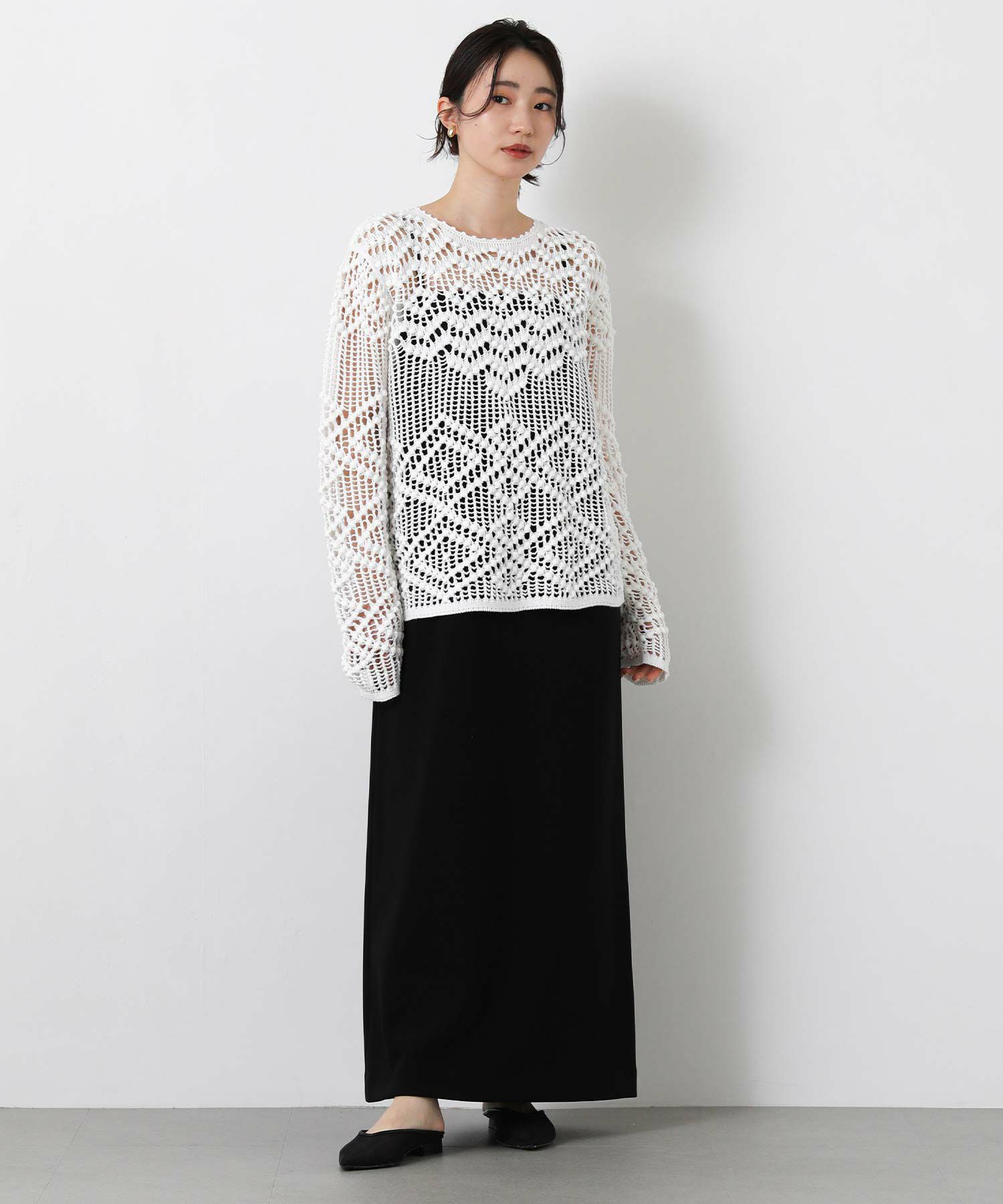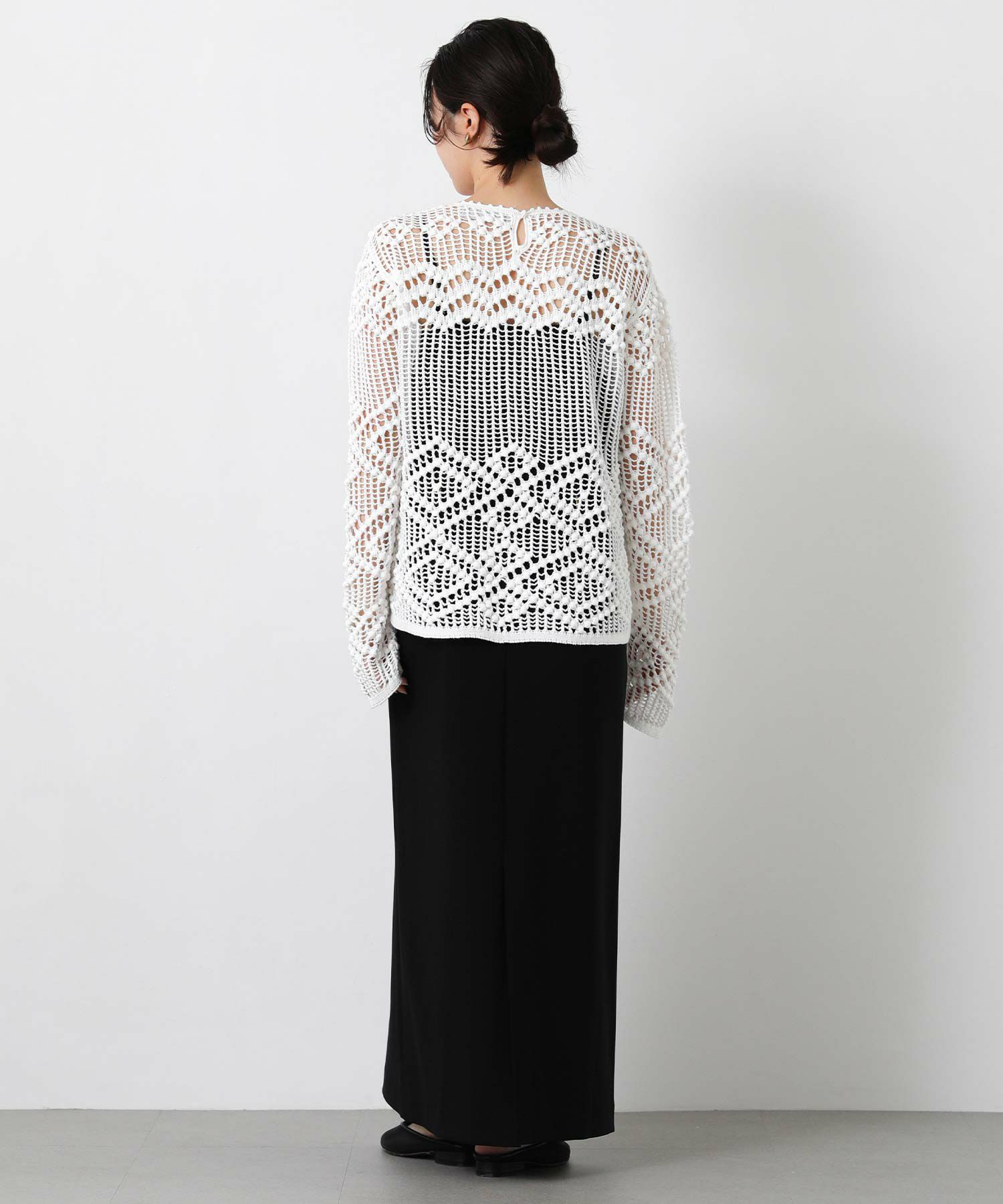 【IRONING(アイロニング)】から、繊細な柄にこだわったざっくり感が可愛いニットプルオーバーをセレクト。