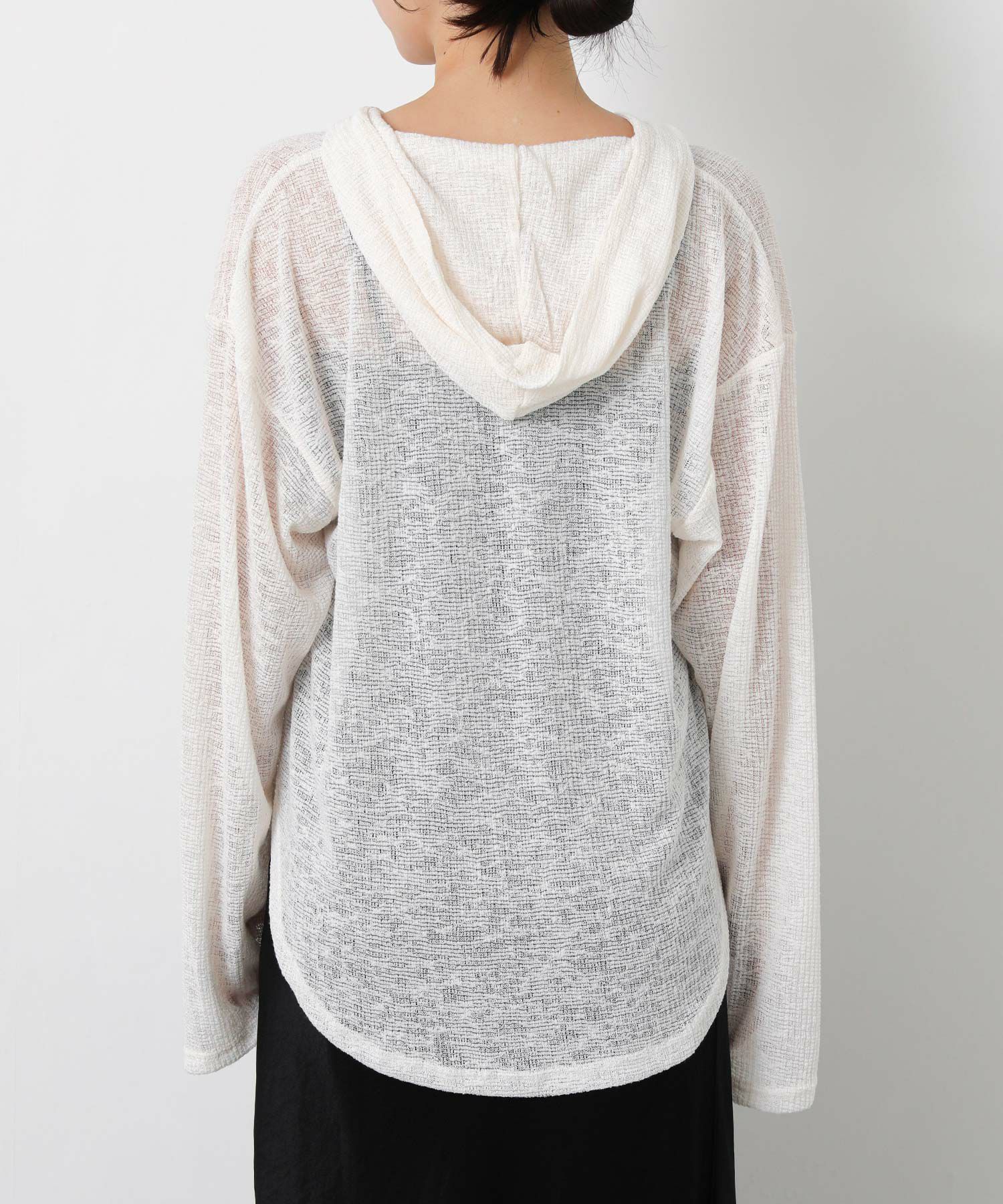 カジュアルな印象のフーディーを、ほんのりシアーな軽やかなカットソーでこなれ感のある1枚に。