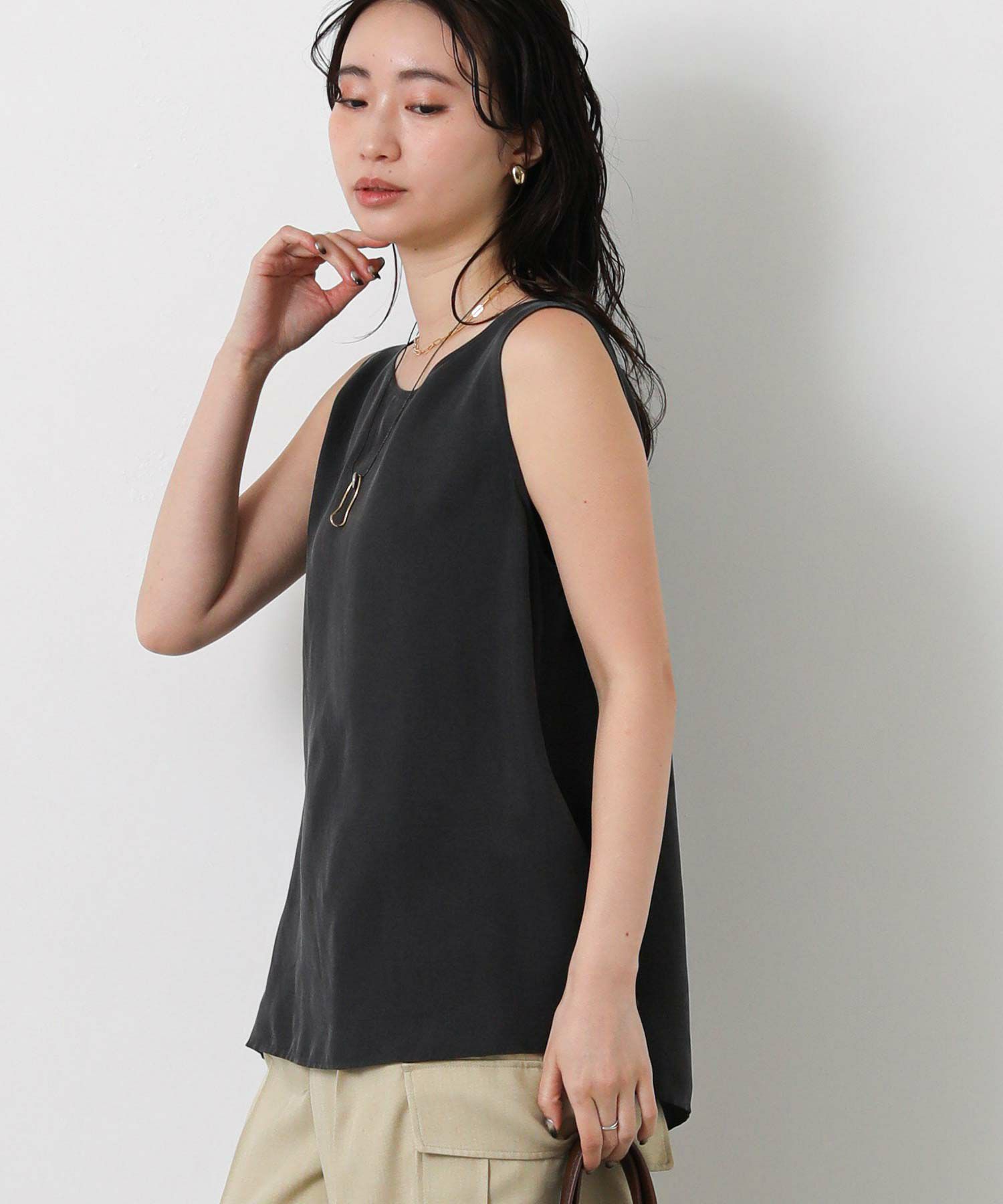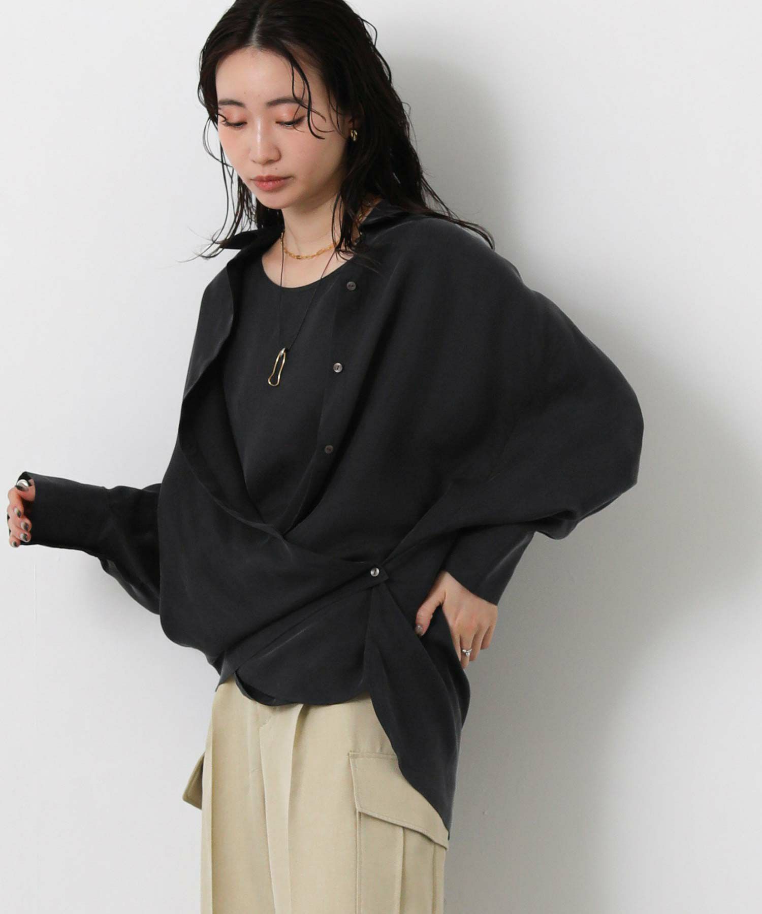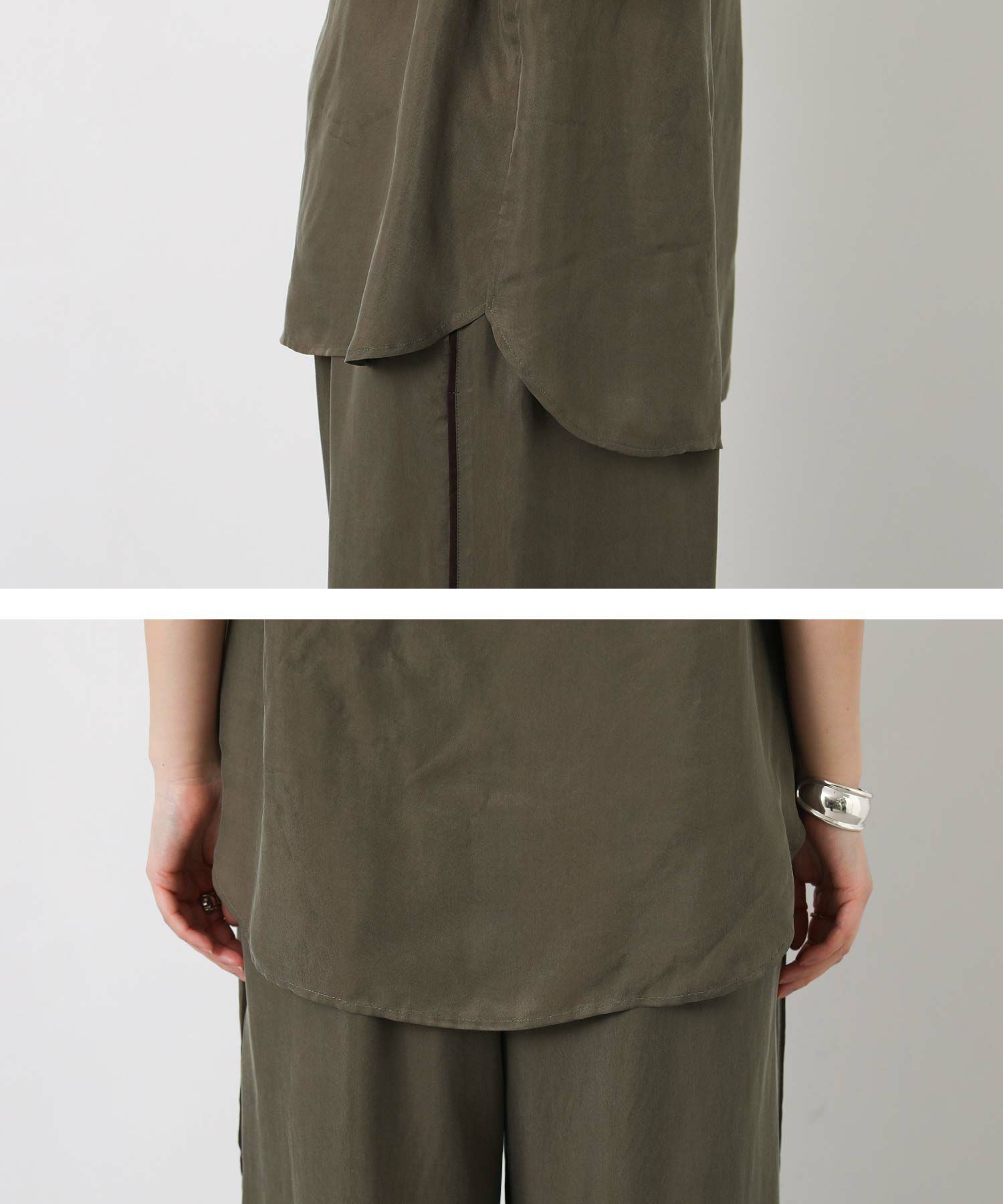 マットな光沢ととろみのある日本製のキュプラ素材を使用したブラウス。