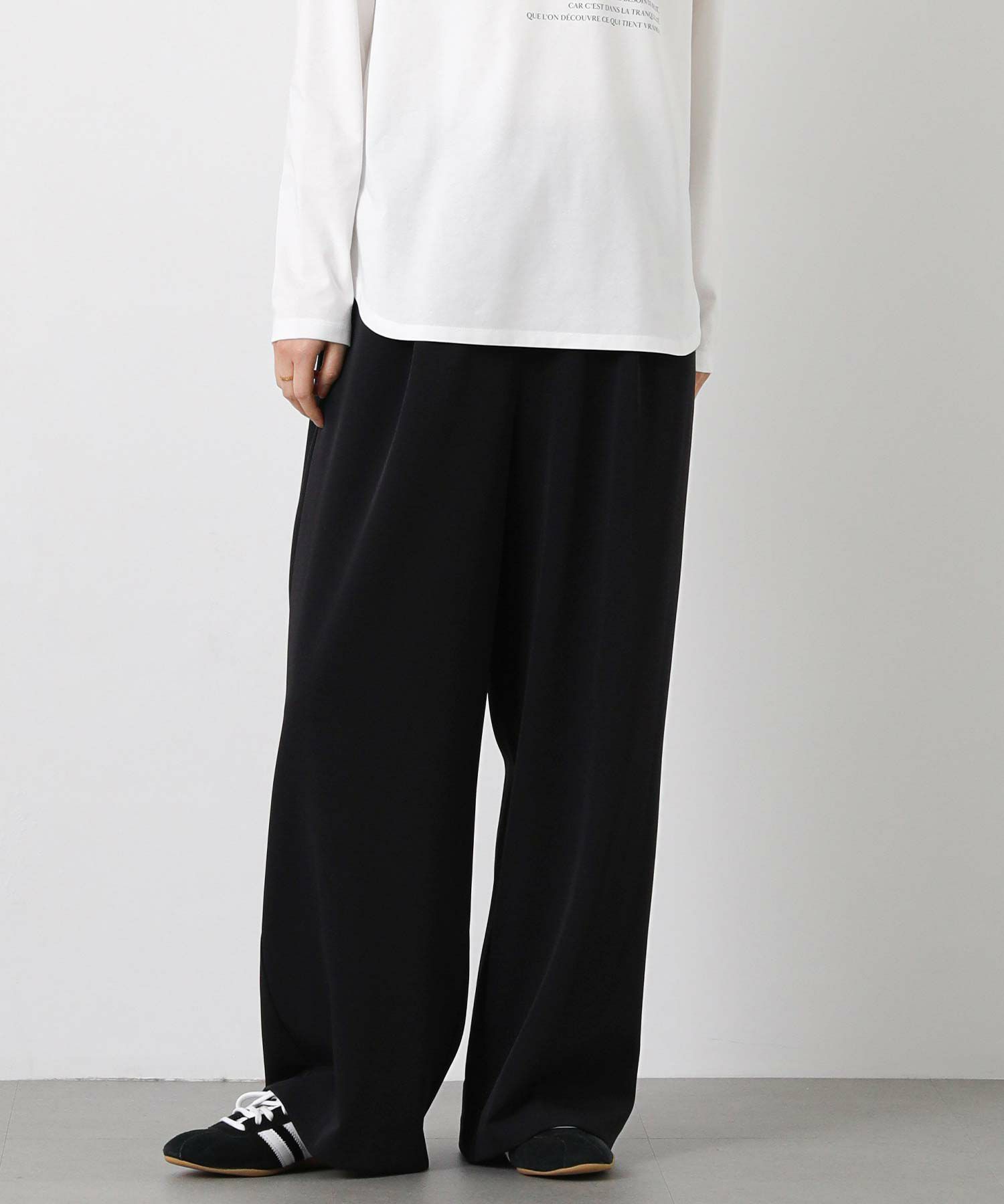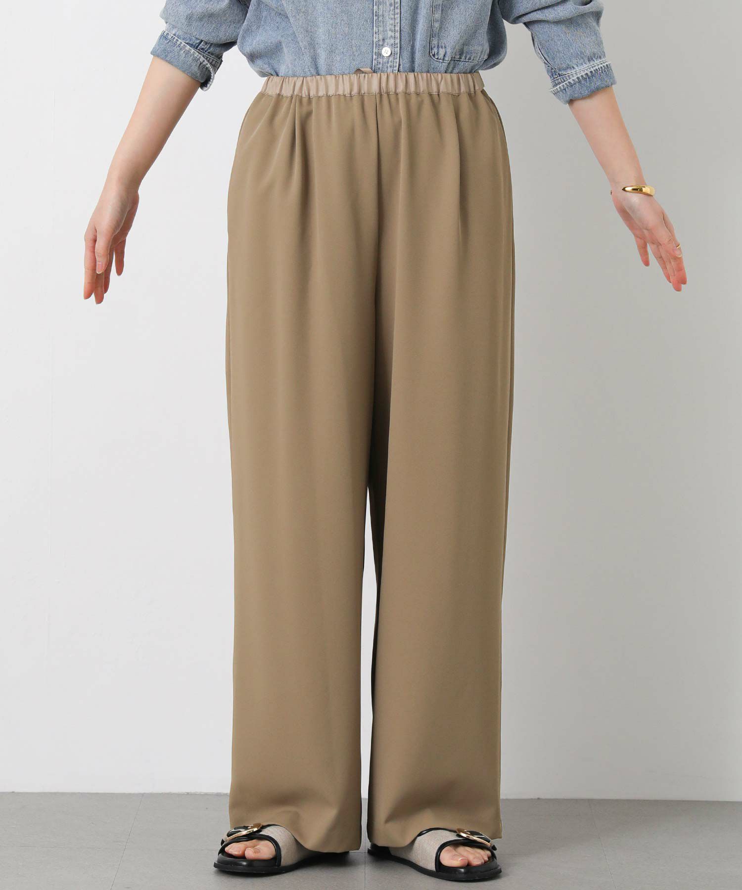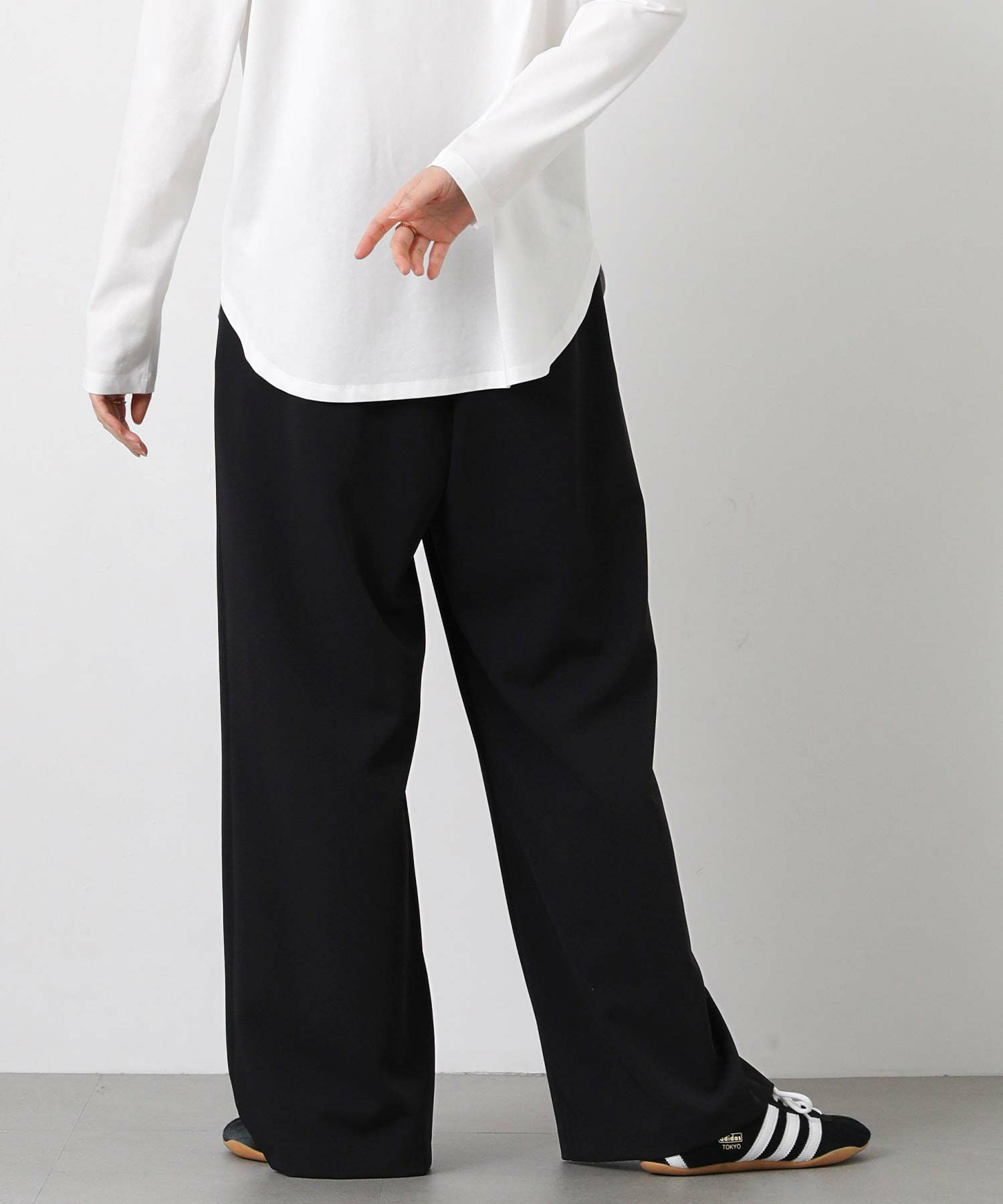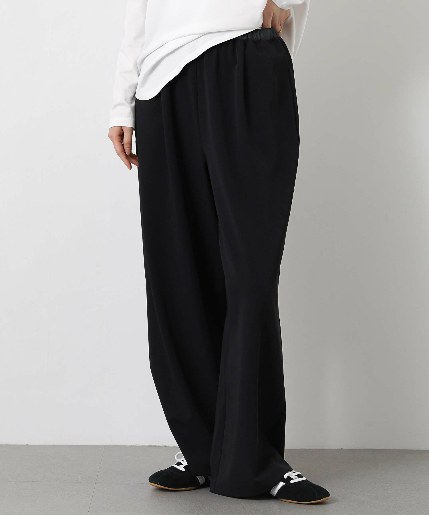 しなやかな落ち感と、上品でマットな艶感が美しいパンツ。