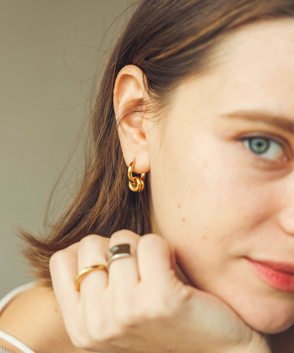 Wリングフープピアス