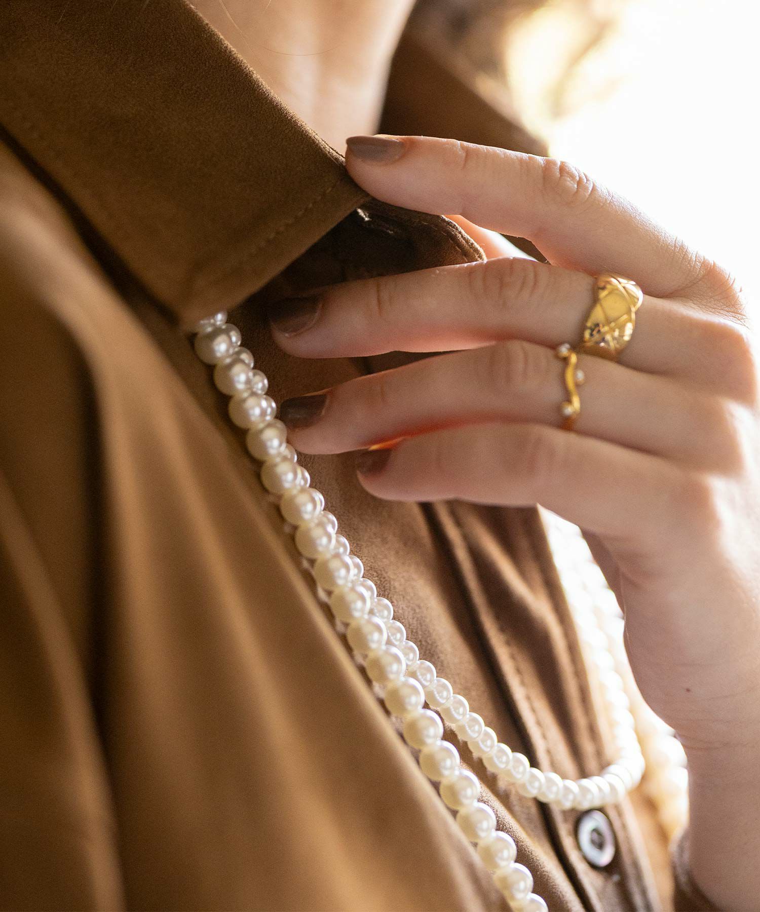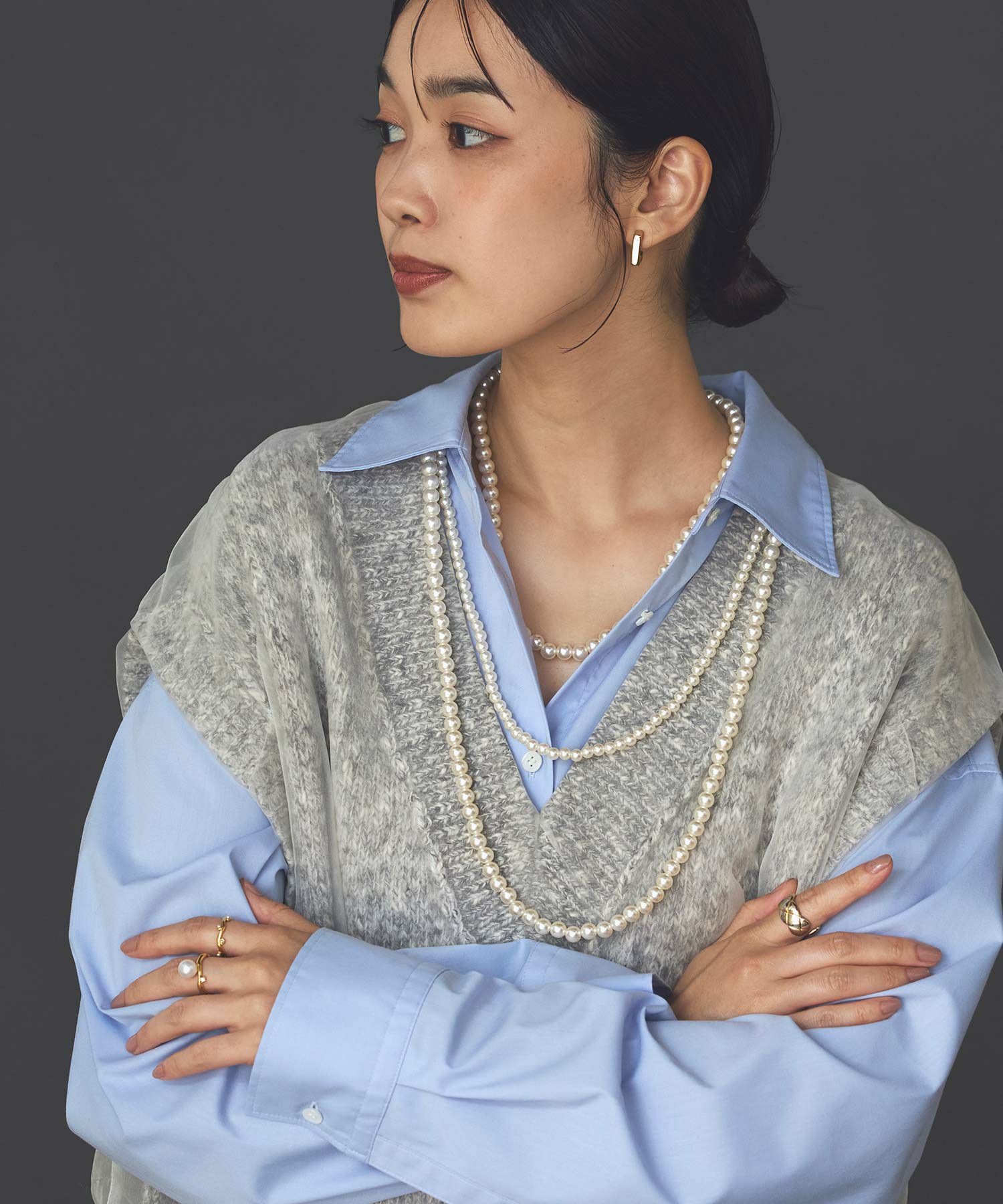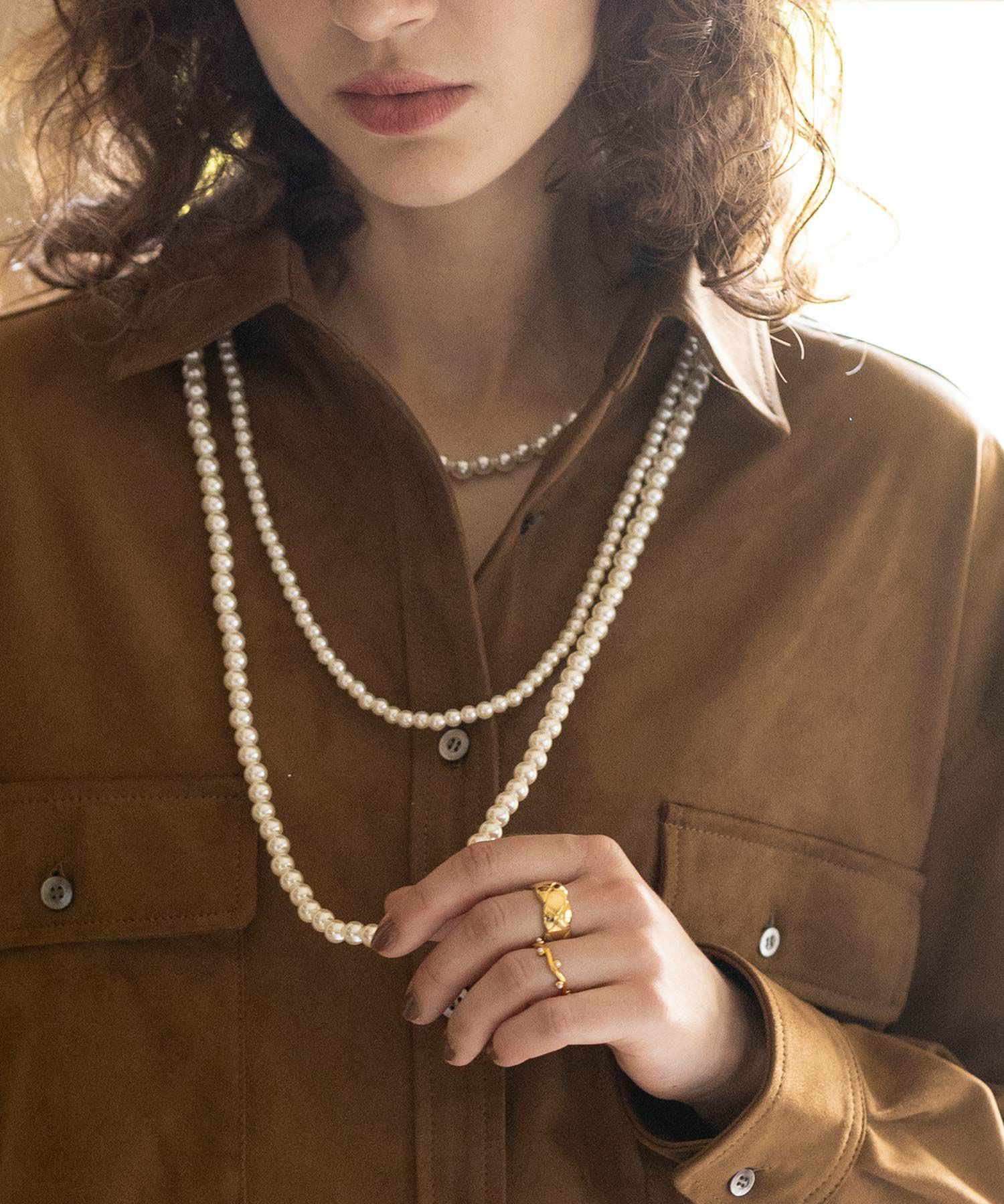 3連パールネックレス。