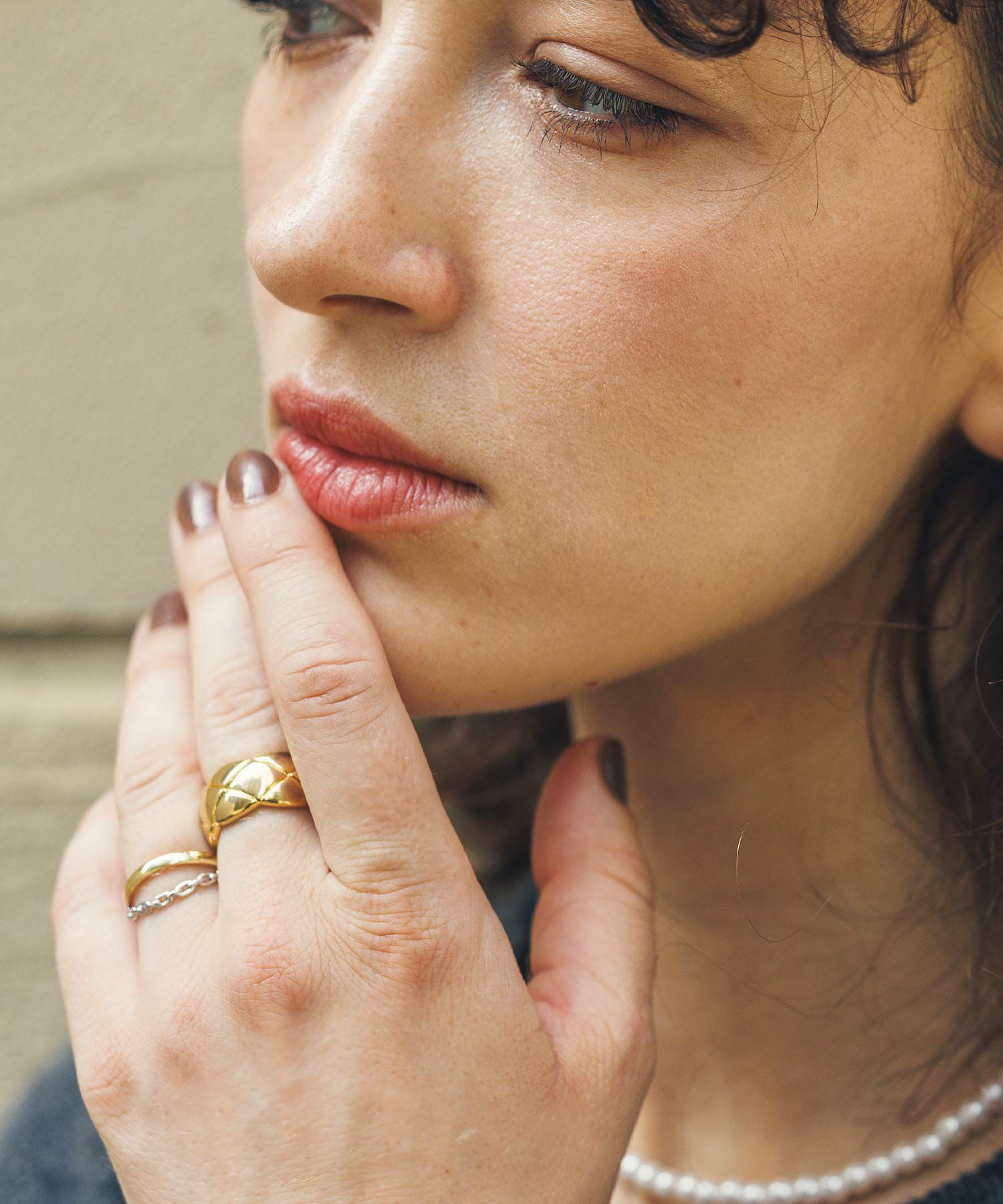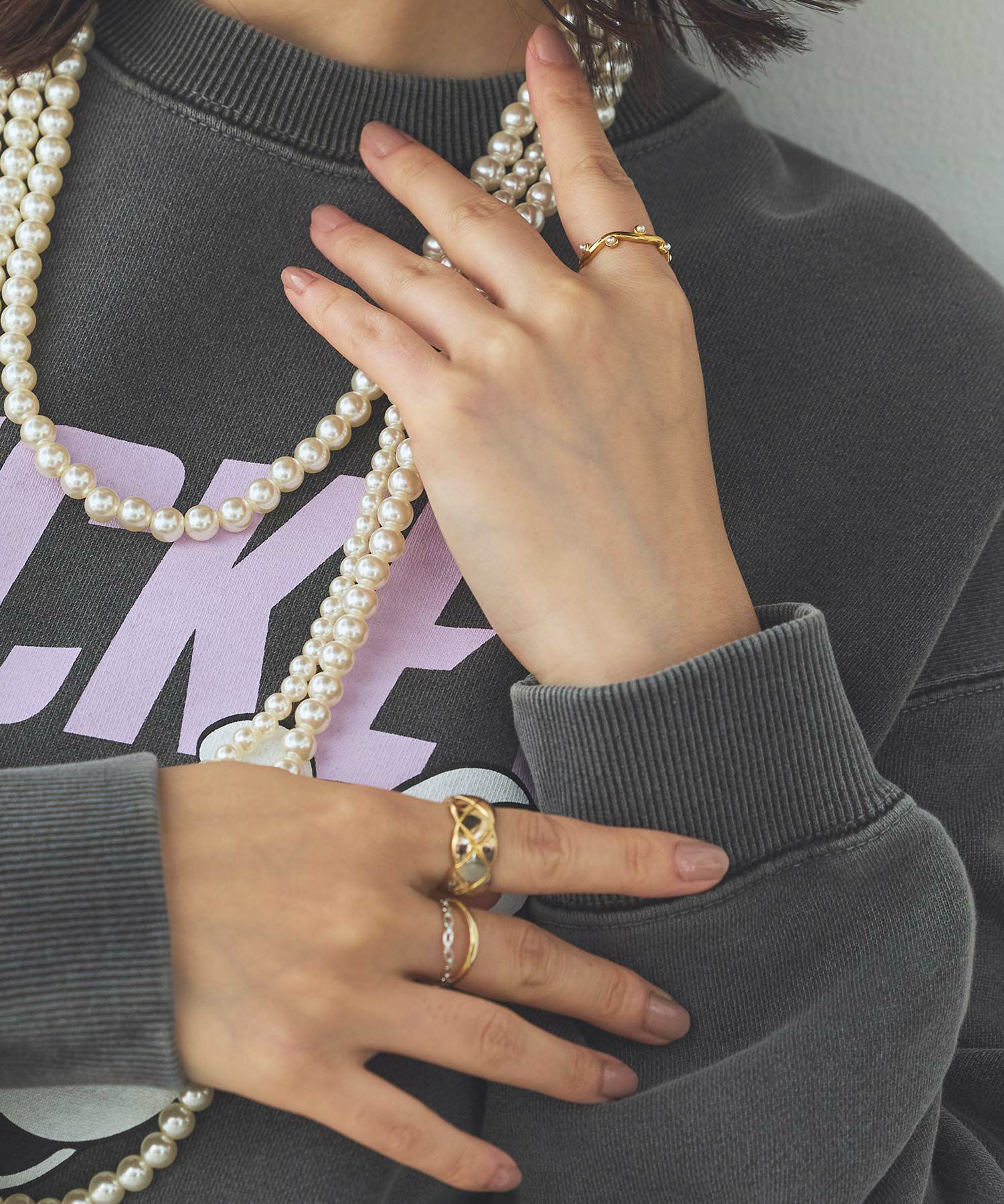 華奢なデザインで付けやすく手持ちのリングとの重ね付けしやすいのも◎