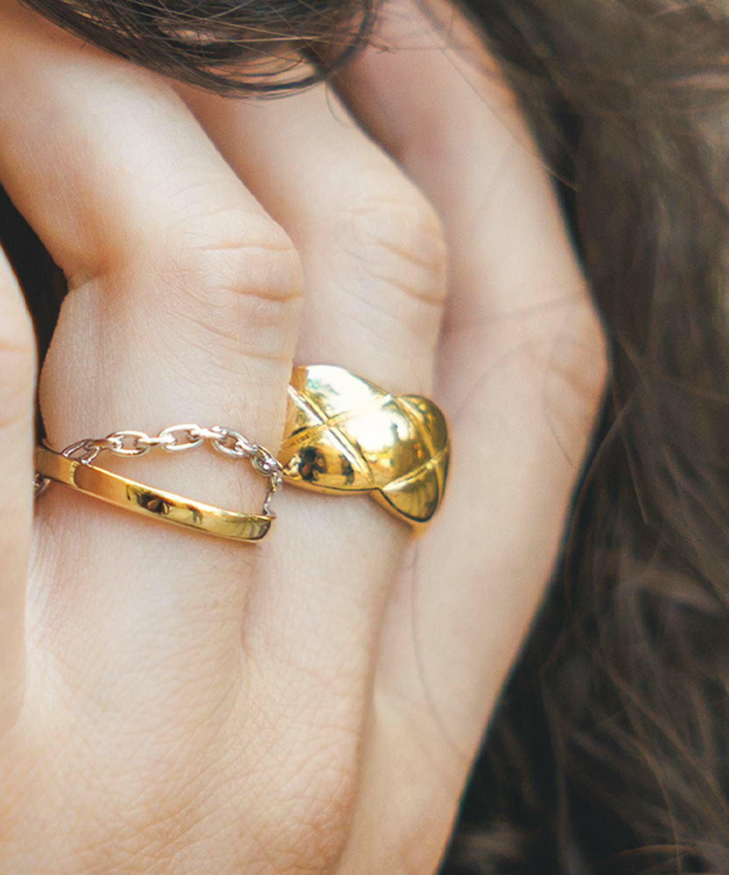 ぷっくりとしたフォルムがトレンド感のあるキルティングデザインリング。