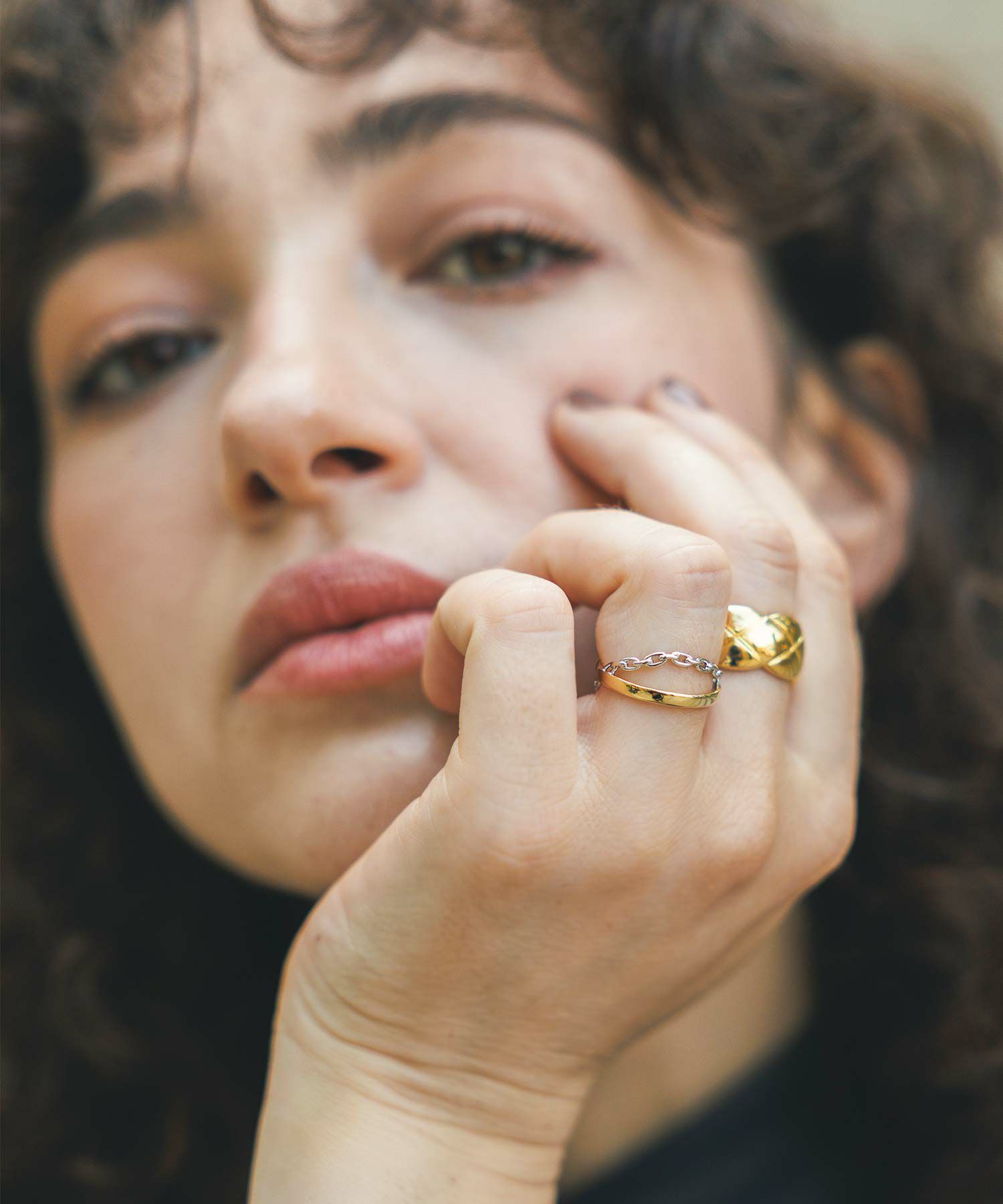 程よく厚みのあるリングは付けるだけで手元が華やぎます。